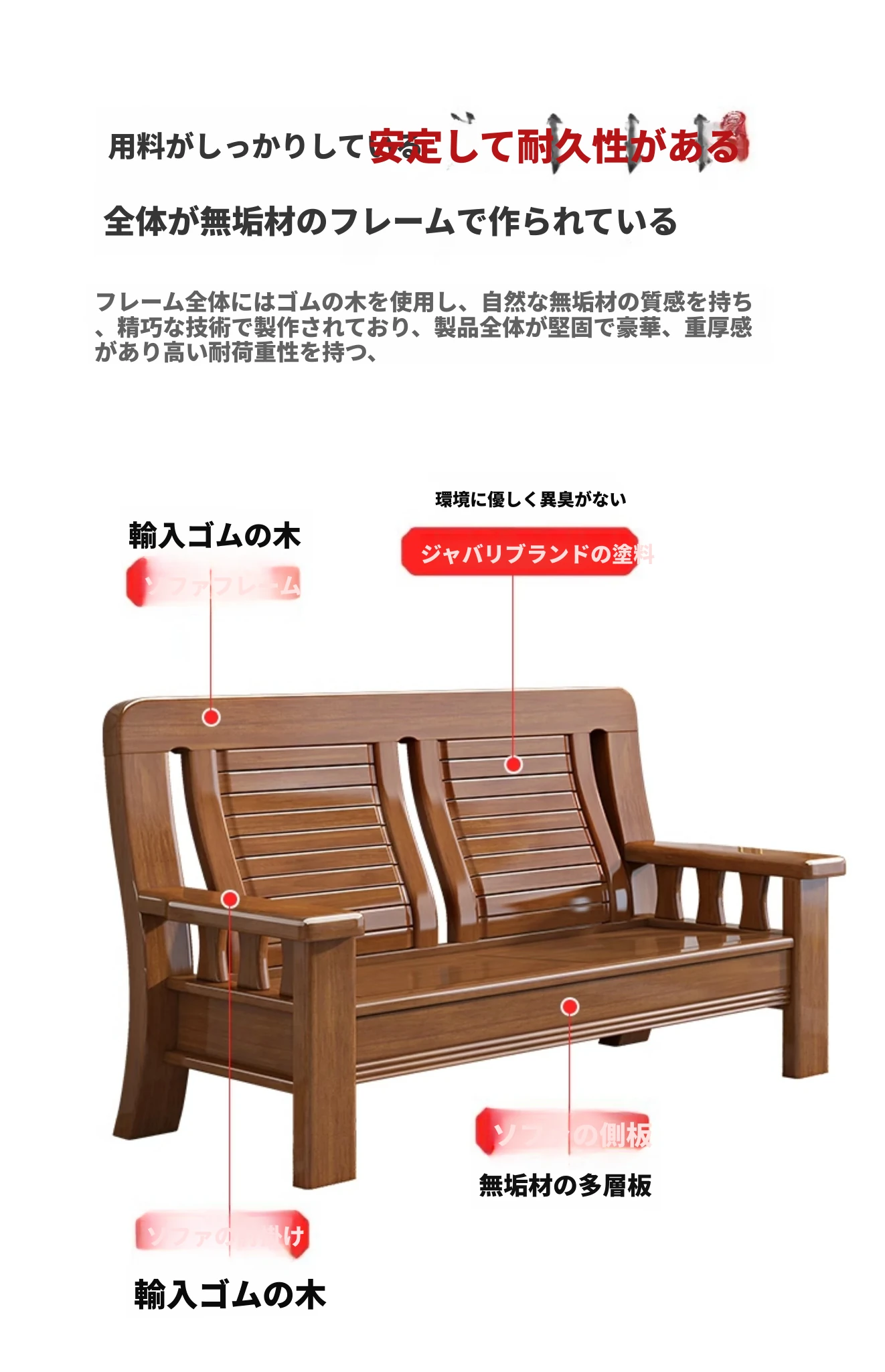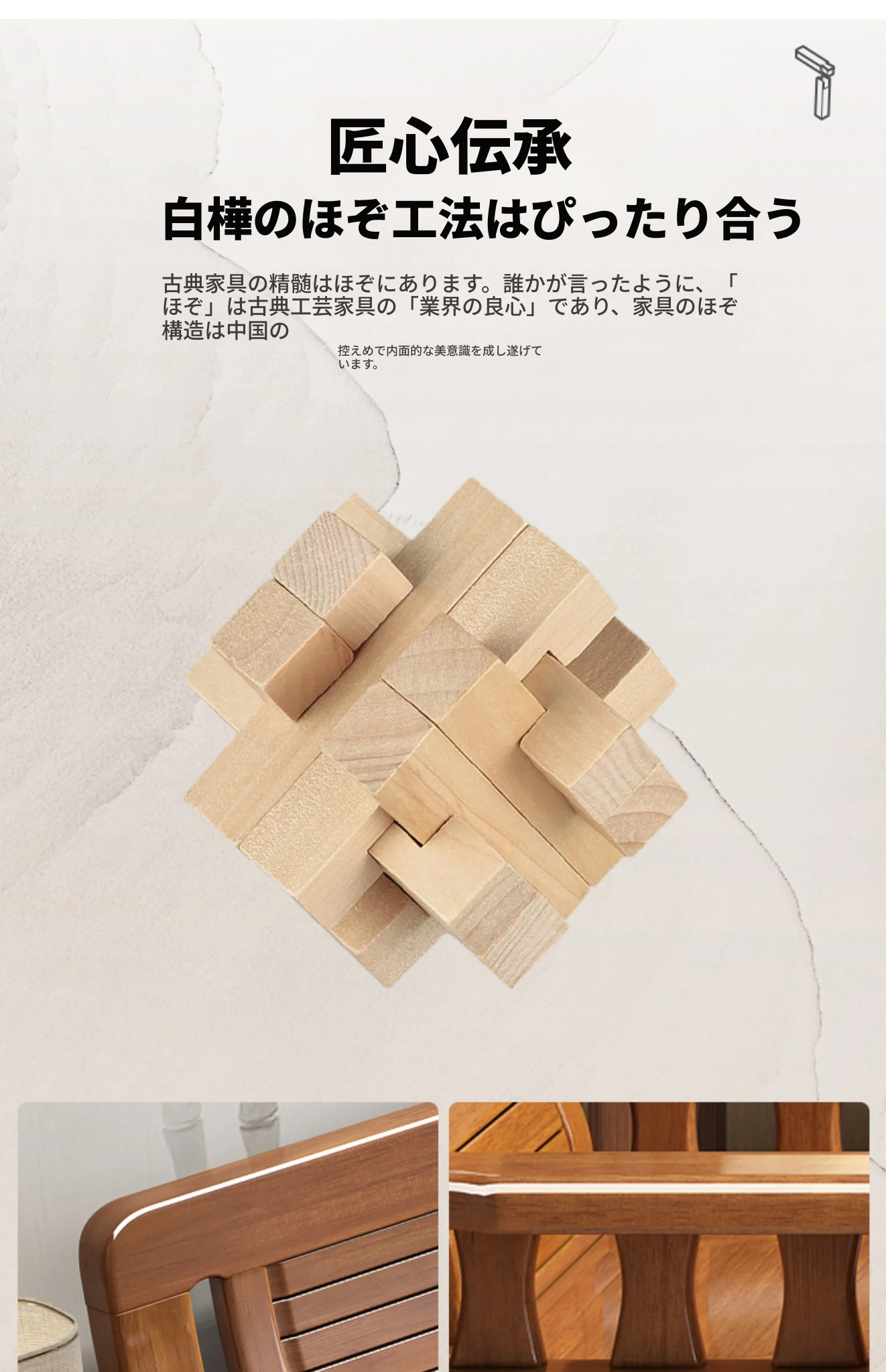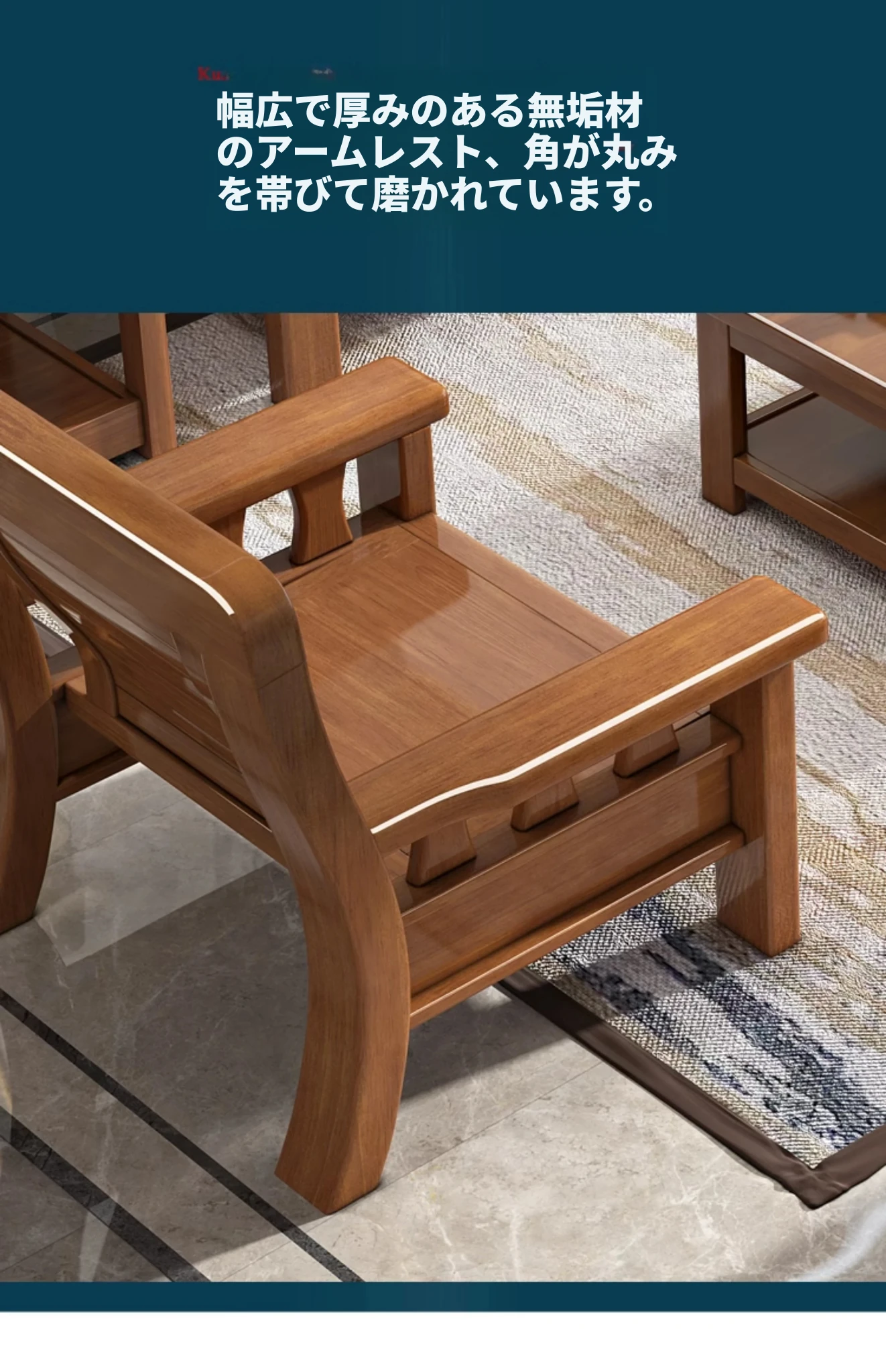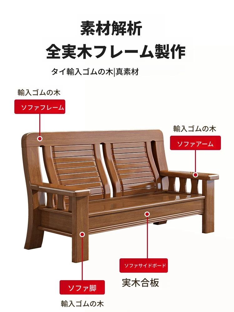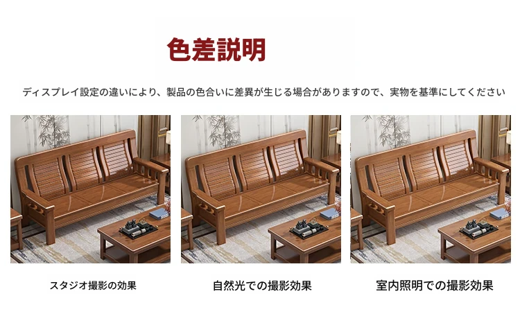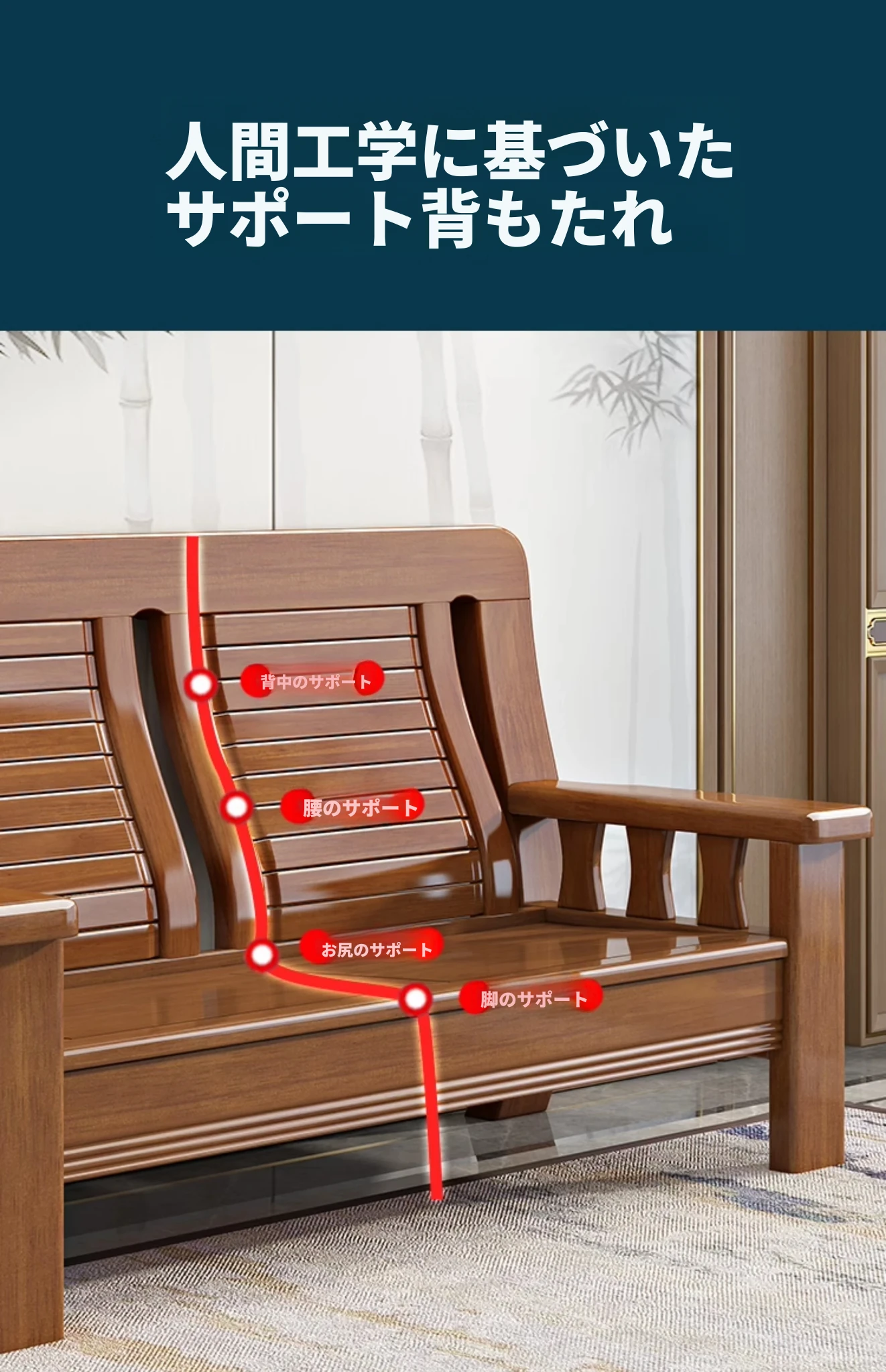 中華風の無垢材ソファ|家族でくつろげるリビング用|オールシーズン対応、春秋にも最適な原木クールチェア付きコンビネーションソファ