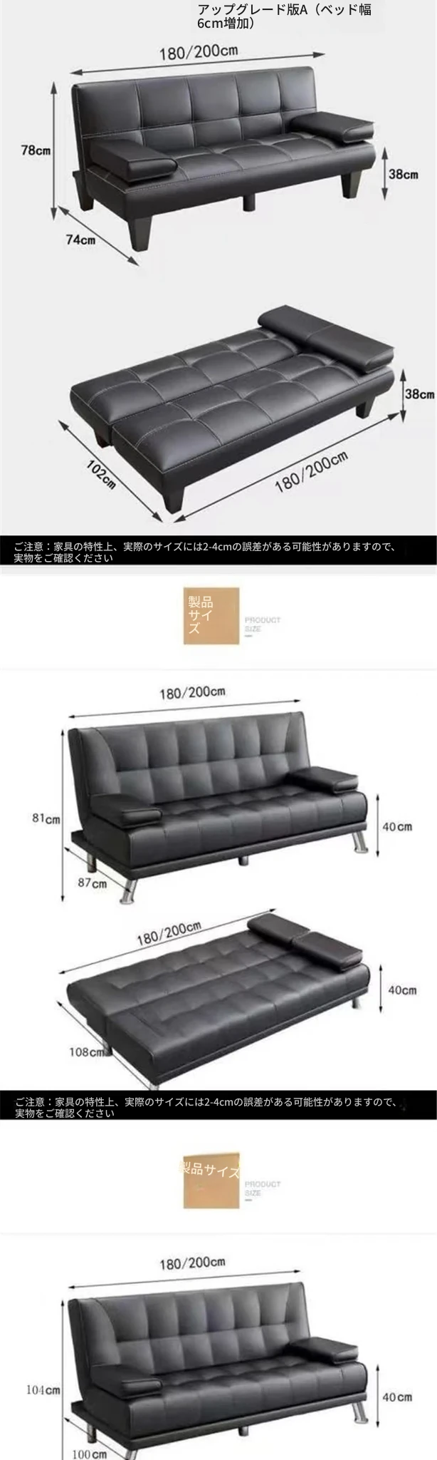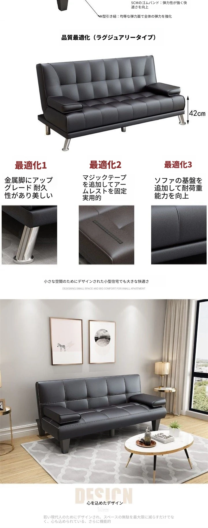 折りたたみ式ソファベッド!多機能で小型スペースにも最適な2メートルの新しい3人掛けソファ。店舗やオフィスにもぴったり!シンプルでスタイリッシュなデザインで、快適なリビング空間を演出します。