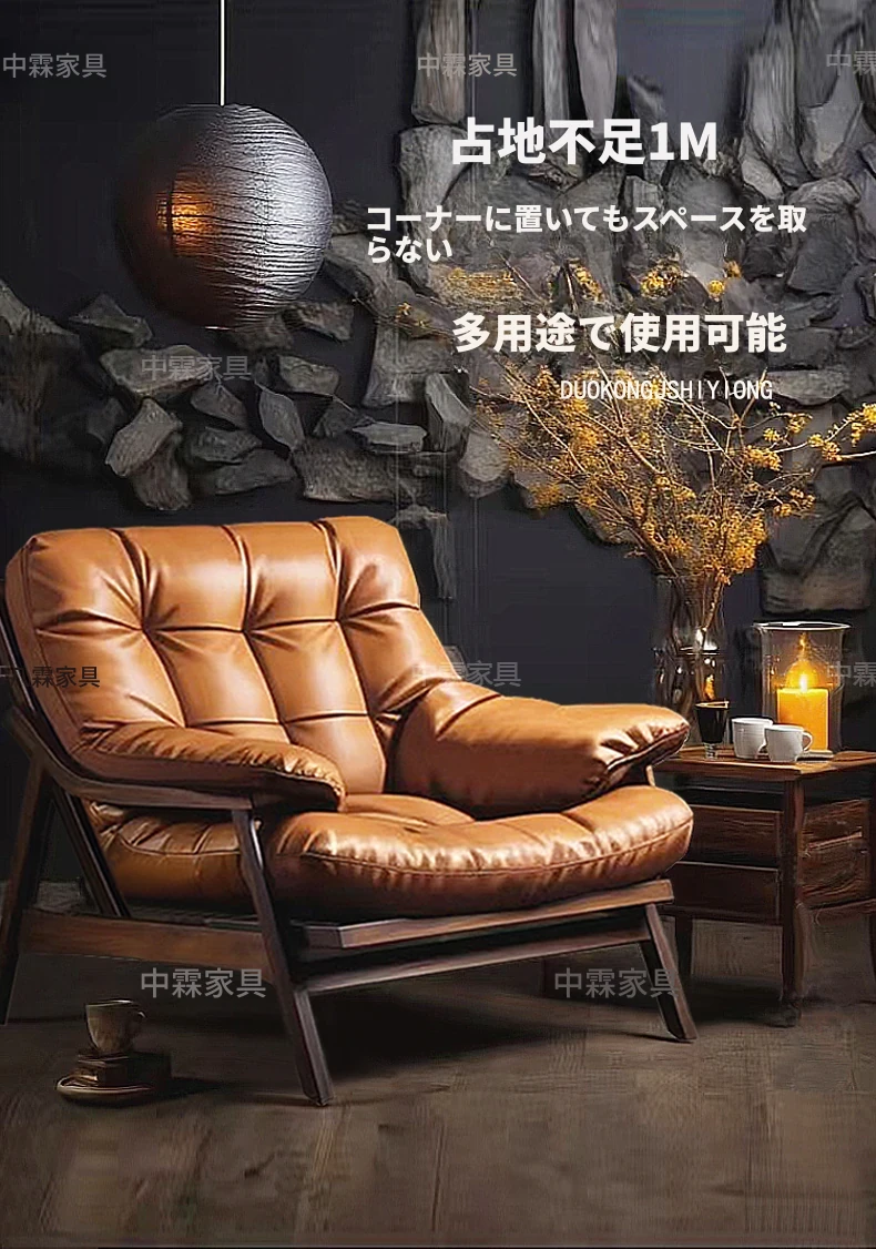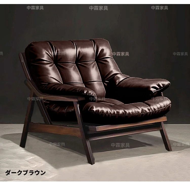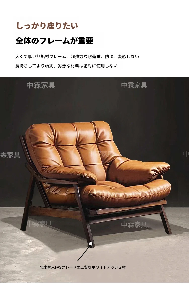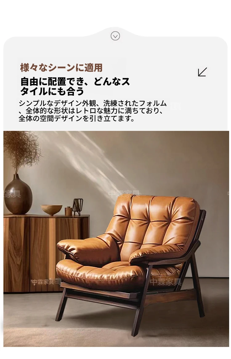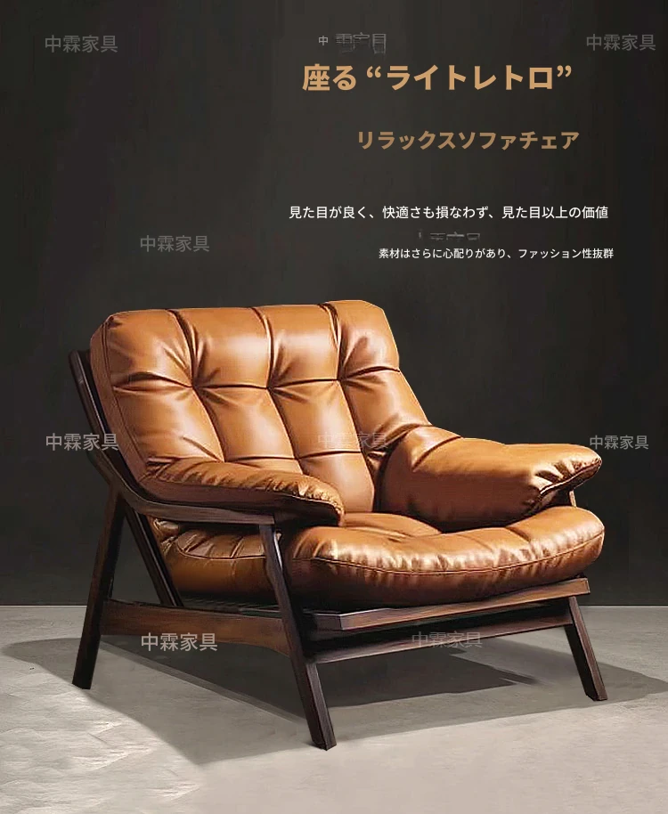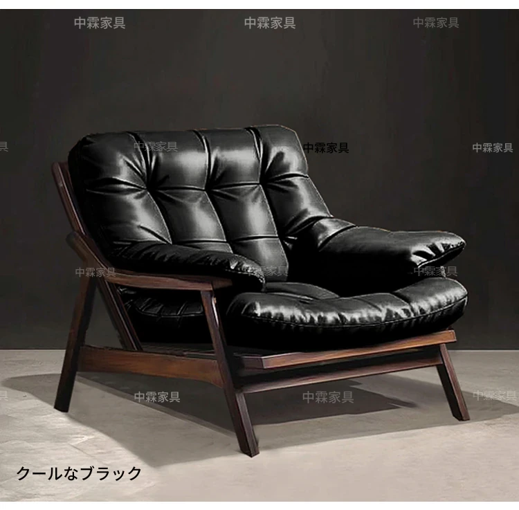 ヴィンテージ風のチェア、北米産ブラックウォールナット使用の本革ソファチェア。デザイナーによるリラックスできるラウンジチェアで、居心地の良い空間を演出します。おしゃれなインテリアにぴったり!