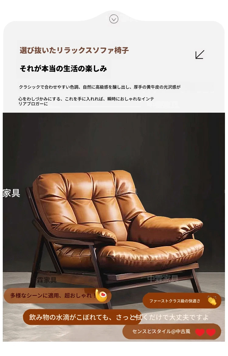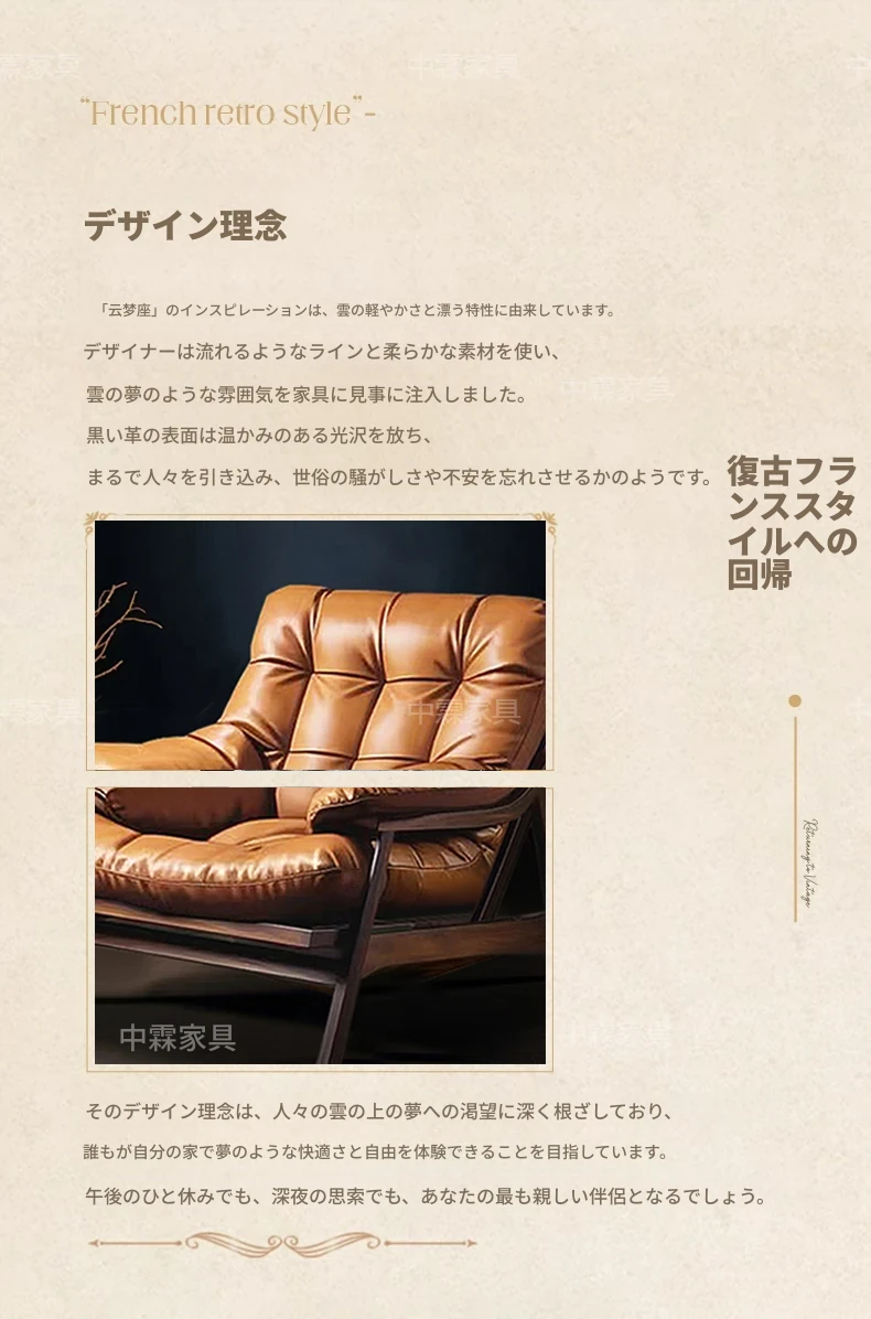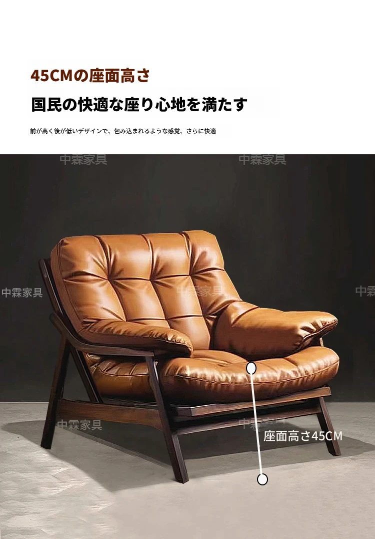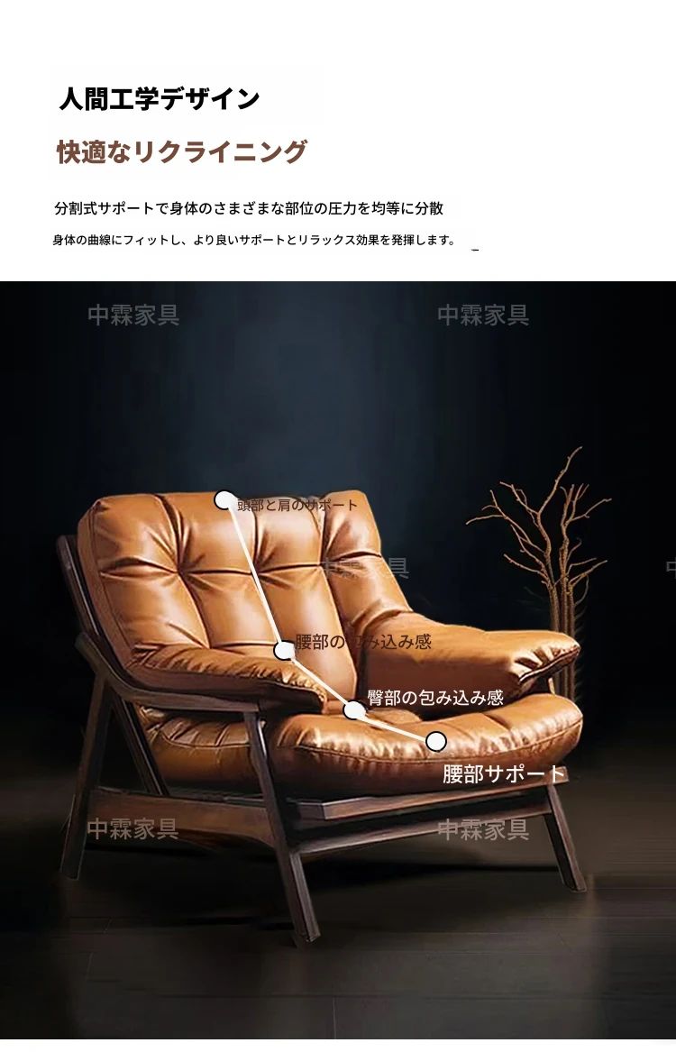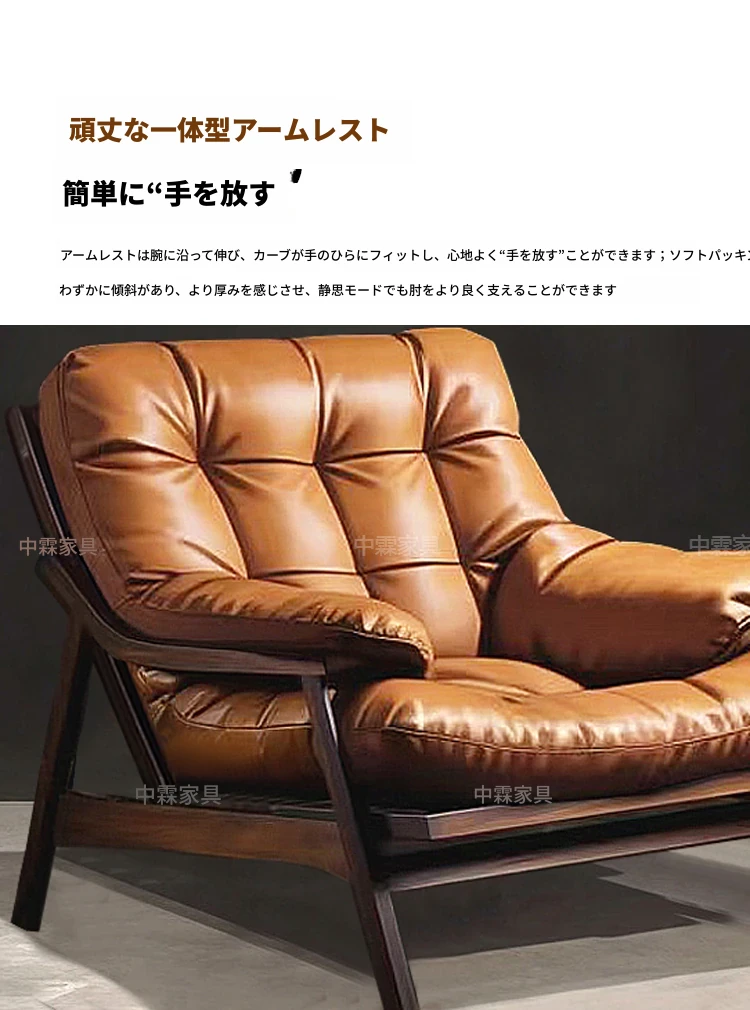 ヴィンテージ風のチェア、北米産ブラックウォールナット使用の本革ソファチェア。デザイナーによるリラックスできるラウンジチェアで、居心地の良い空間を演出します。おしゃれなインテリアにぴったり!
