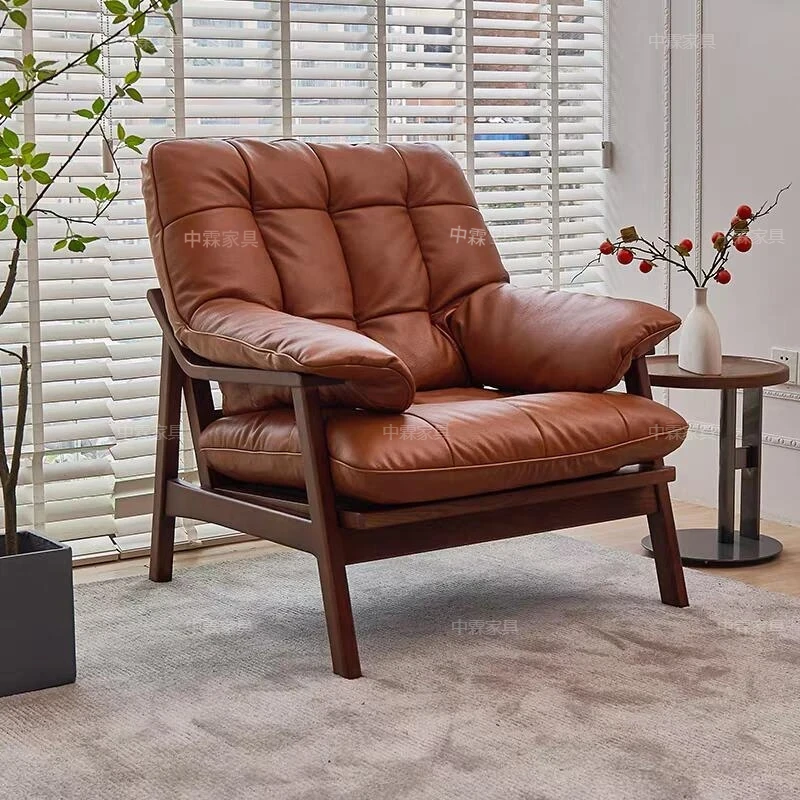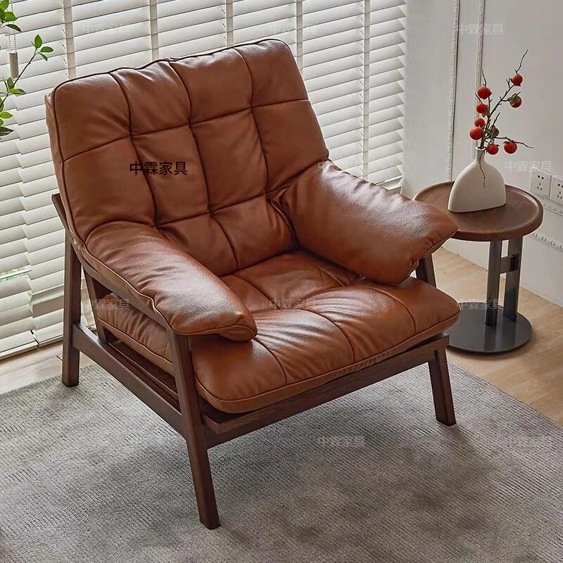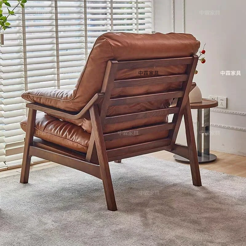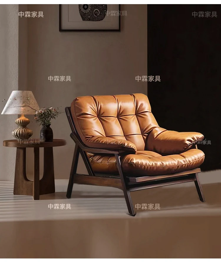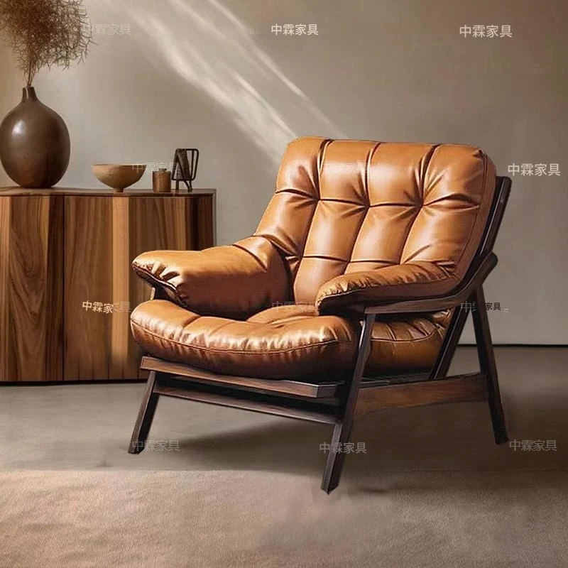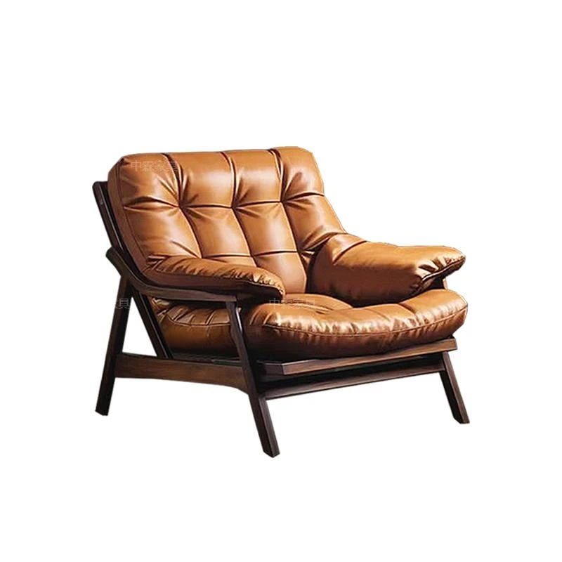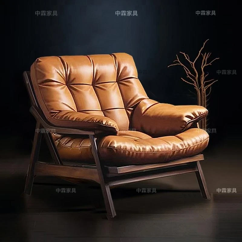 ヴィンテージ風のチェア、北米産ブラックウォールナット使用の本革ソファチェア。デザイナーによるリラックスできるラウンジチェアで、居心地の良い空間を演出します。おしゃれなインテリアにぴったり!