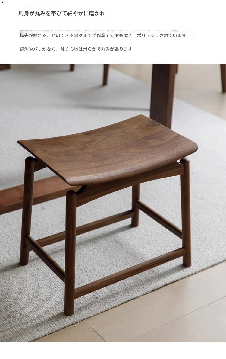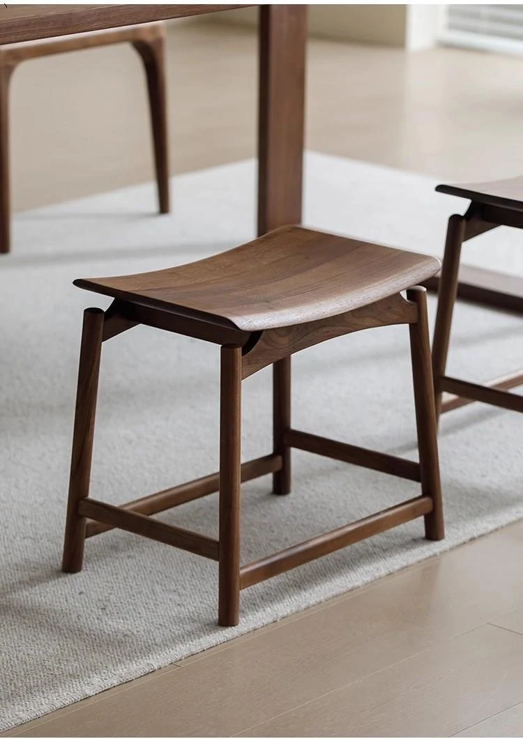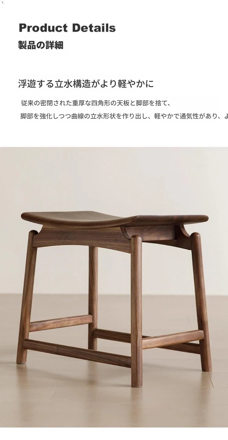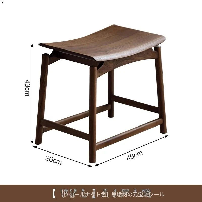 胡桃木製の元宝スツール|新中式デザイン|全て無垢材使用|シンプルでエレガント|化粧台や家庭用に最適な馬鞍型スツール|おしゃれなインテリアにぴったり!