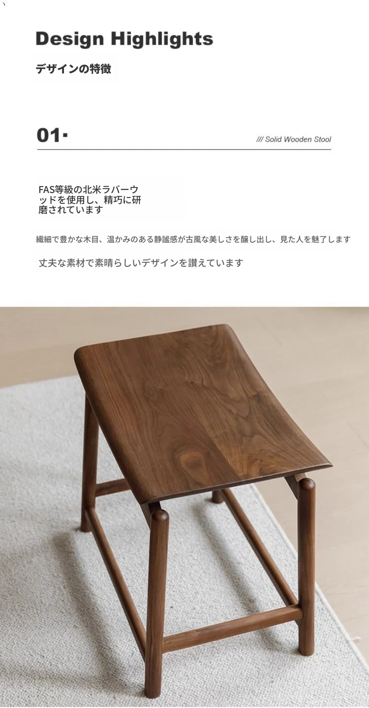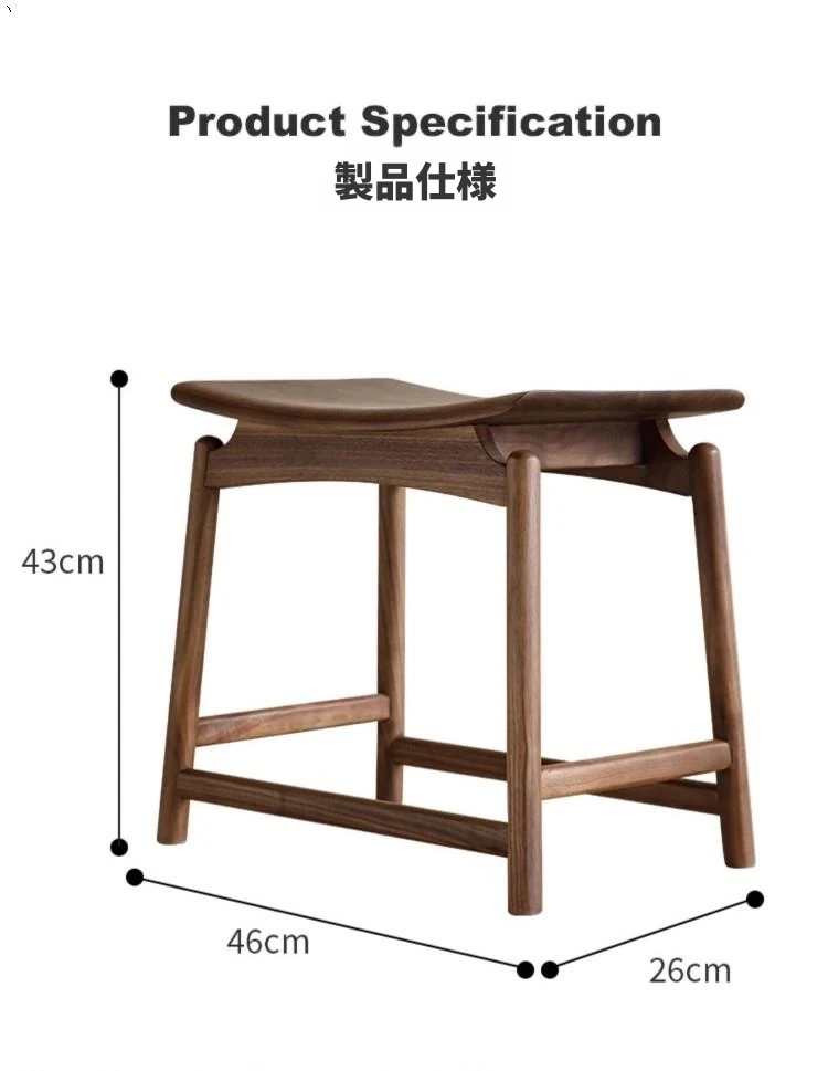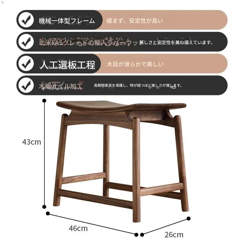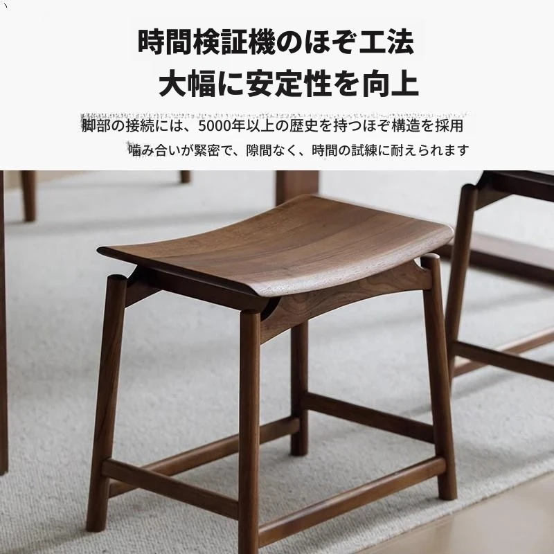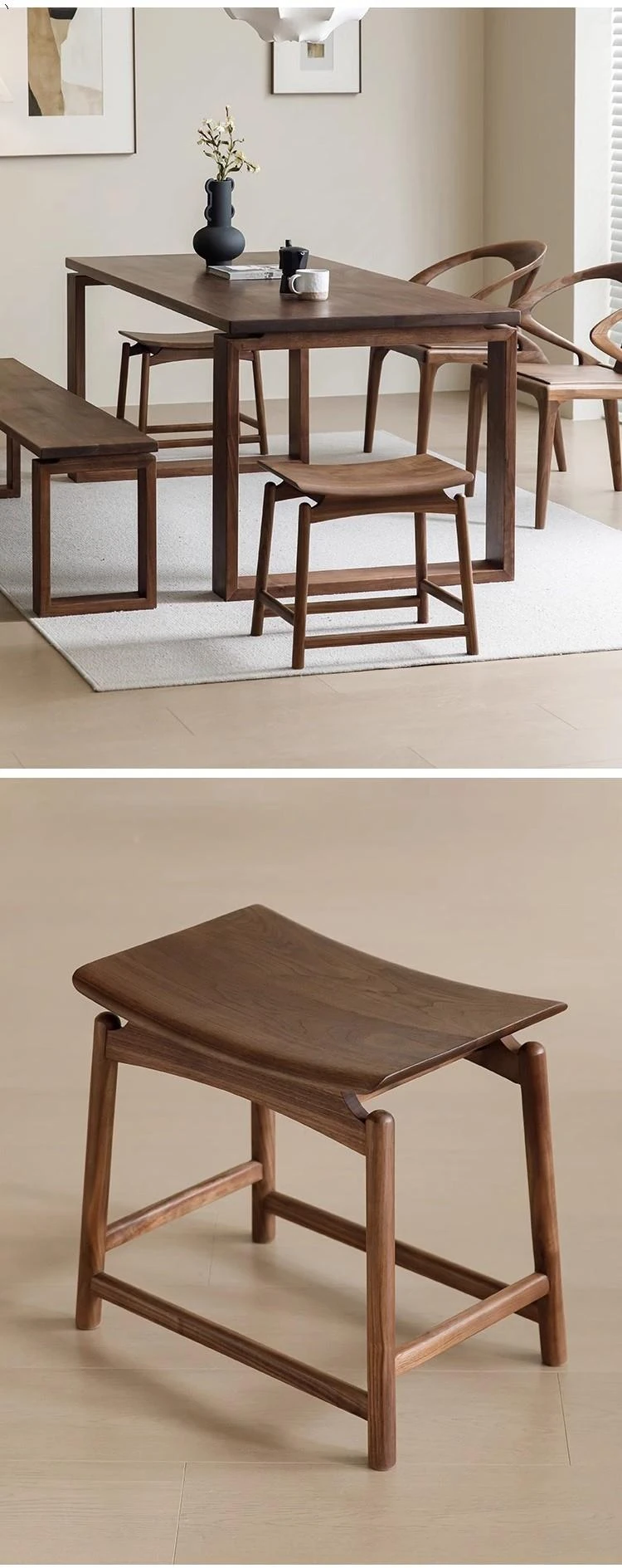 胡桃木製の元宝スツール|新中式デザイン|全て無垢材使用|シンプルでエレガント|化粧台や家庭用に最適な馬鞍型スツール|おしゃれなインテリアにぴったり!