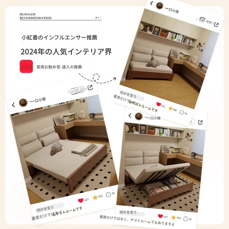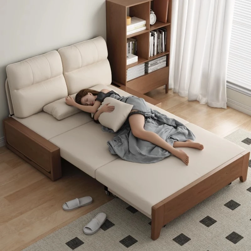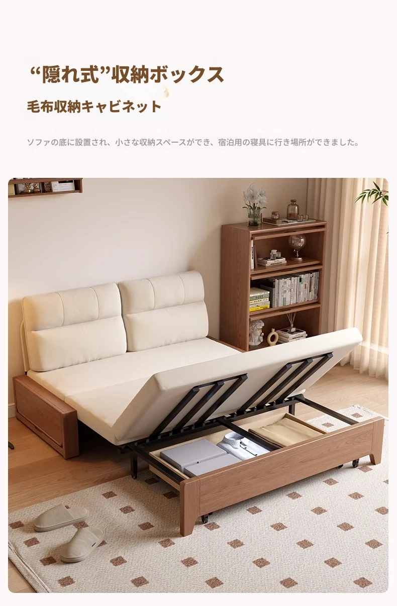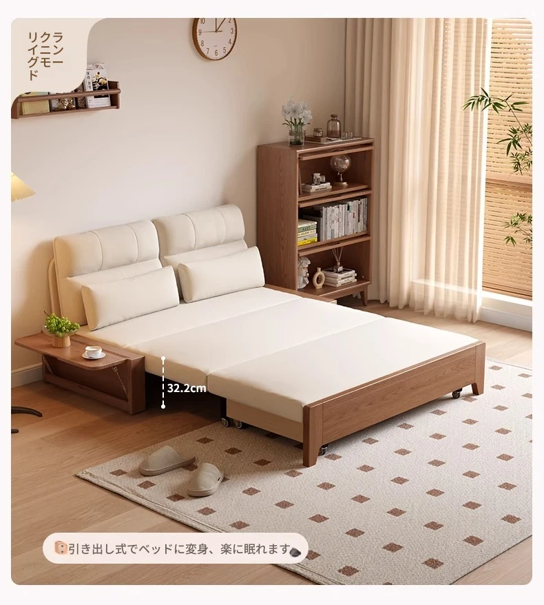 万羽折りたたみソファベッド - 小型住宅に最適!1.5mのダブルサイズ、実木製ソファが簡単にベッドに変身!省スペースで快適なリビングを実現します。