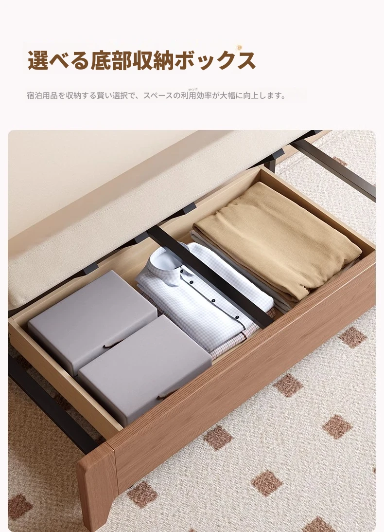 【収納ボックス付き】1.5M (ココナッツブラウンタイプ/アイボリー)ナチュラル色