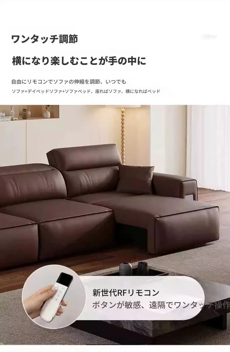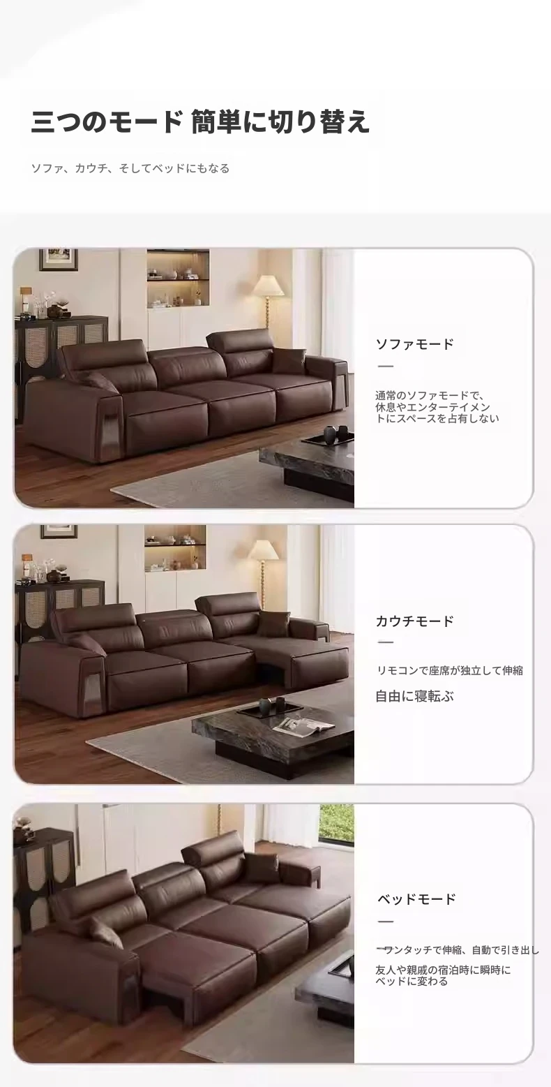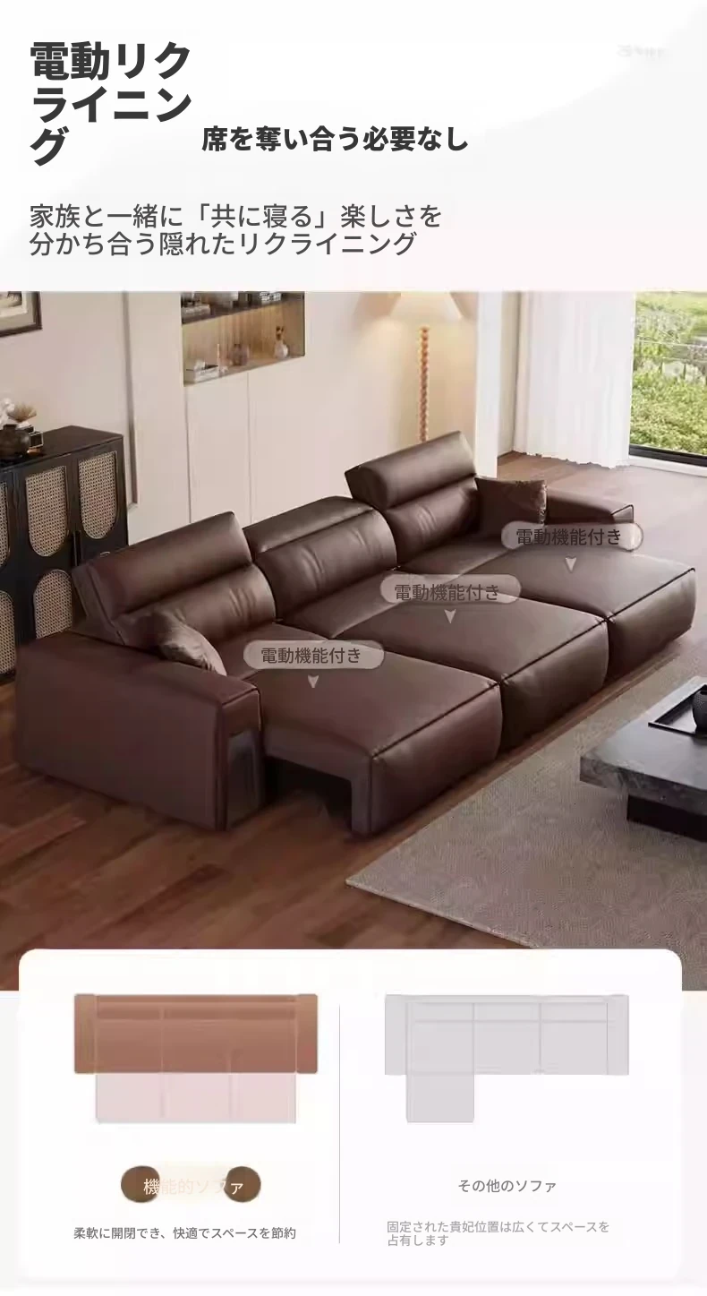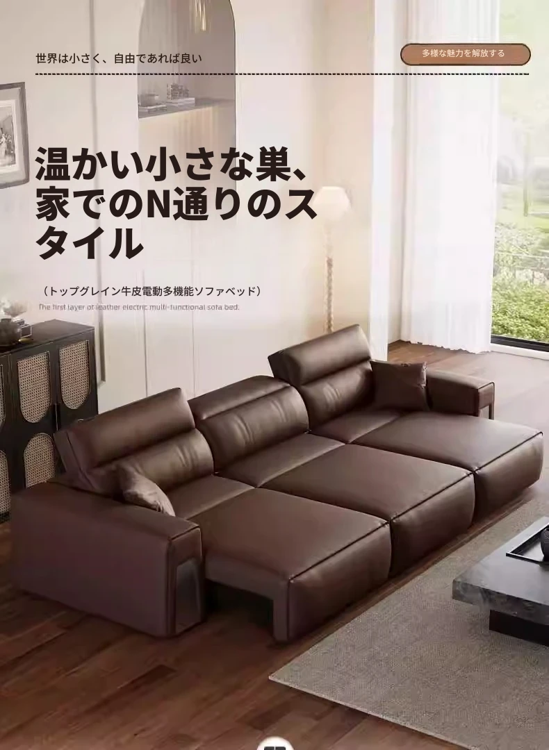 ウィンノ・イタリアン本革マルチファンクション電動ソファベッド - スリムな伸縮機能と調節可能なヘッドレストで、リビングルームに最適なスタイリッシュな選択肢!快適さと機能性を兼ね備えた一品。