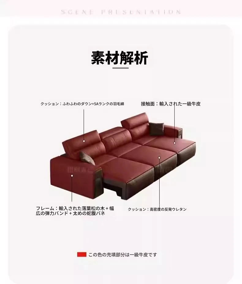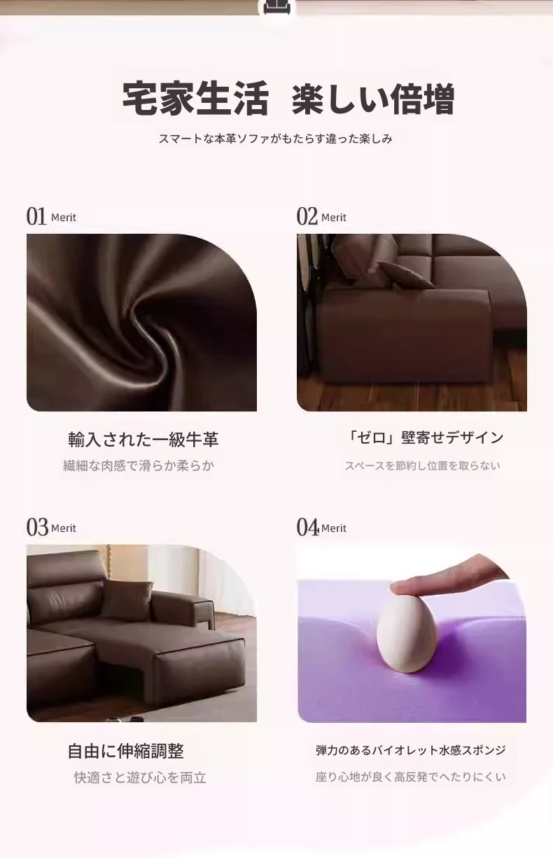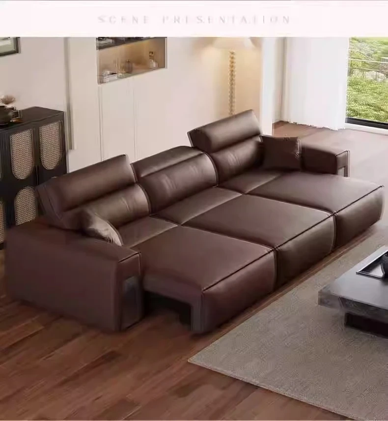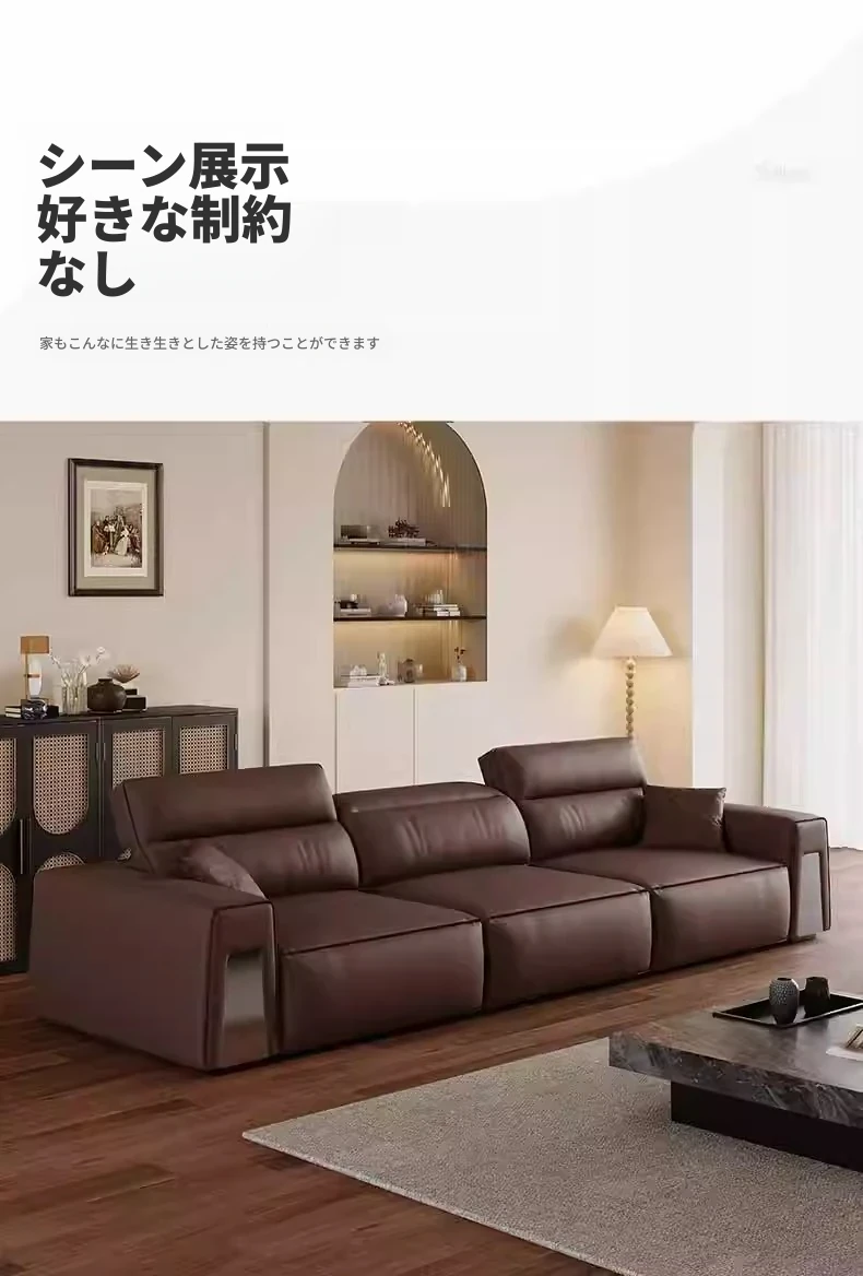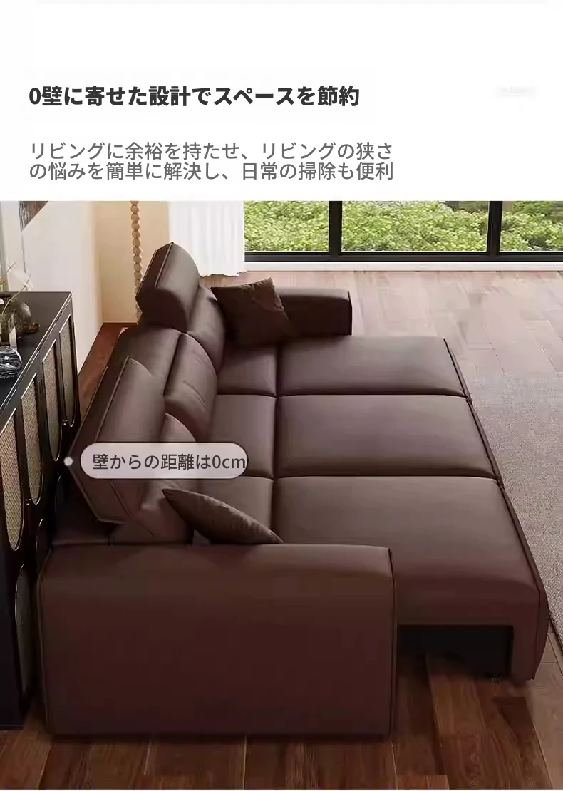 ウィンノ・イタリアン本革マルチファンクション電動ソファベッド - スリムな伸縮機能と調節可能なヘッドレストで、リビングルームに最適なスタイリッシュな選択肢!快適さと機能性を兼ね備えた一品。