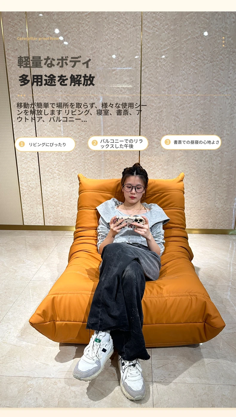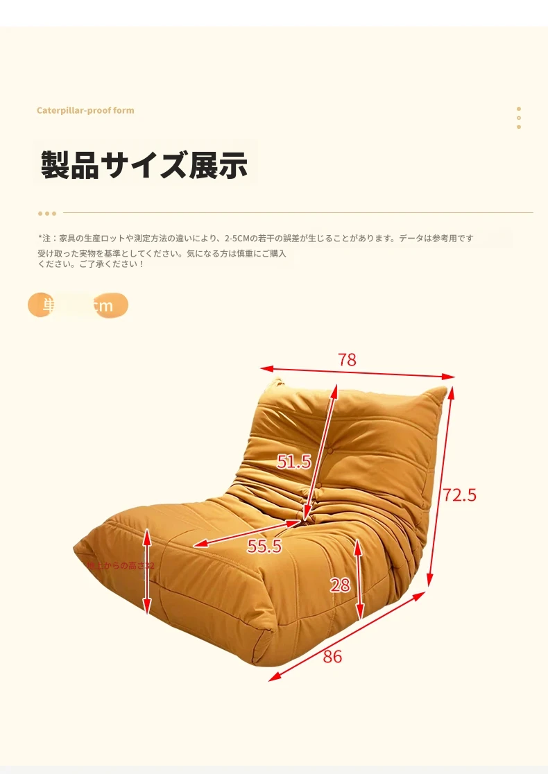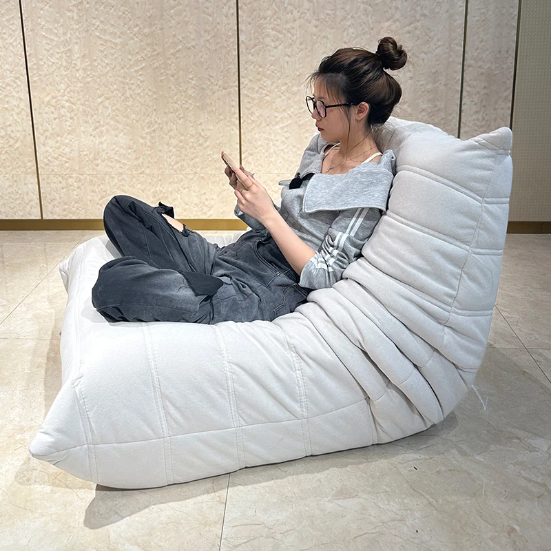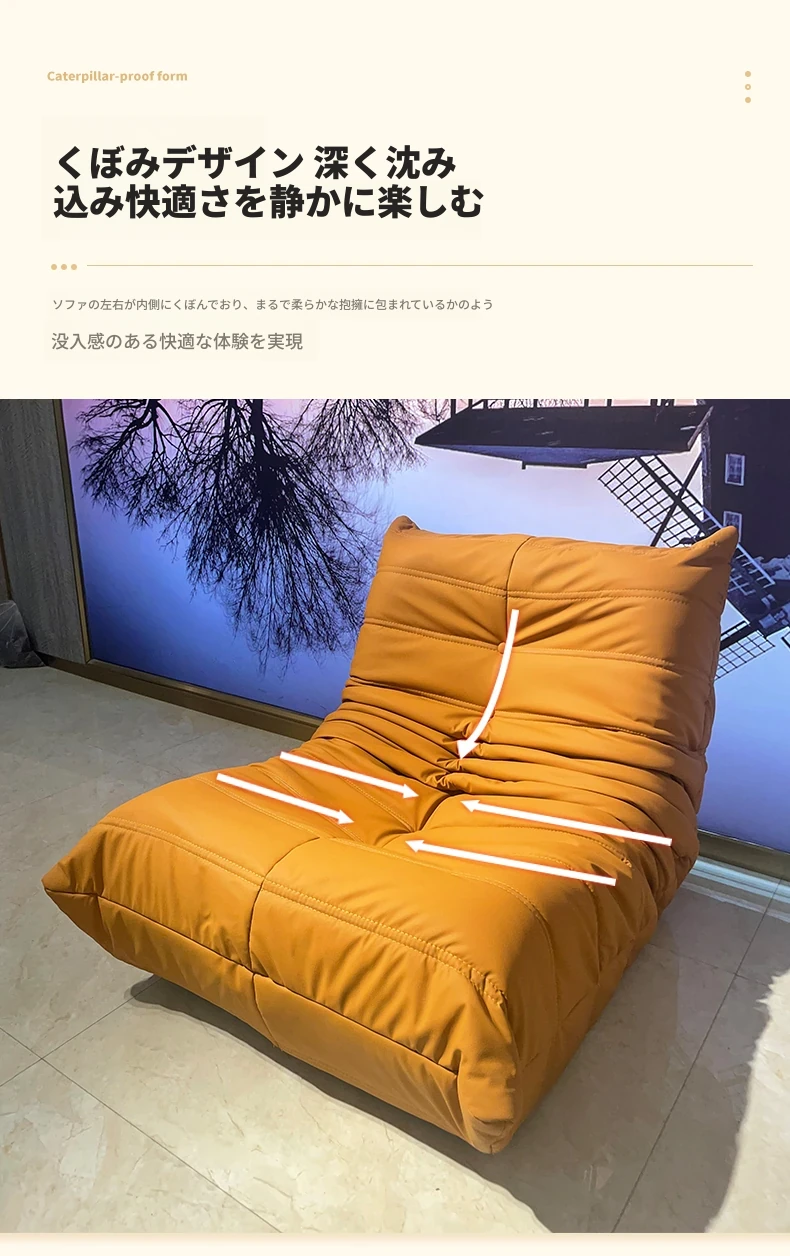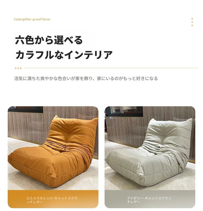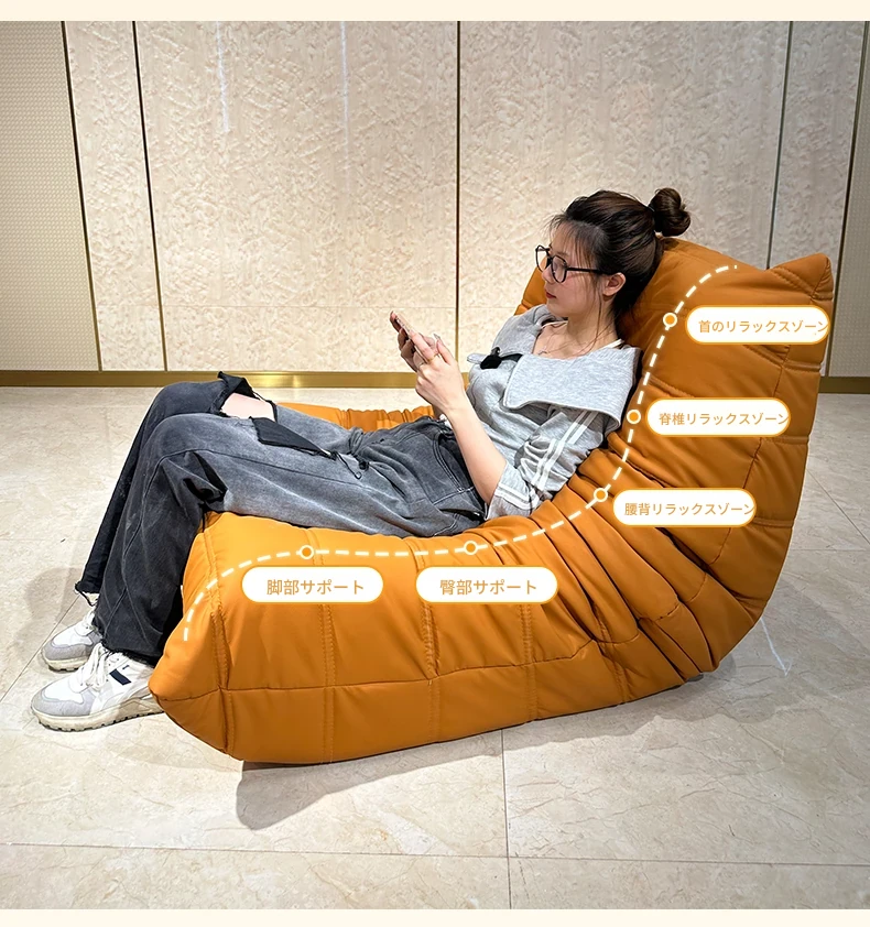 ヤマイカのもふもふカタツムリソファ - 寝転んでもくつろげる、クリーミーなデザインの一人用リラックスソファ!寝室やリビング、バルコニーにぴったりの贅沢なひとときを提供します。