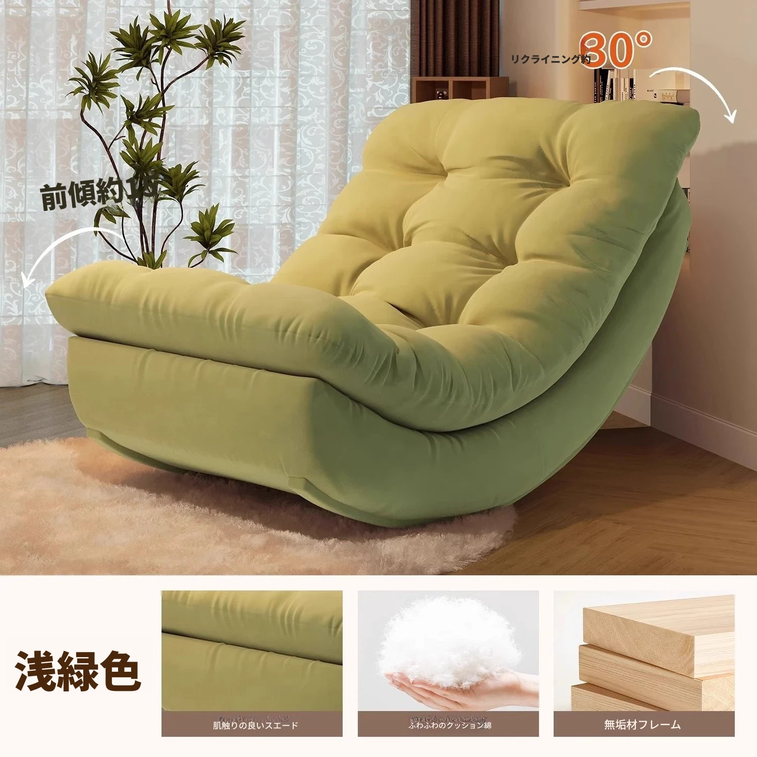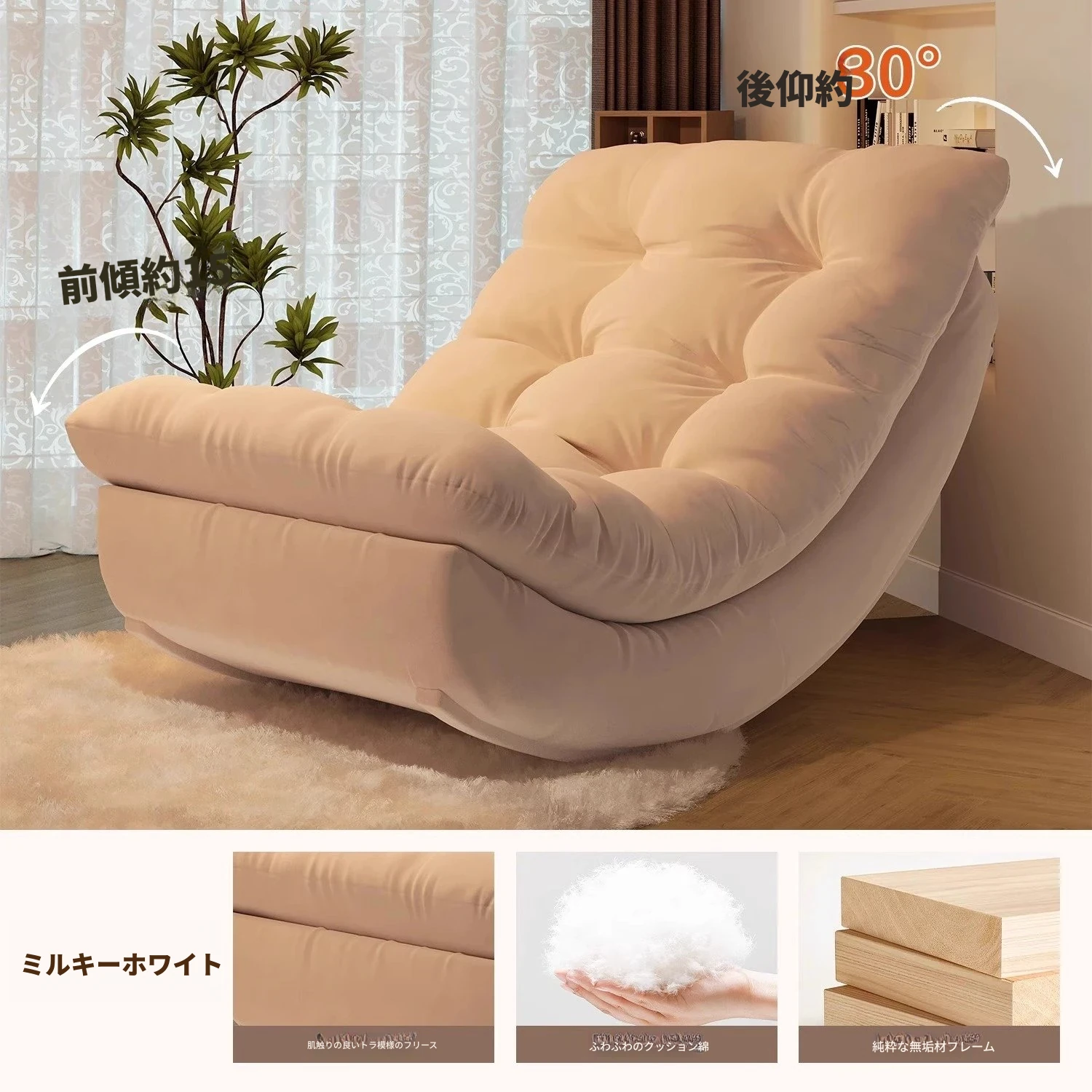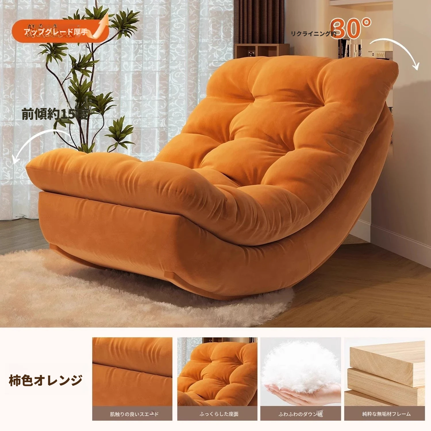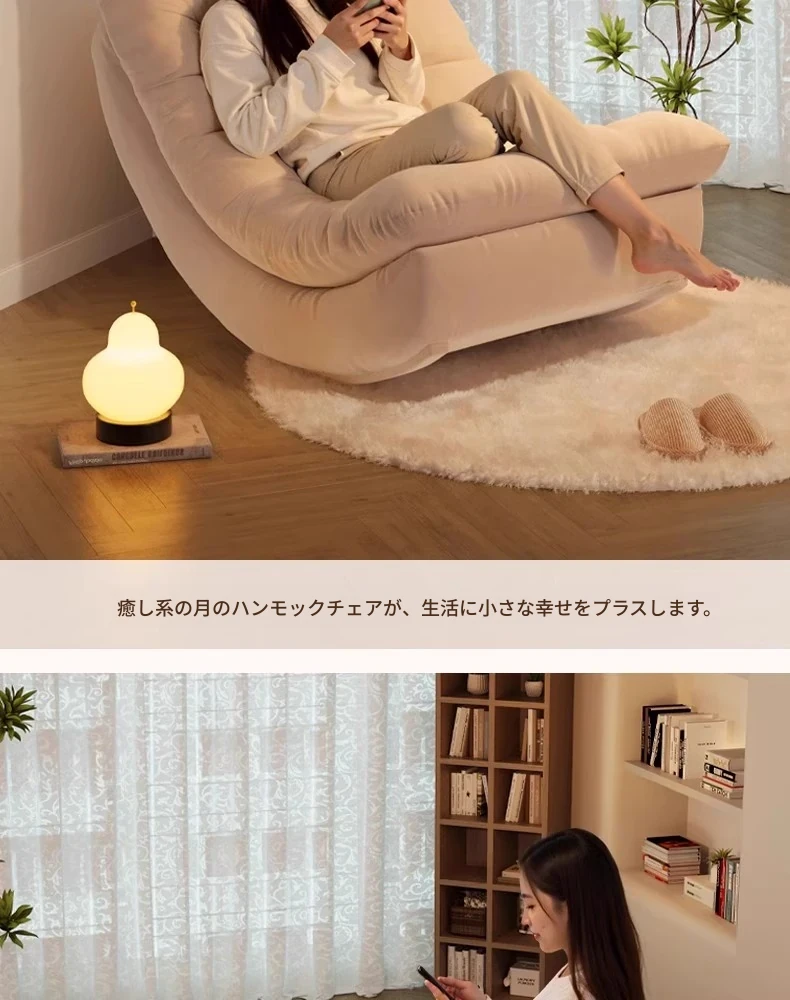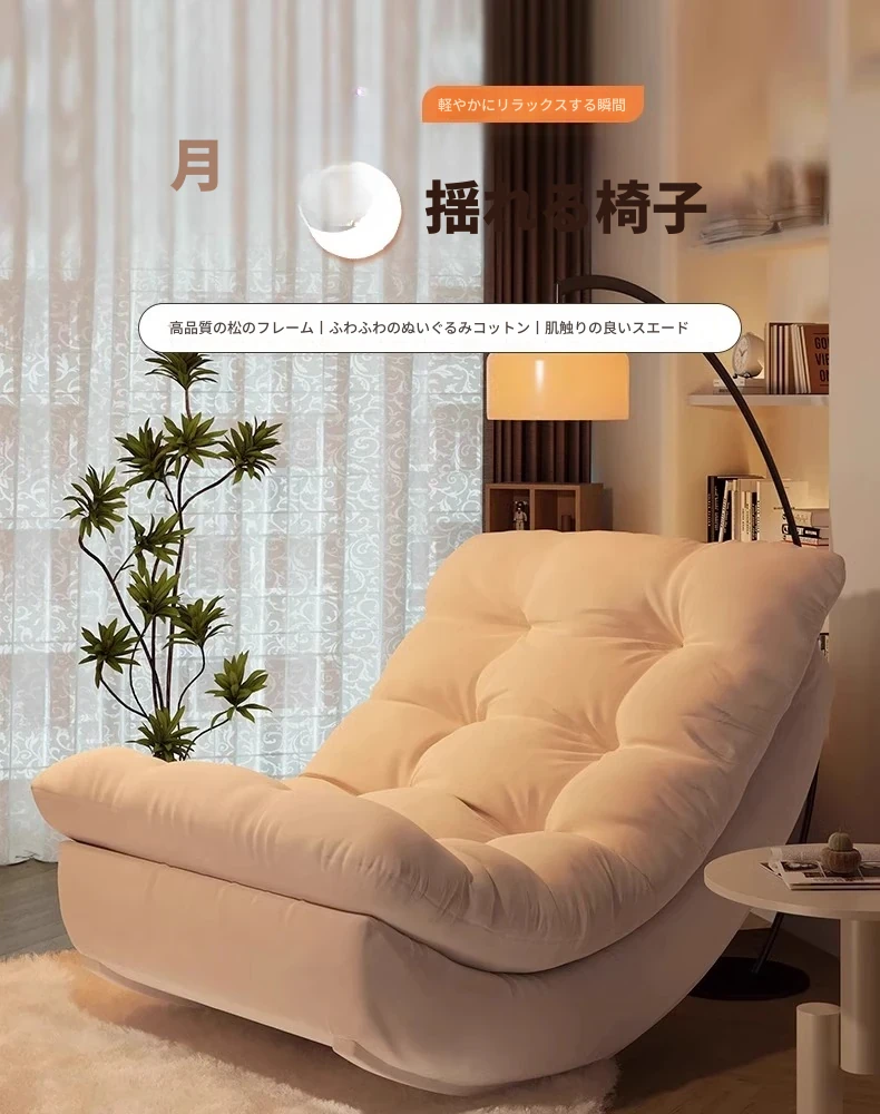 陽漫月の揺れるロッキングチェア - 大人向けのリラックスソファ!寝転がってくつろげる、バルコニーや寝室にぴったりな家庭用シングルチェア。心地よいひとときをお楽しみください!