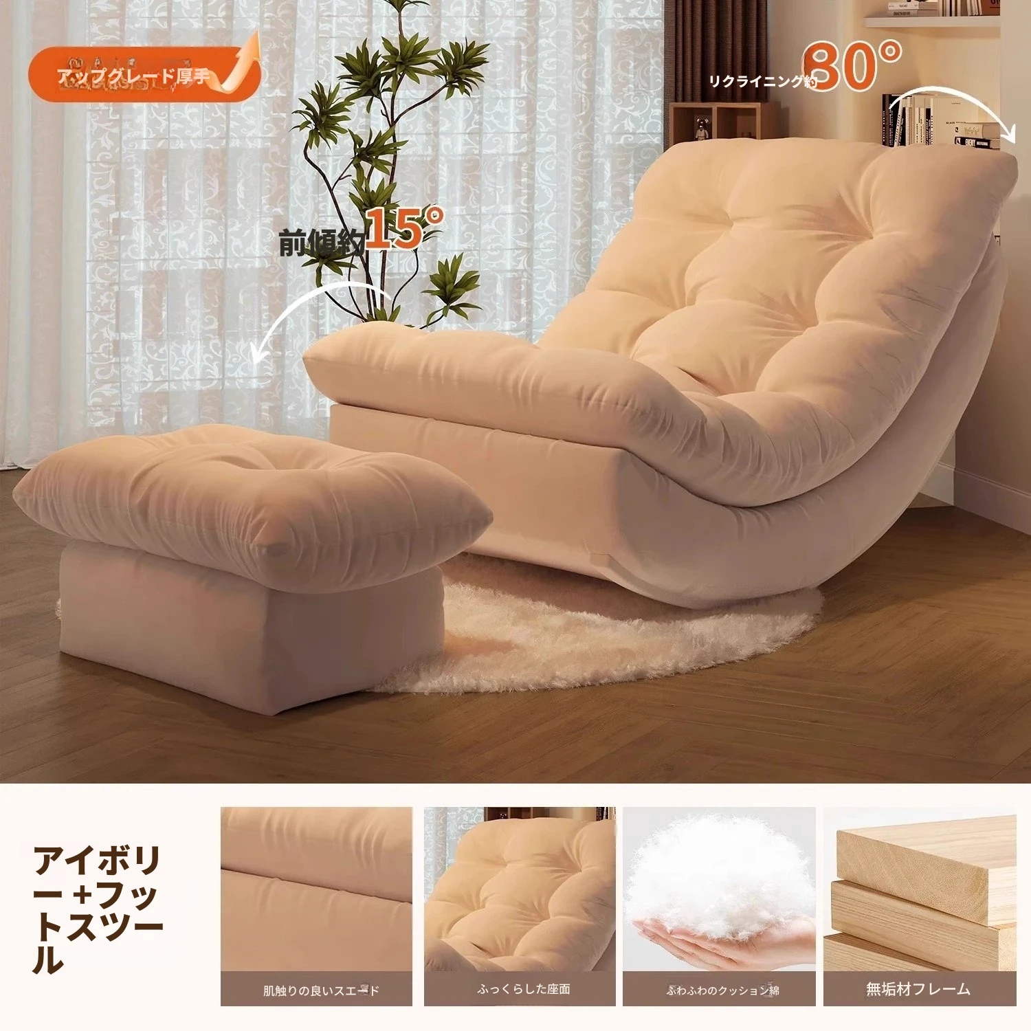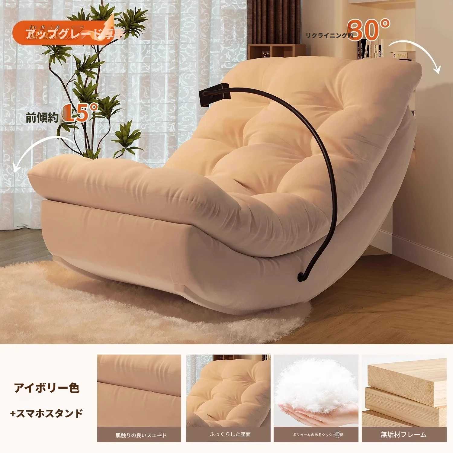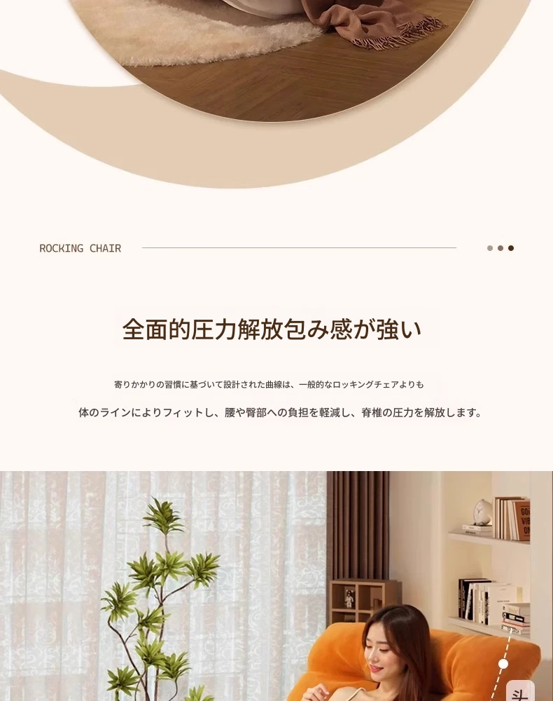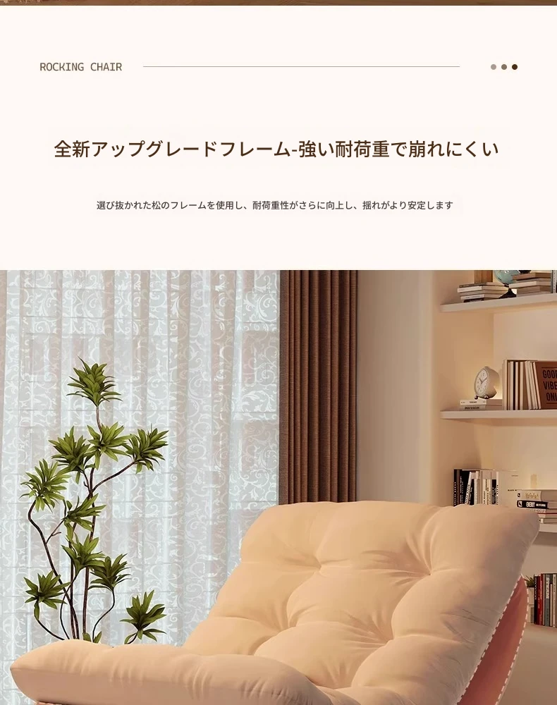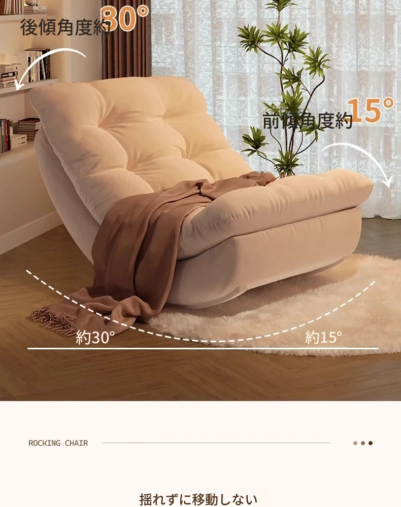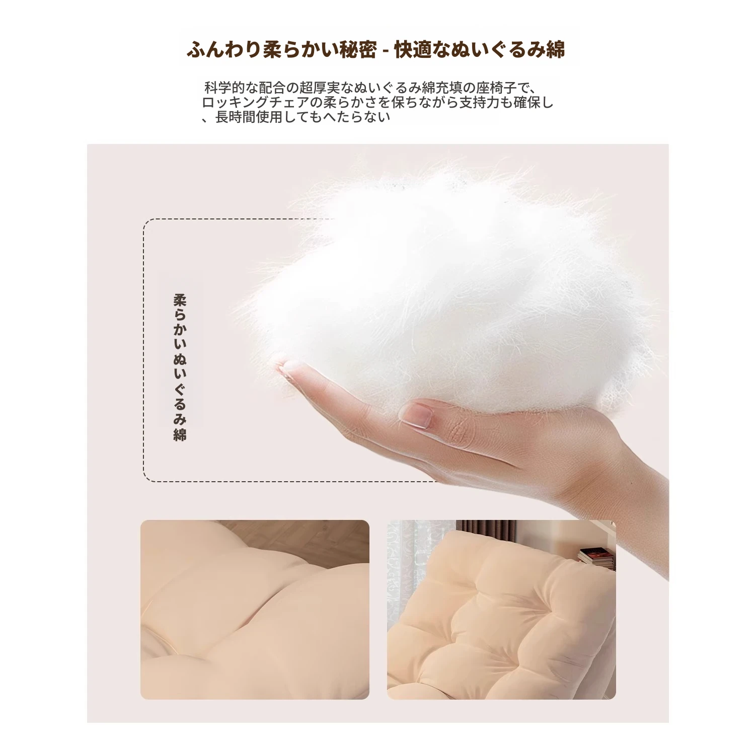 陽漫月の揺れるロッキングチェア - 大人向けのリラックスソファ!寝転がってくつろげる、バルコニーや寝室にぴったりな家庭用シングルチェア。心地よいひとときをお楽しみください!