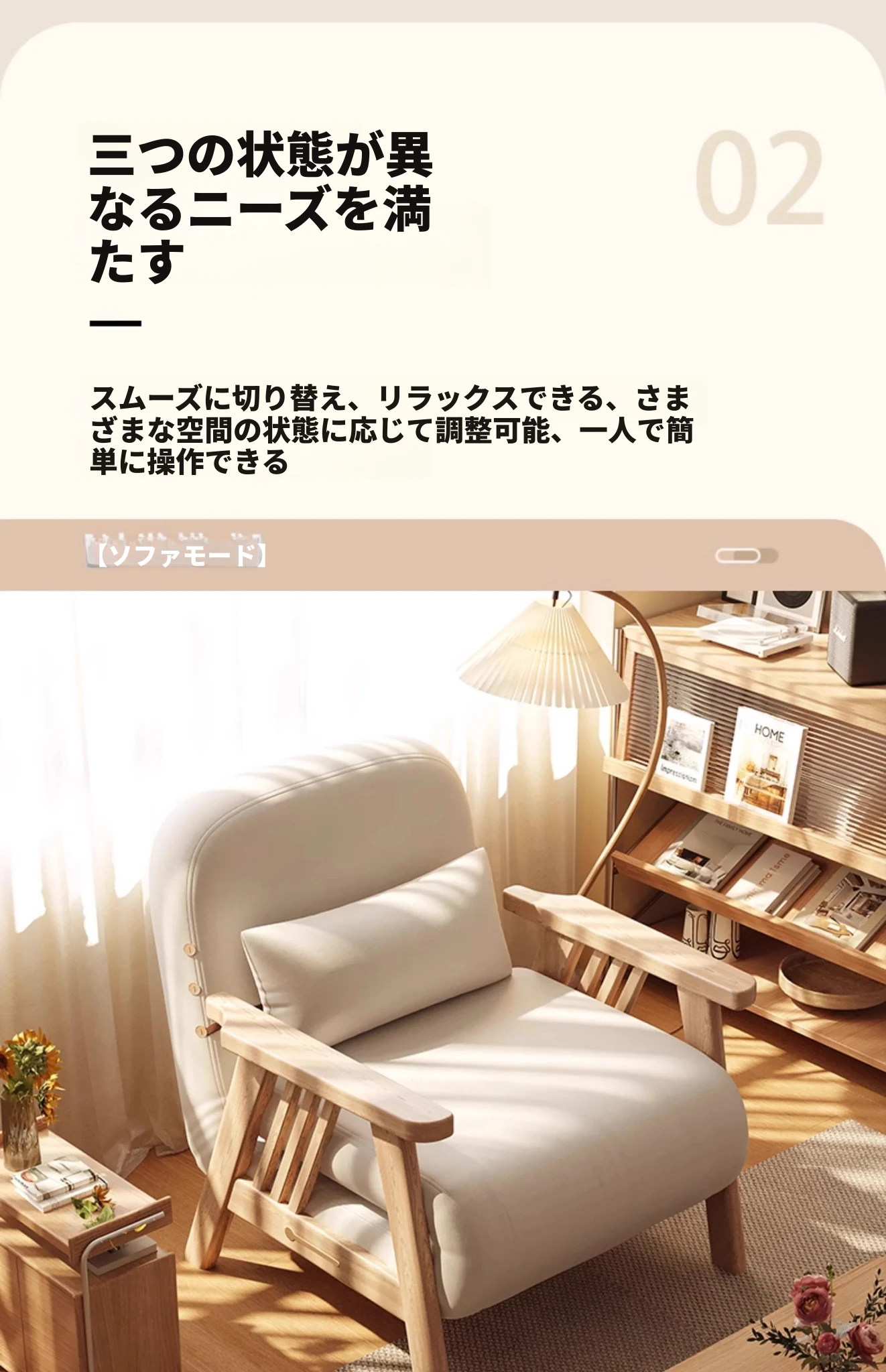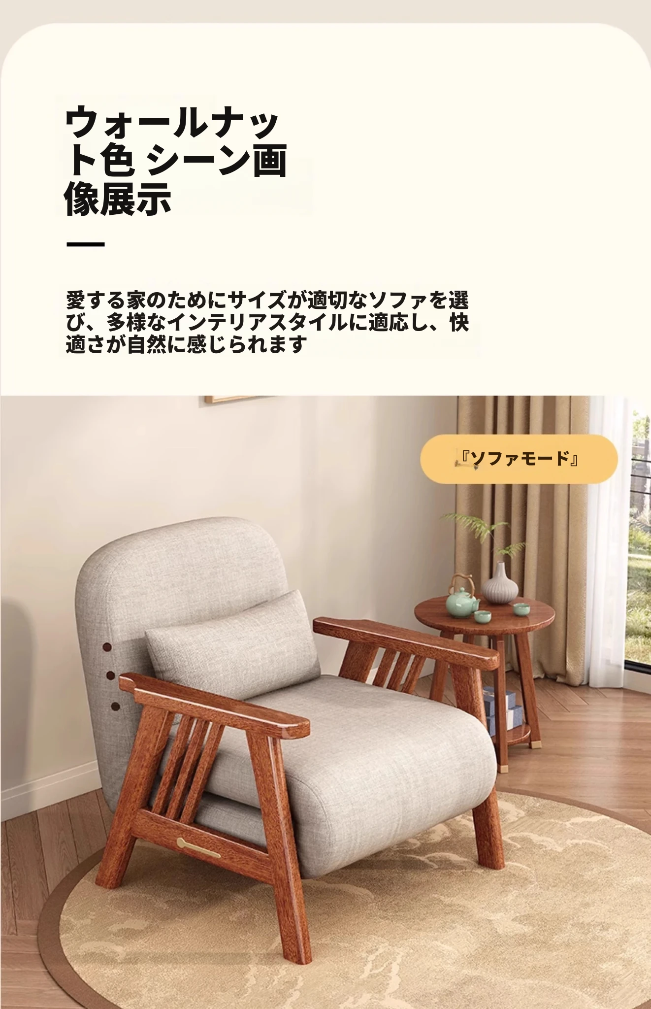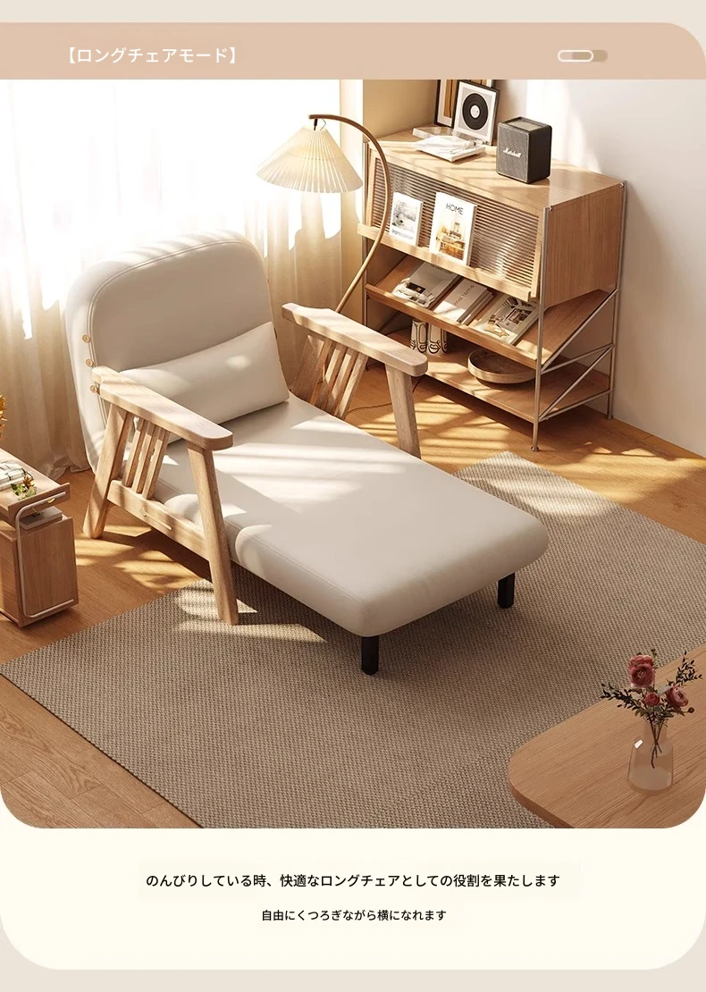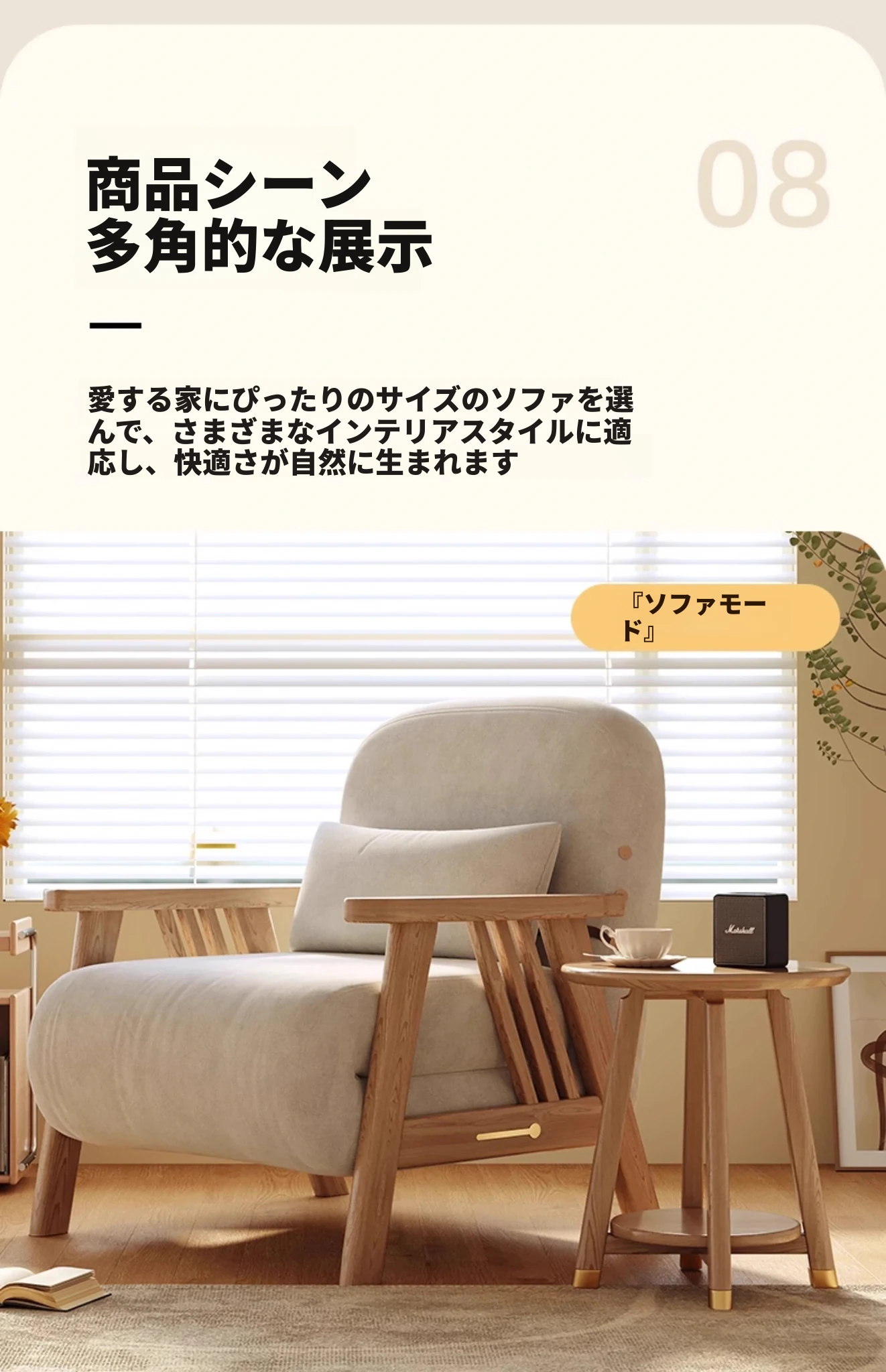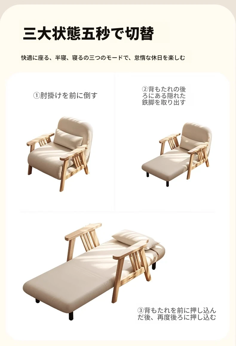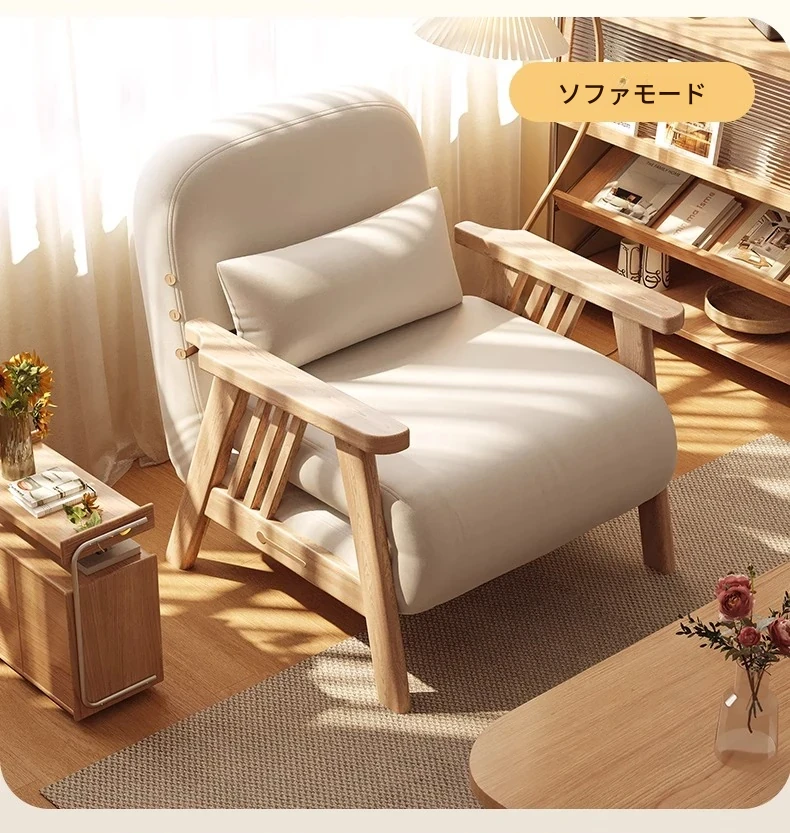 陽漫ホワイトワックスウッドの折りたたみソファベッド - リビングにぴったりな多機能一人用ソファ!省スペース設計で小さなお部屋にも最適。和風スタイルでおしゃれな空間を演出します。