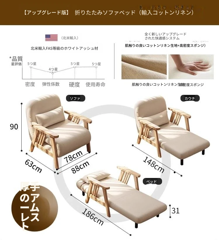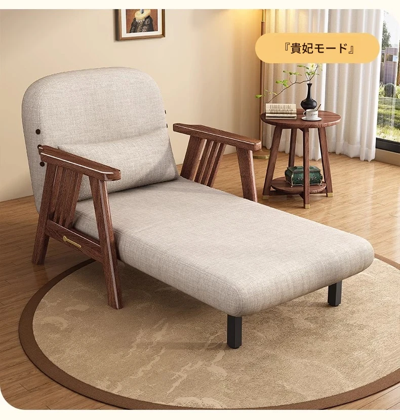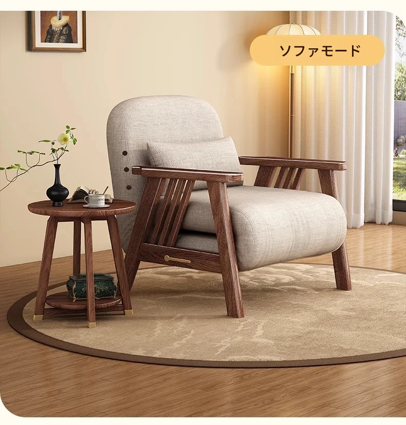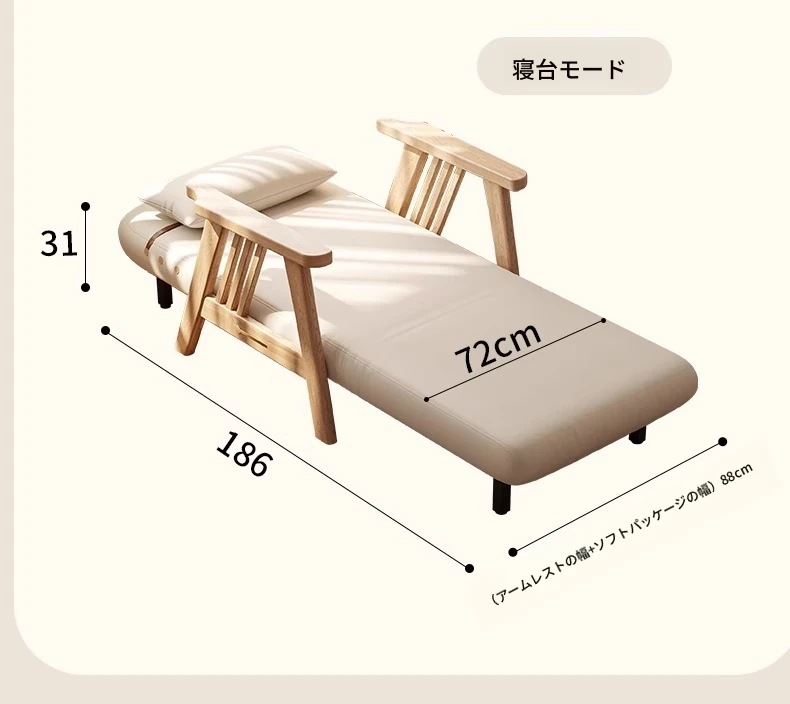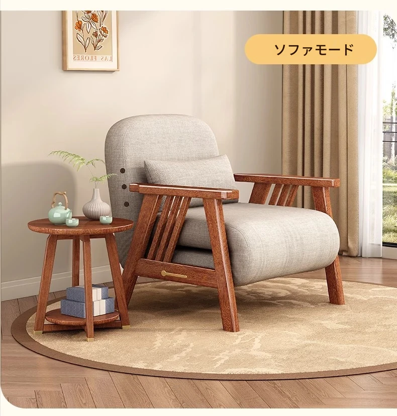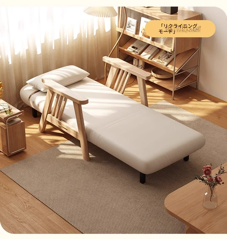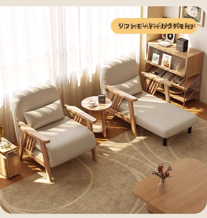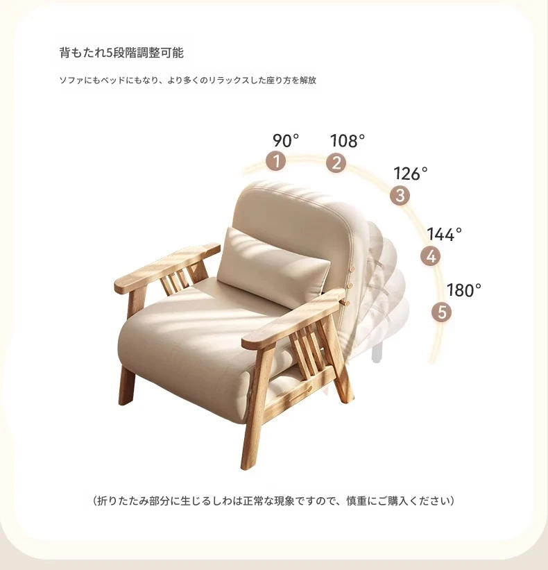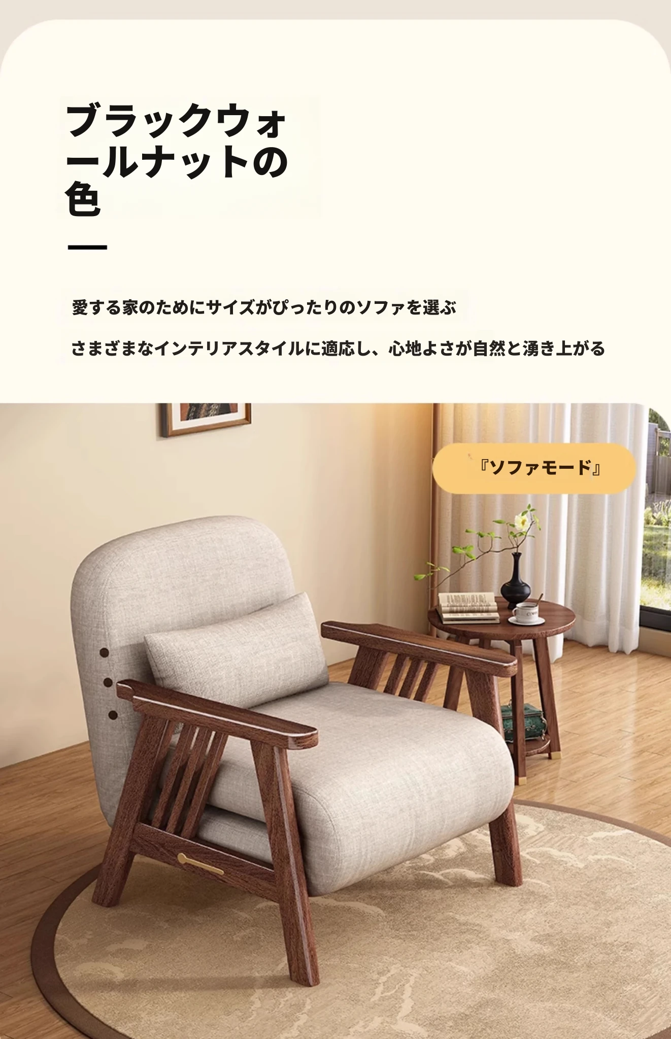 陽漫ホワイトワックスウッドの折りたたみソファベッド - リビングにぴったりな多機能一人用ソファ!省スペース設計で小さなお部屋にも最適。和風スタイルでおしゃれな空間を演出します。