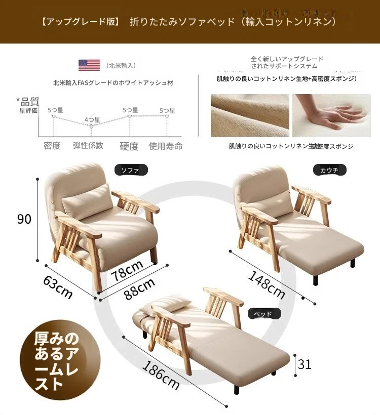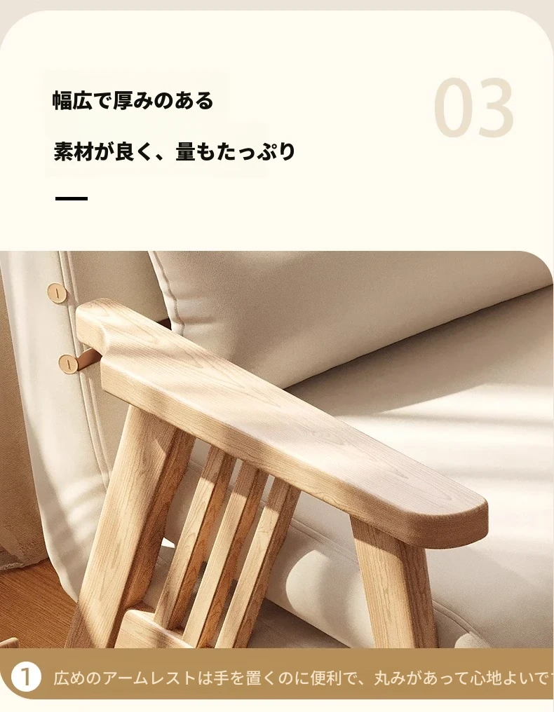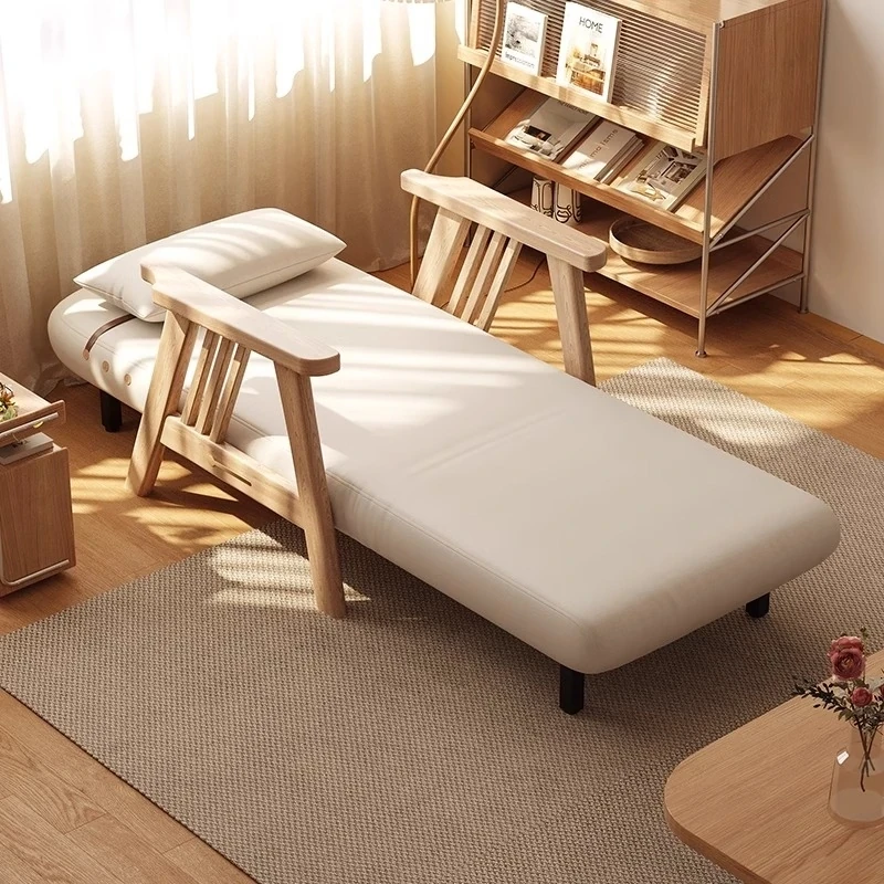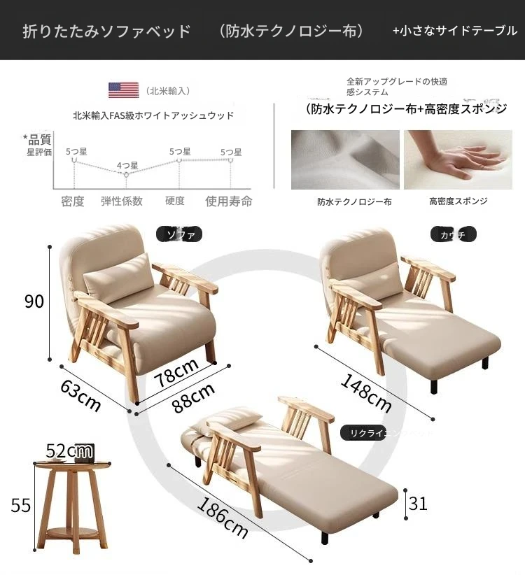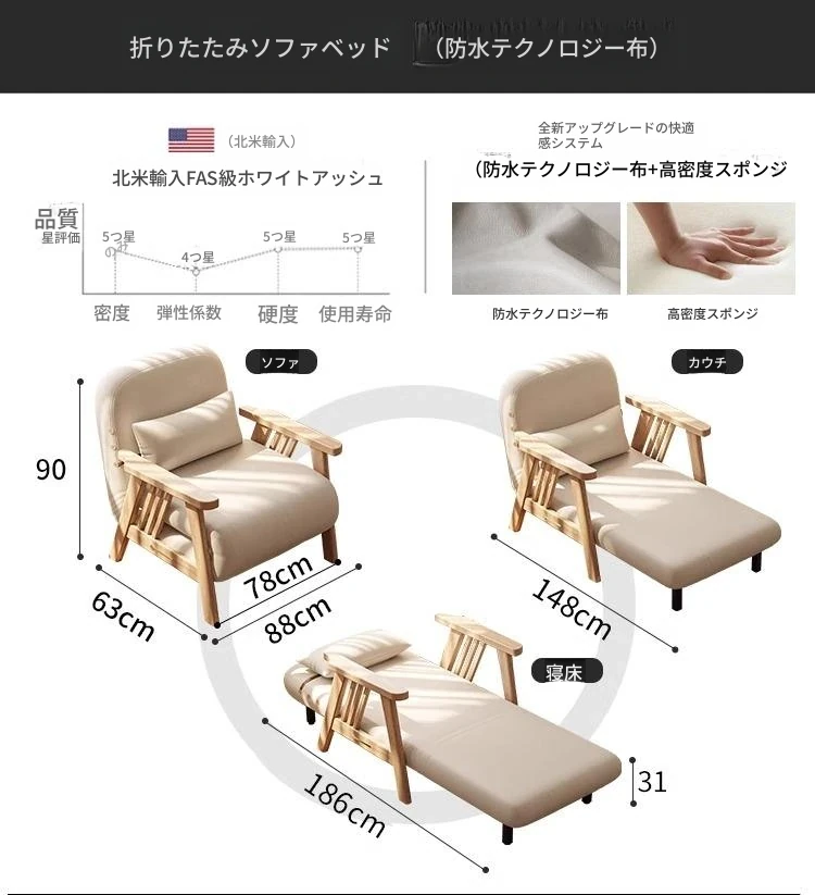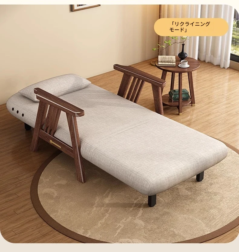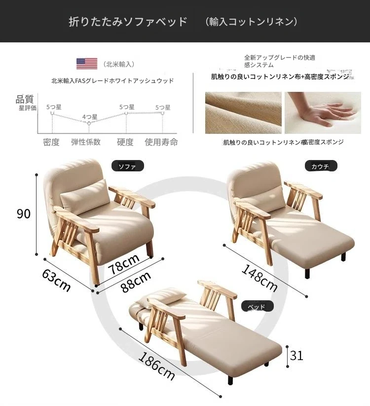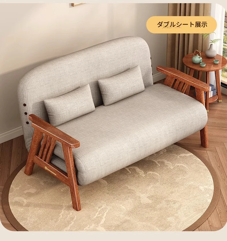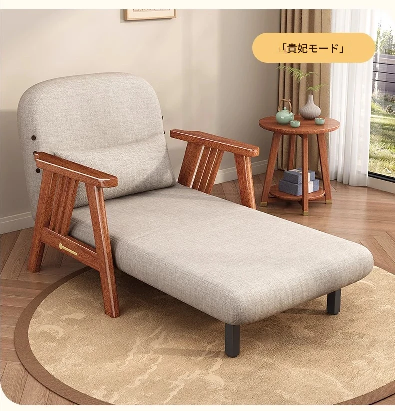 陽漫ホワイトワックスウッドの折りたたみソファベッド - リビングにぴったりな多機能一人用ソファ!省スペース設計で小さなお部屋にも最適。和風スタイルでおしゃれな空間を演出します。