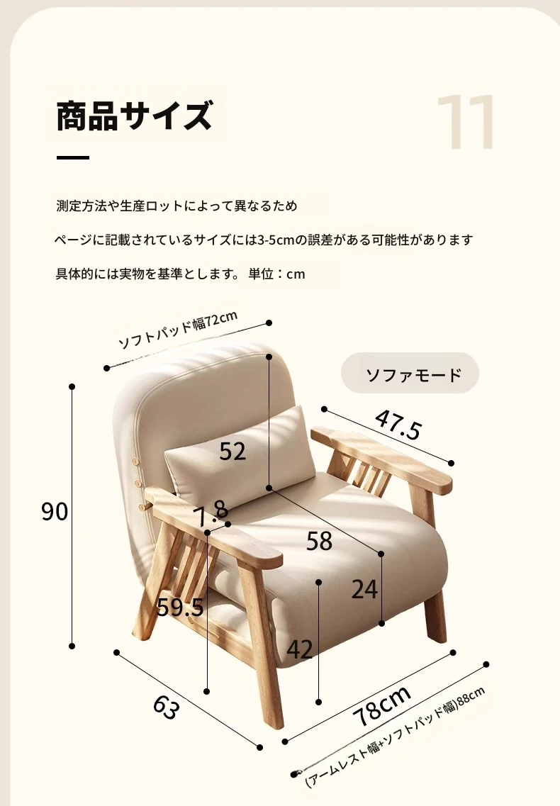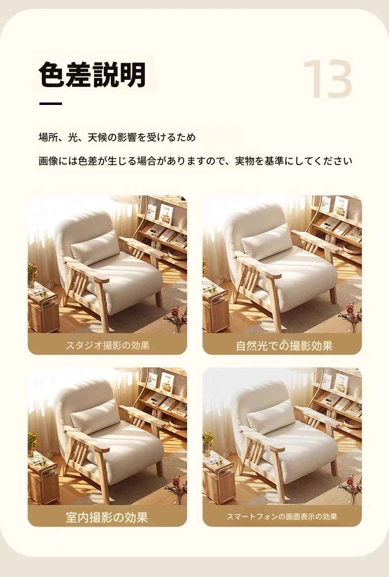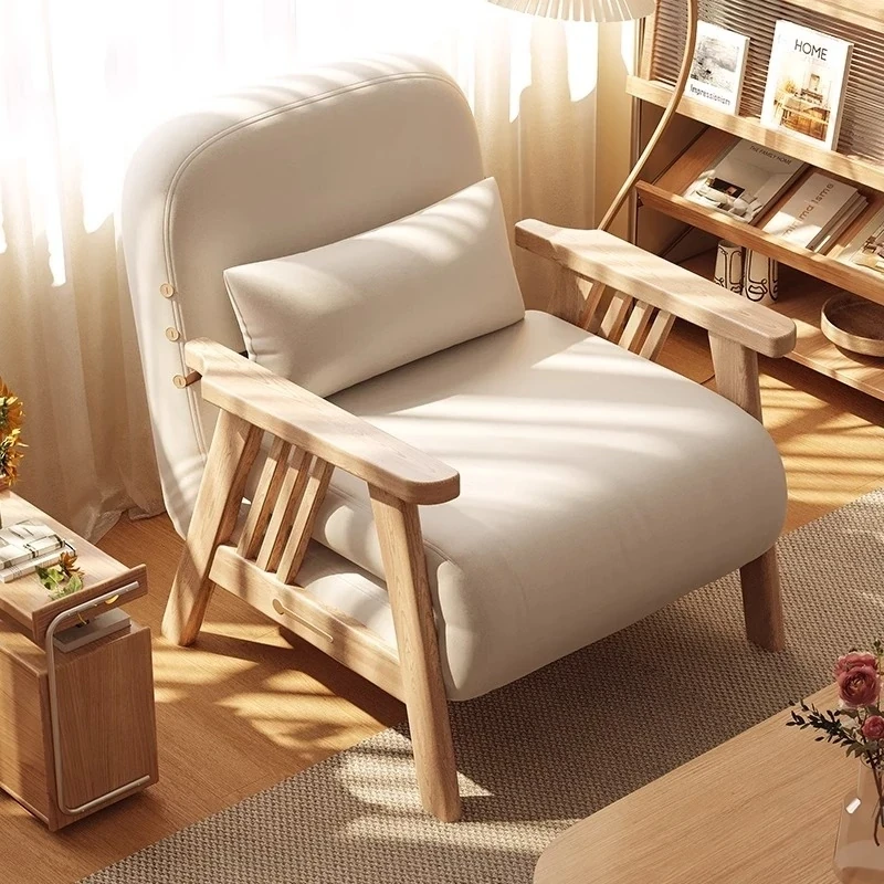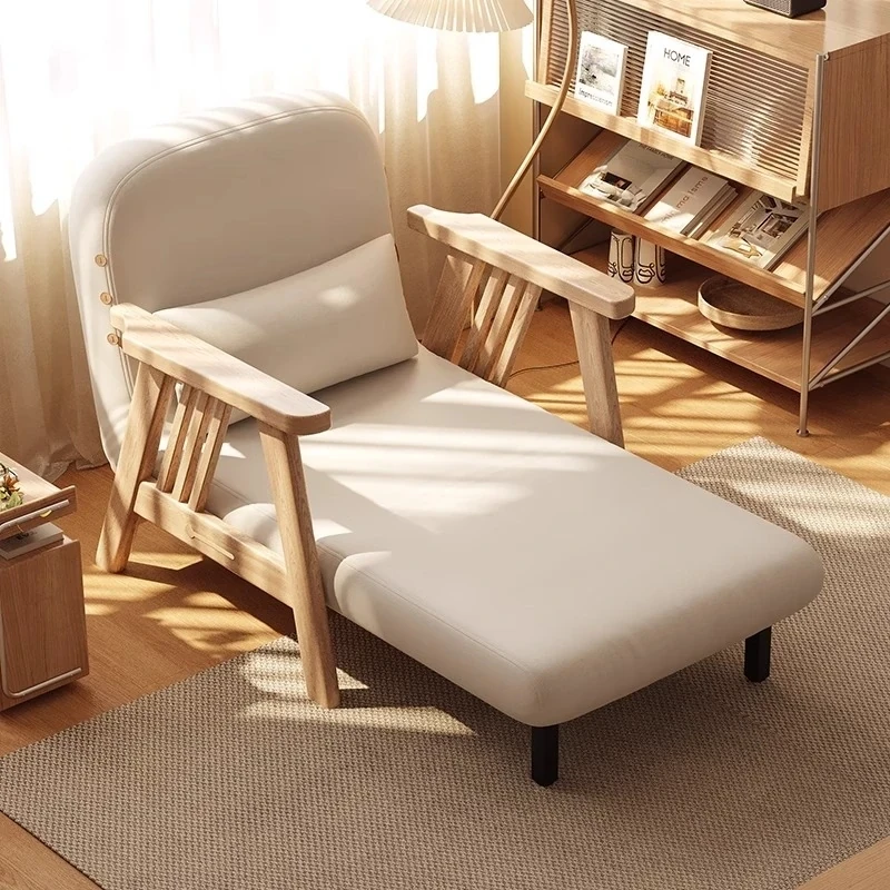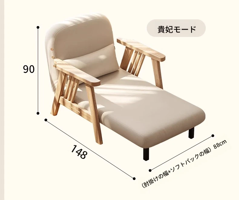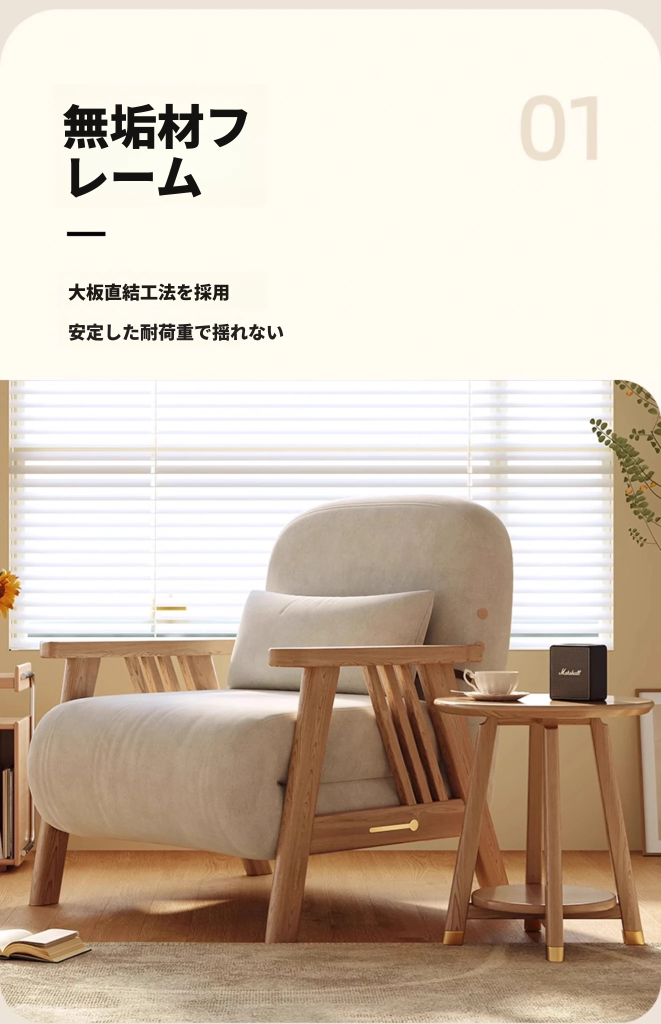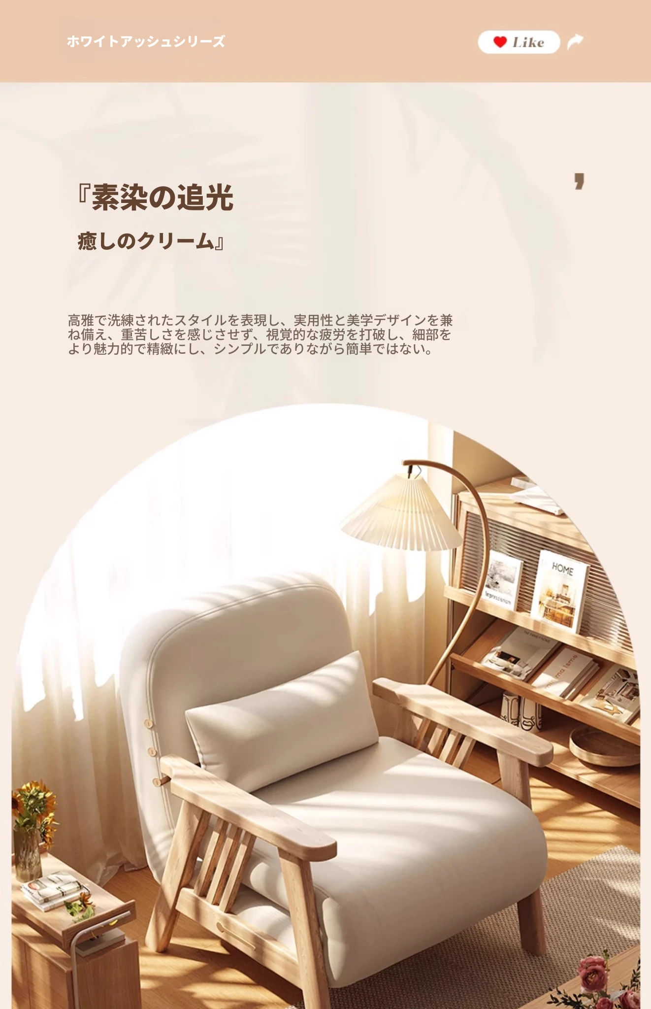 陽漫ホワイトワックスウッドの折りたたみソファベッド - リビングにぴったりな多機能一人用ソファ!省スペース設計で小さなお部屋にも最適。和風スタイルでおしゃれな空間を演出します。