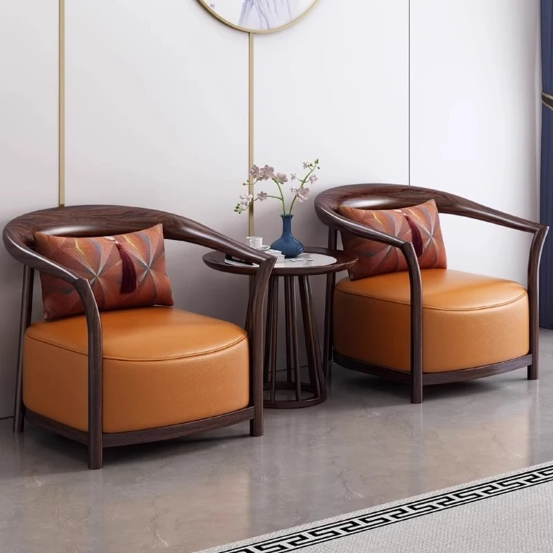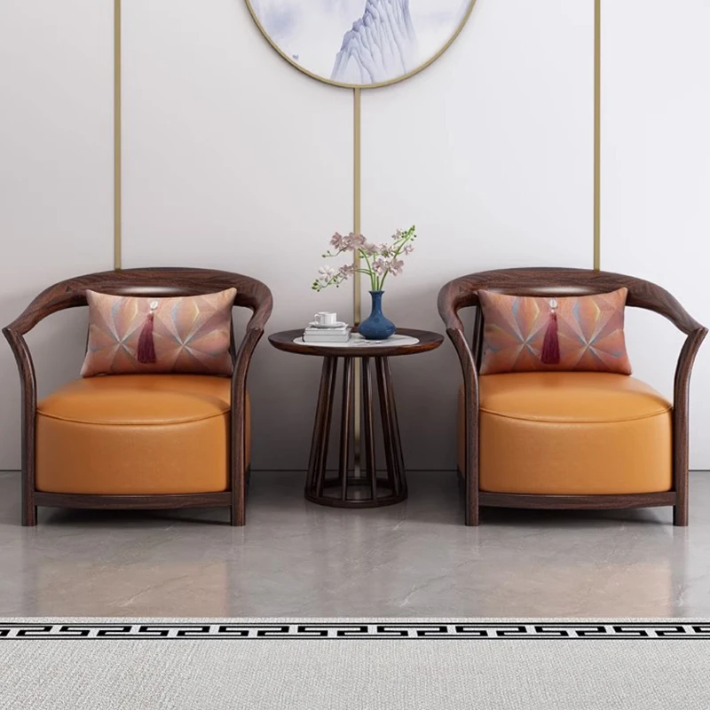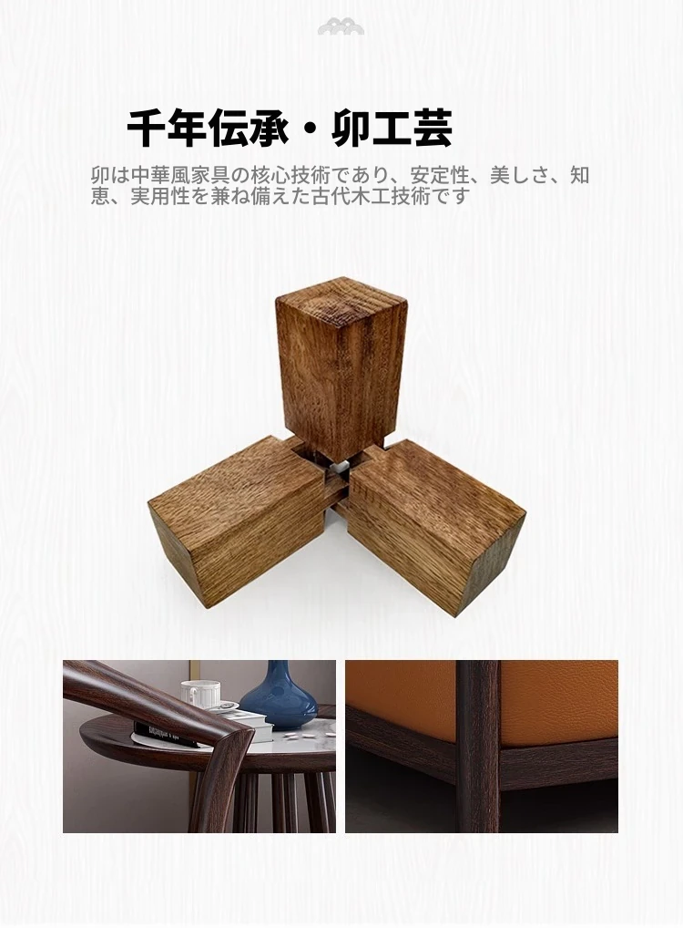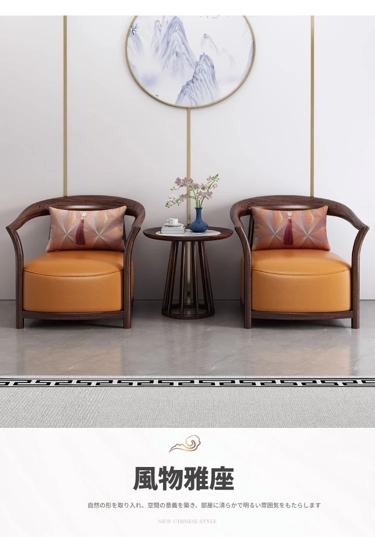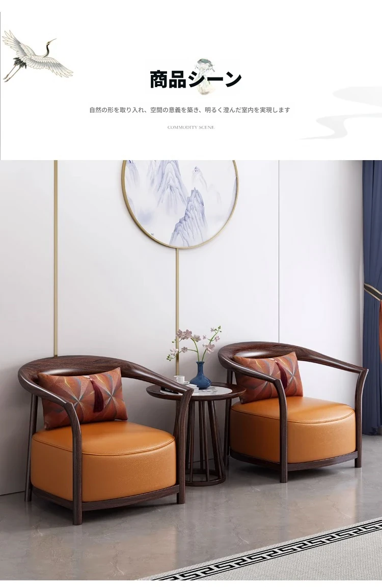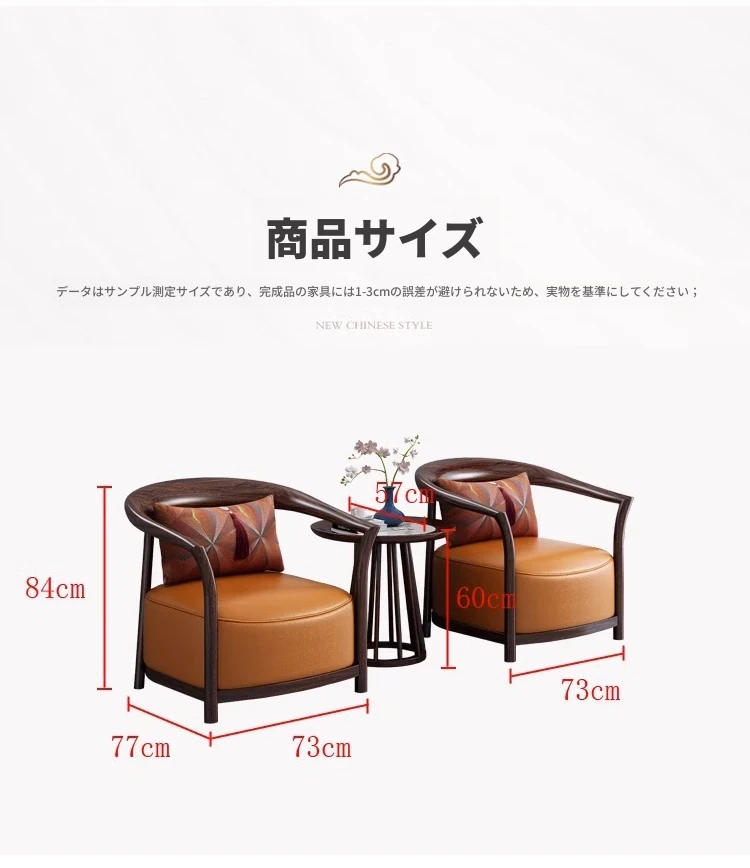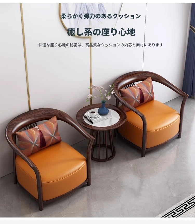 悦米優品 新中式ウッドカラーチェア3点セット リビングルーム用 本格的な無垢材のティーテーブルとソファチェアで、くつろぎの空間を演出します。洗練されたデザインで、あなたの家に心地よい和の風情を添えます。