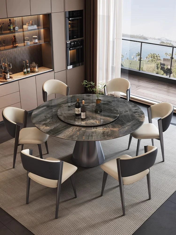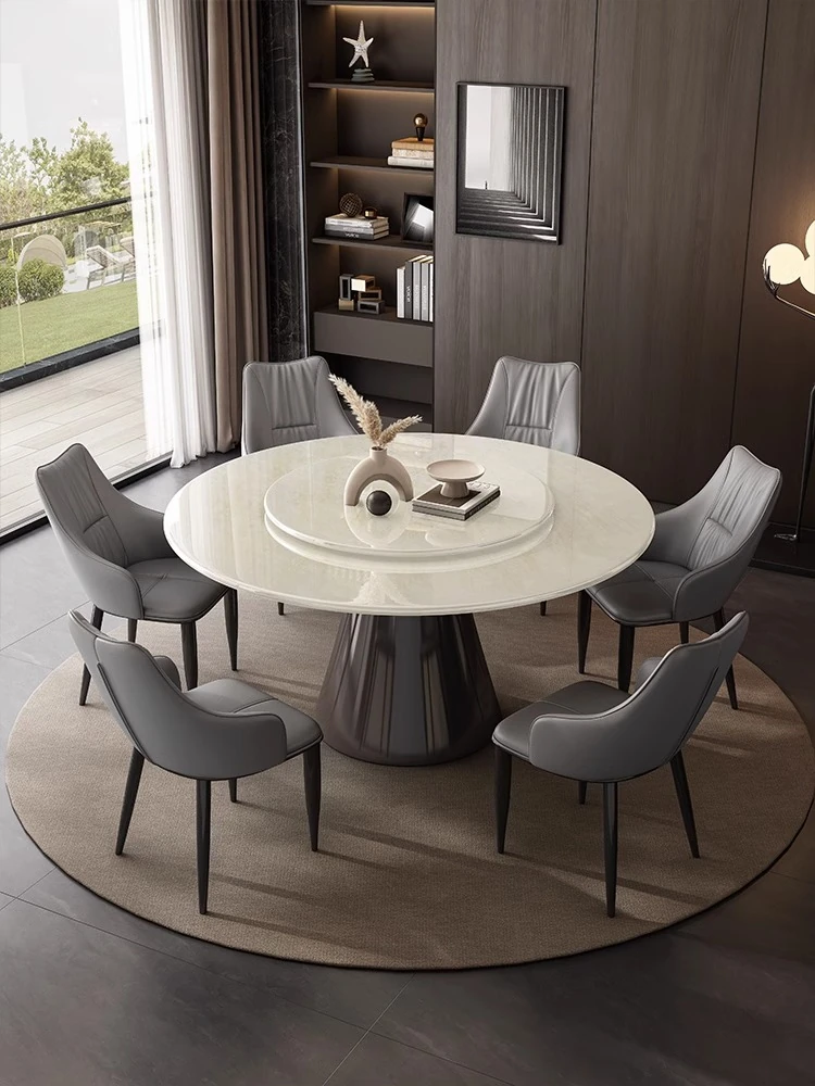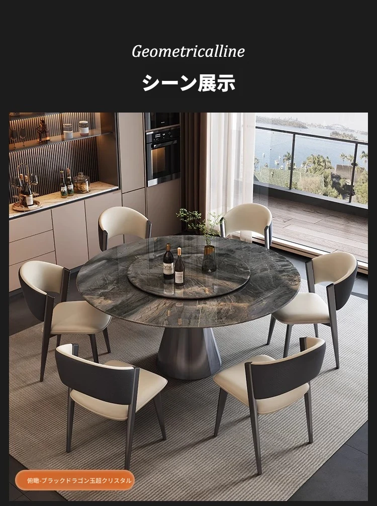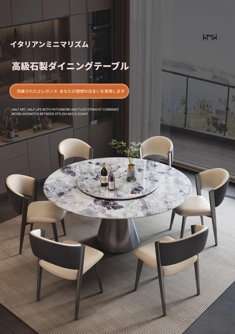 玉菲イタリアンラグジュアリー超クリスタルストーンダイニングテーブル 天然大理石のラウンドテーブル ヴィラ向けシンプルモダン 家庭用食卓
