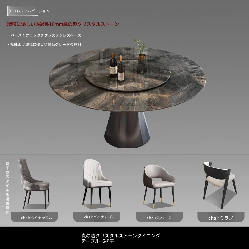超クリスタルストーン天板ダイニングテーブル+6椅子