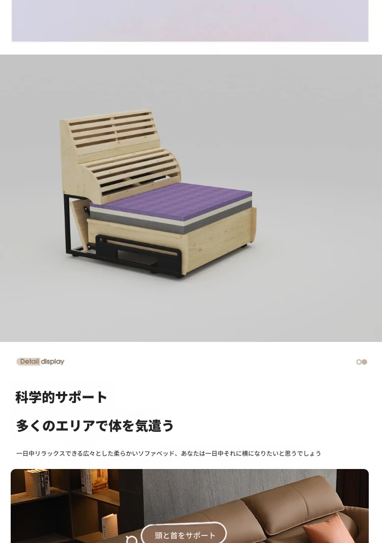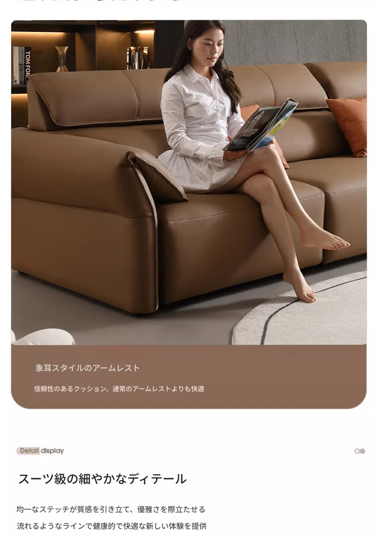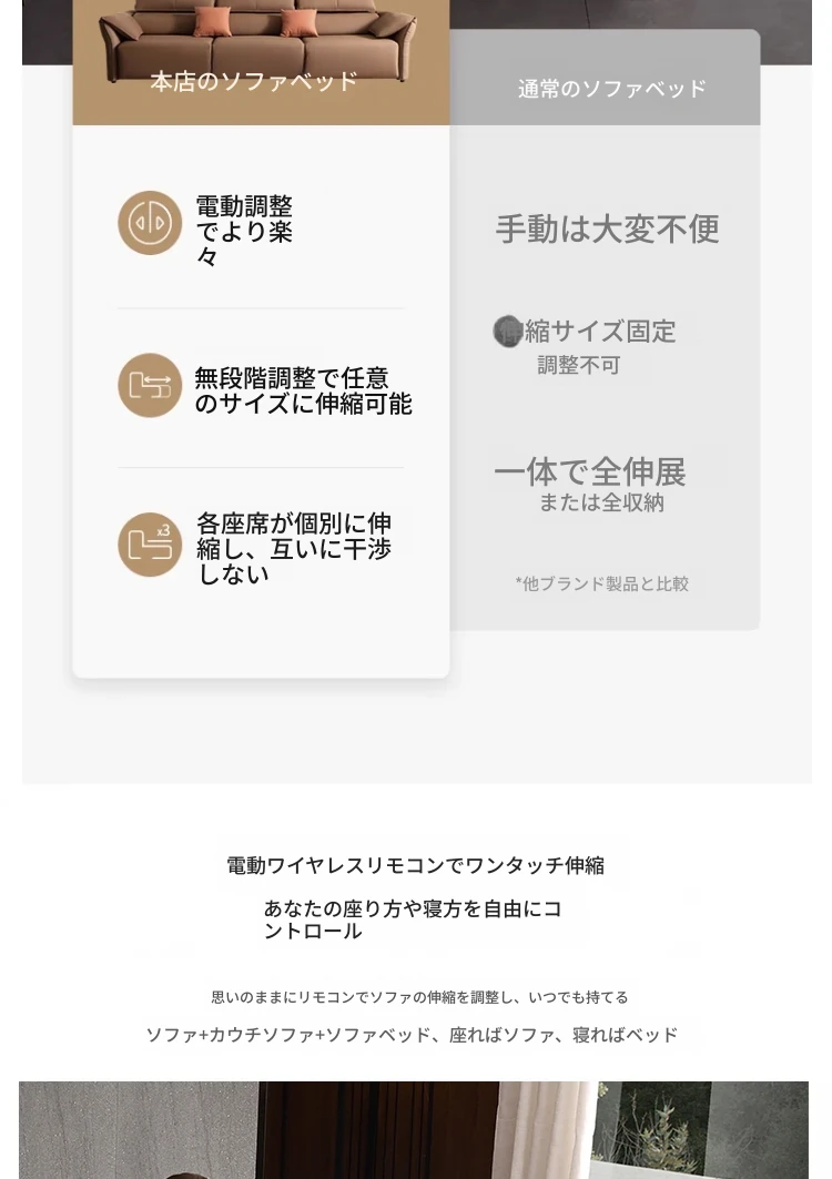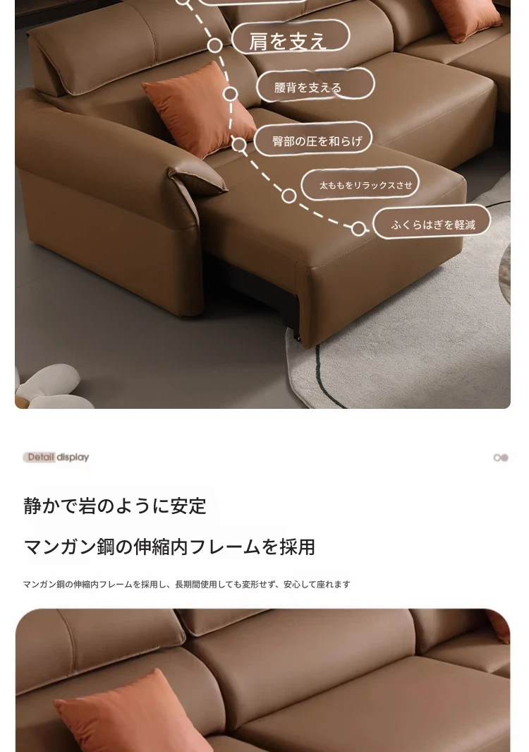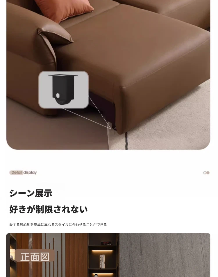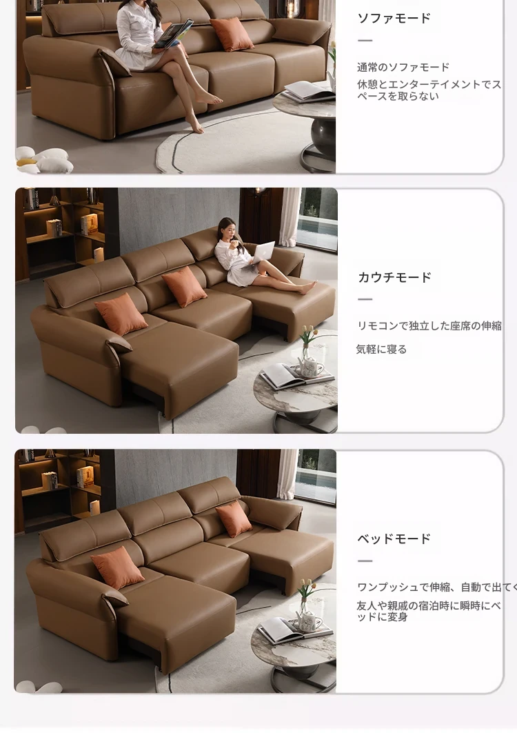 三人用2.65m【イタリアトスカーナ牛革+50D高反発ウレタン】全電動