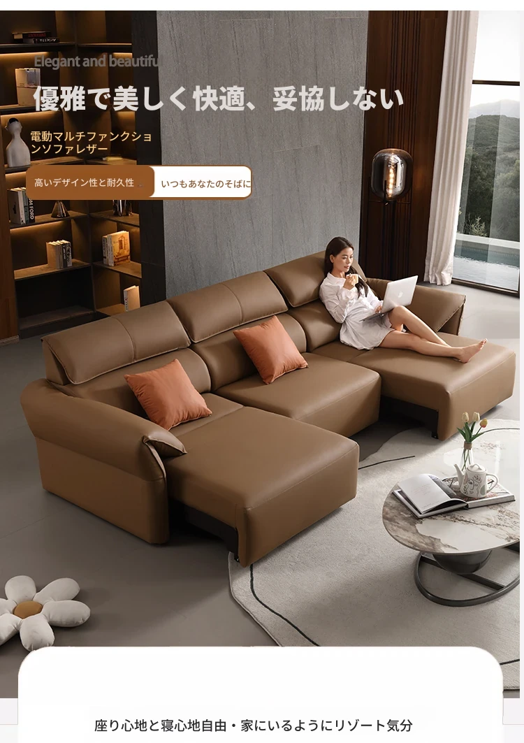 四人用3.4m【イタリアトスカーナ牛革+50D高反発ウレタン】全電動