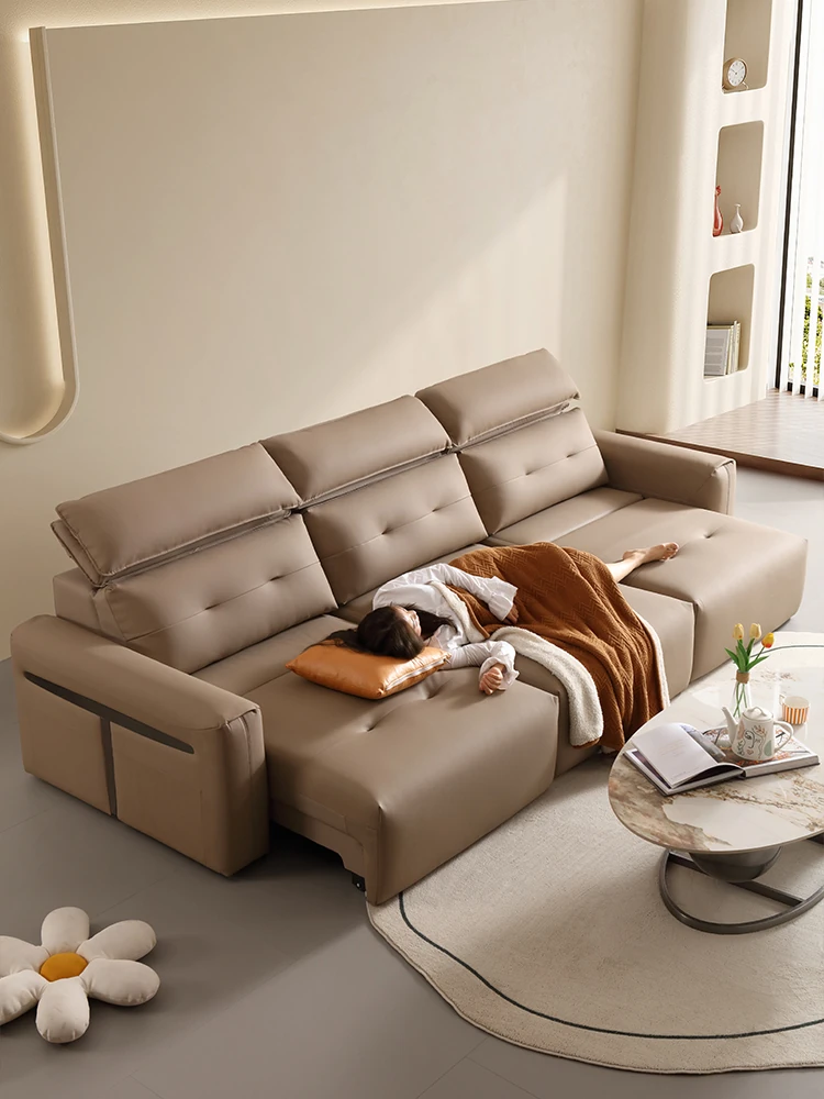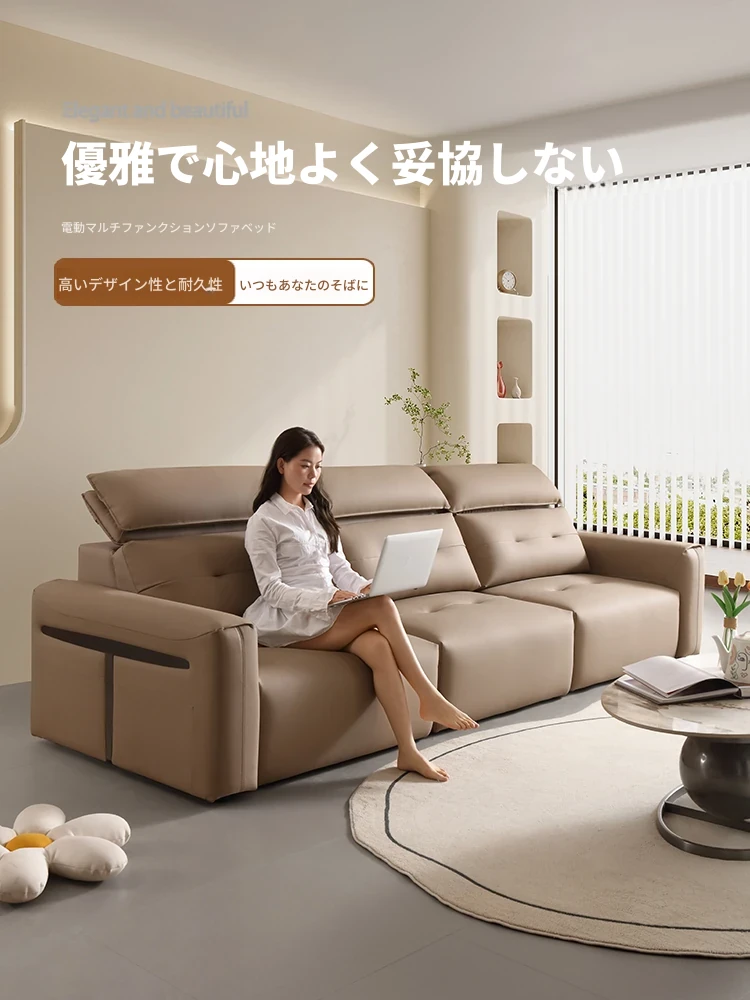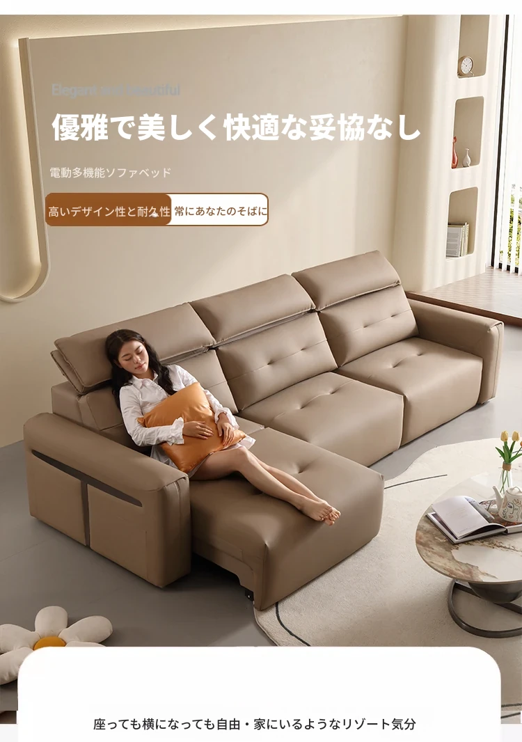 玉菲のイタリアン本革ソファ - モダンでシンプルなデザイン、コンパクトなサイズにぴったり!多機能の伸縮式レザーソファベッドで、リビングをスタイリッシュに演出。快適さと機能性を兼ね備えた一品です!