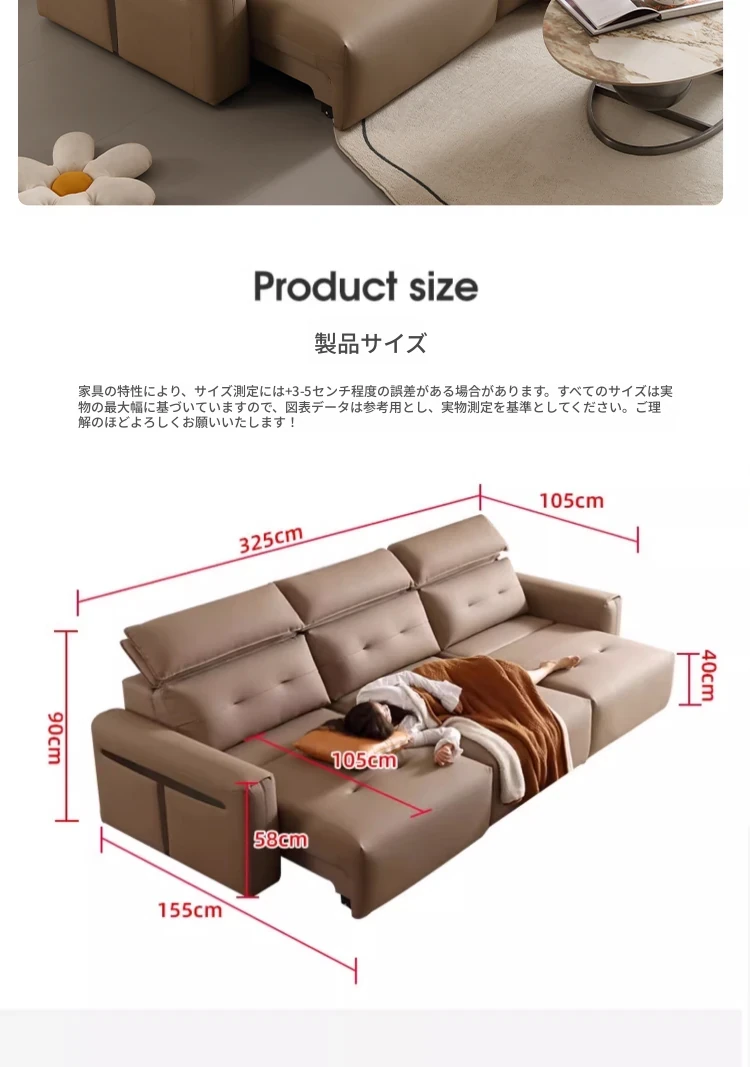 三人用3.25メートル【ライチ模様ナッパ本革+45D高弾性スポンジ】全電動 三人用3.25メートル【ライチ模様ナッパ本革+45D高弾性スポンジ】全電動