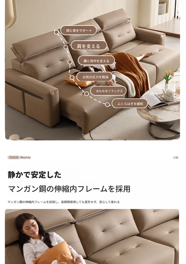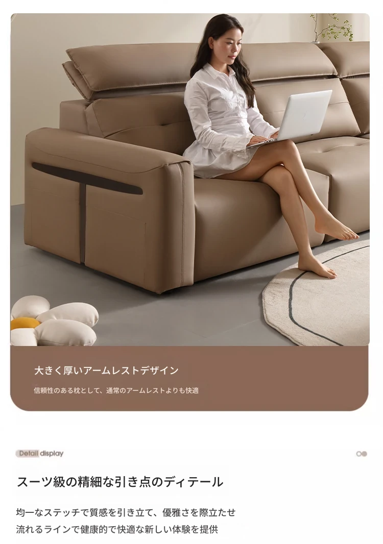 三人用2.65メートル【イタリアトスカーナ牛革+50D高弾性スポンジ】全電動 三人用2.65メートル【イタリアトスカーナ牛革+50D高弾性スポンジ】全電動
