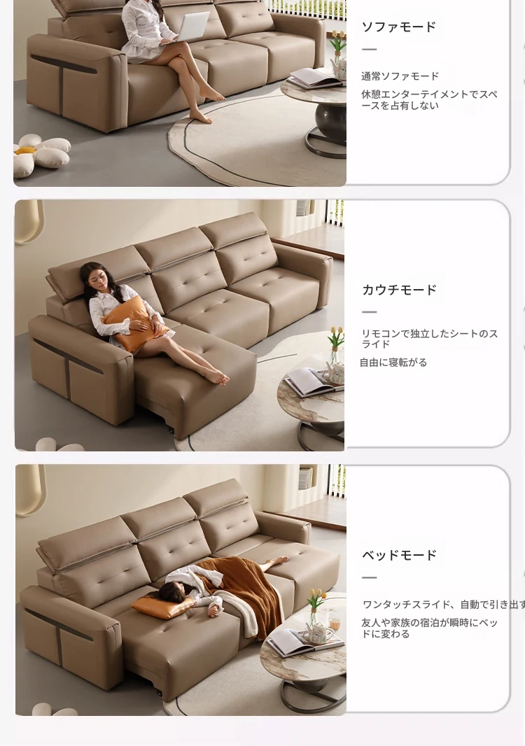 三人用3.05メートル【ライチ模様ナッパ本革+45D高弾性スポンジ】全電動 三人用3.05メートル【ライチ模様ナッパ本革+45D高弾性スポンジ】全電動