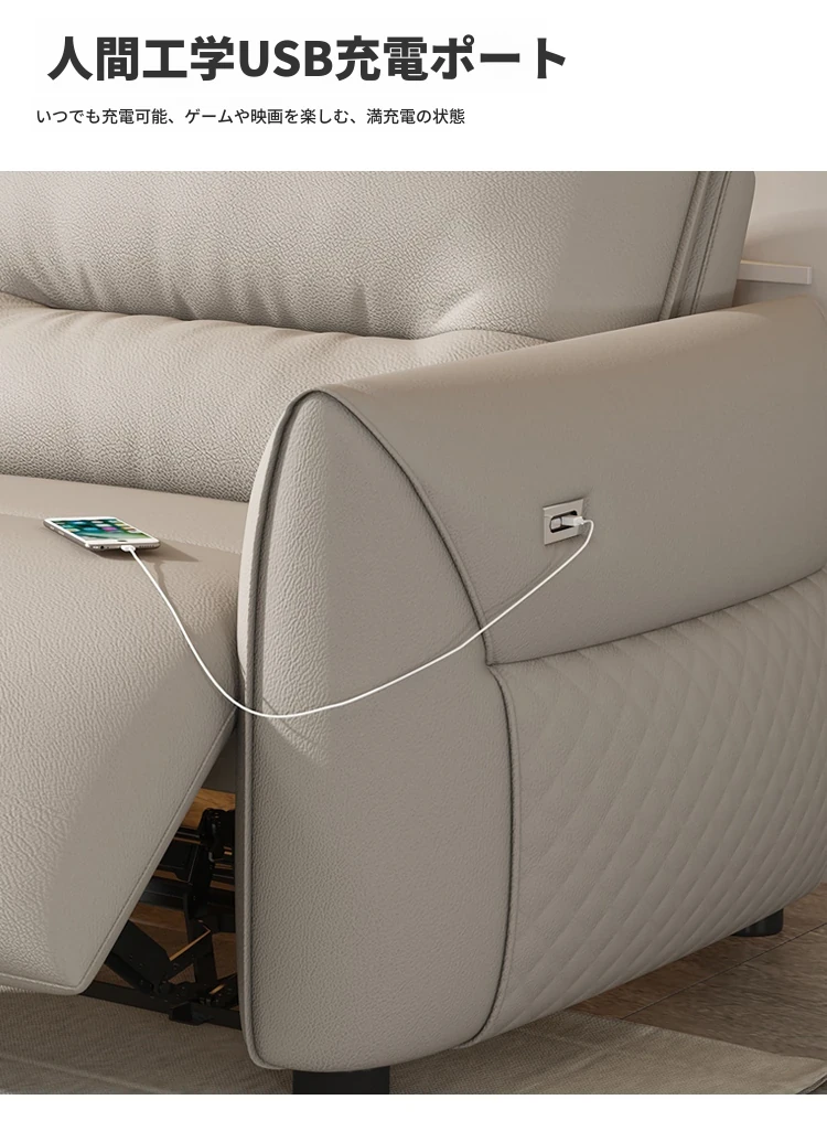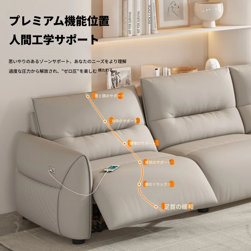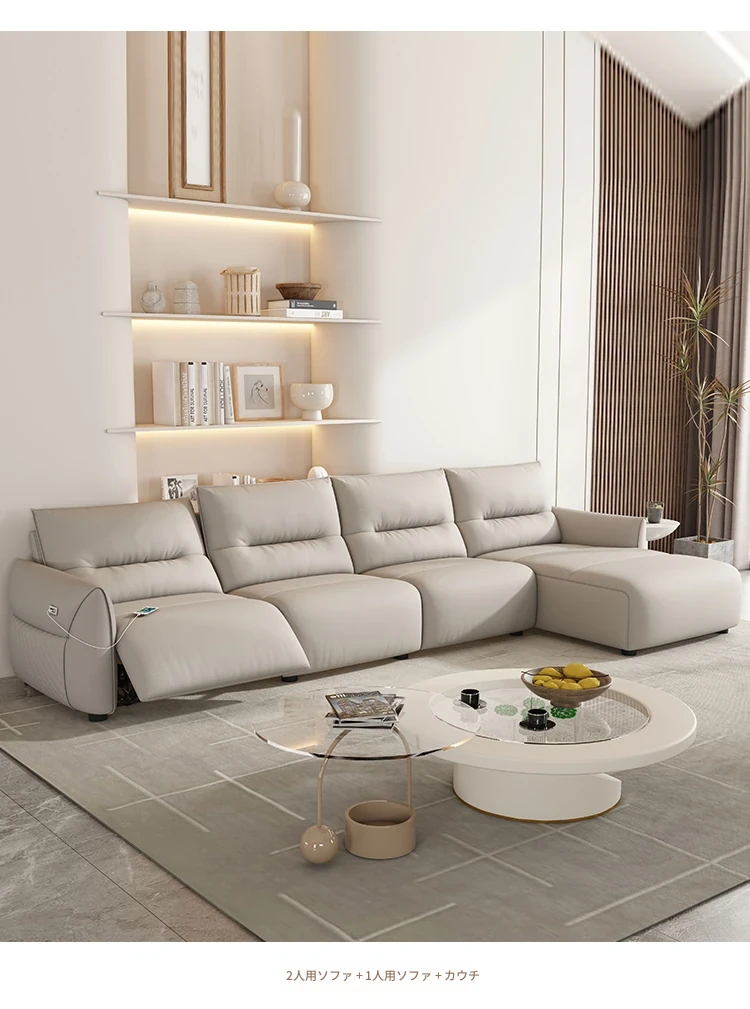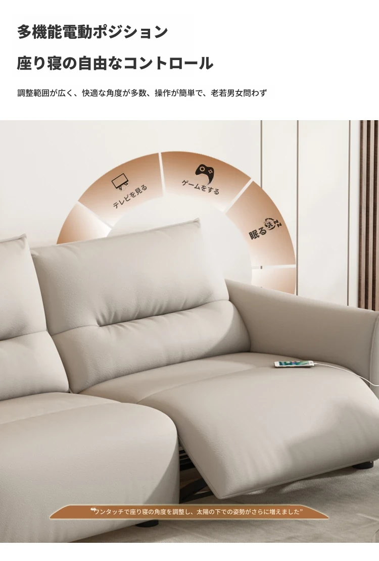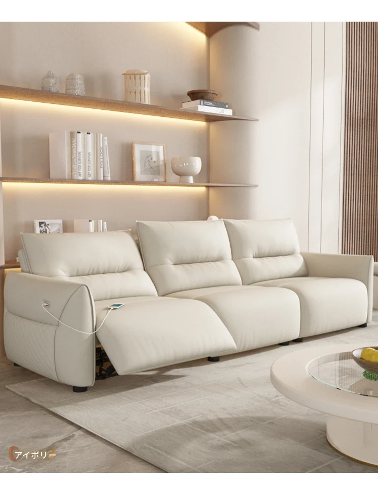 允馨クリーム風電動ソファー 伸縮式 モダンミニマリスト 小型家電に最適 シンプルなリビング用 多人数対応ソファー