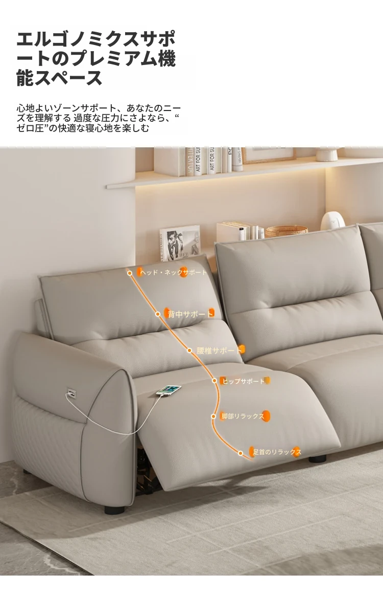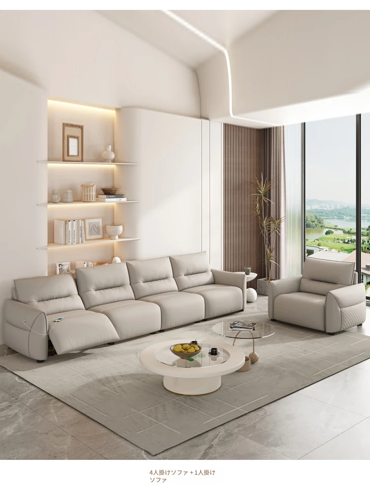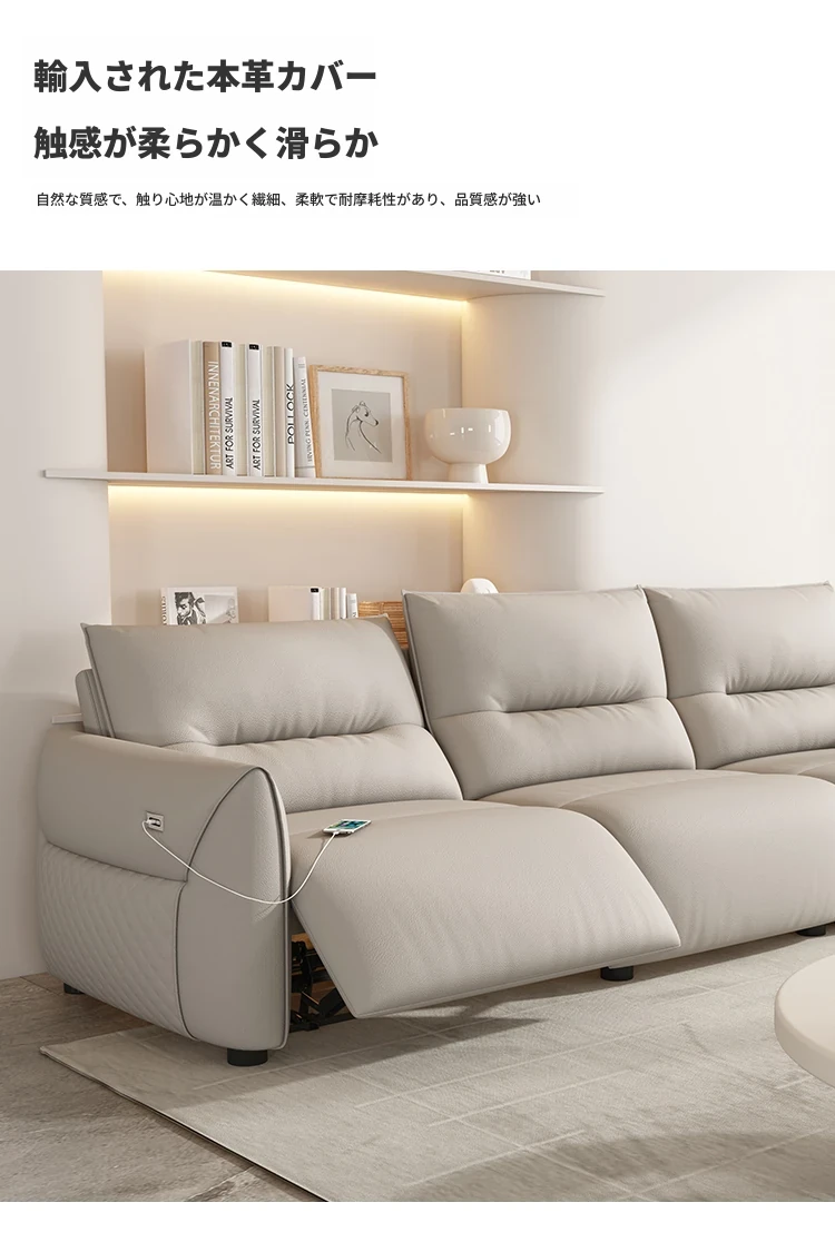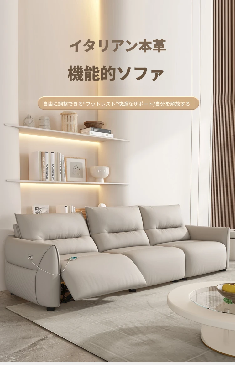 允馨クリーム風電動ソファー 伸縮式 モダンミニマリスト 小型家電に最適 シンプルなリビング用 多人数対応ソファー