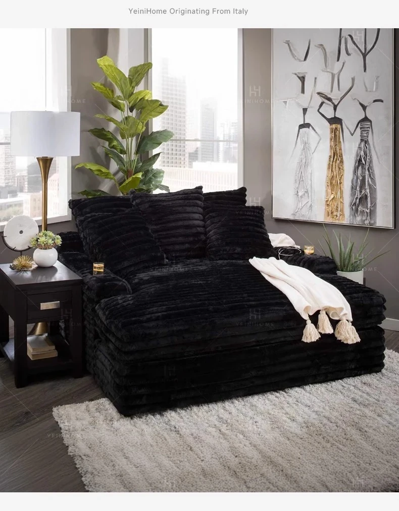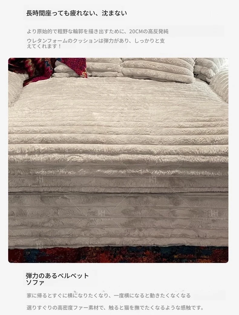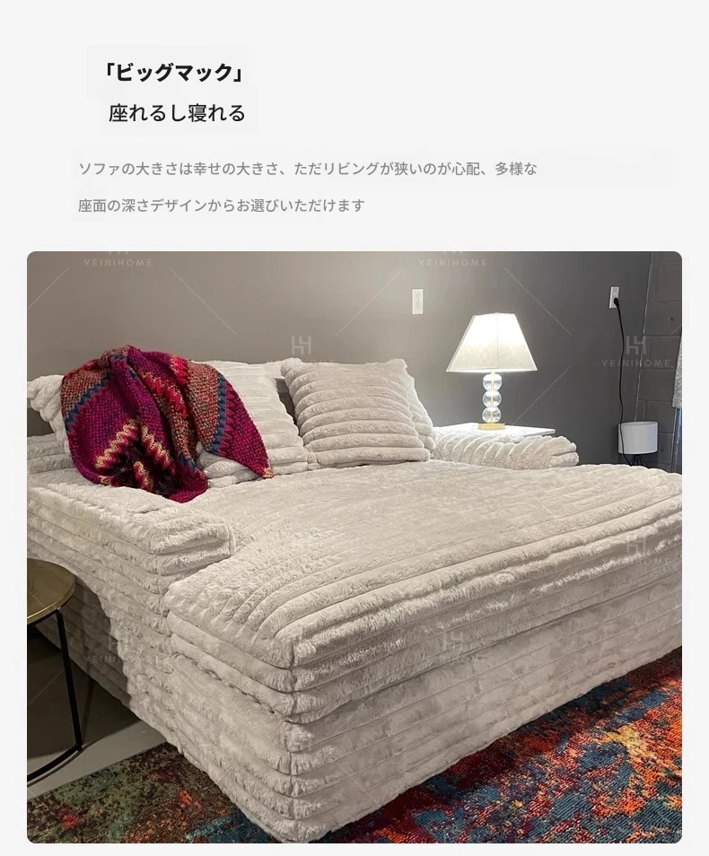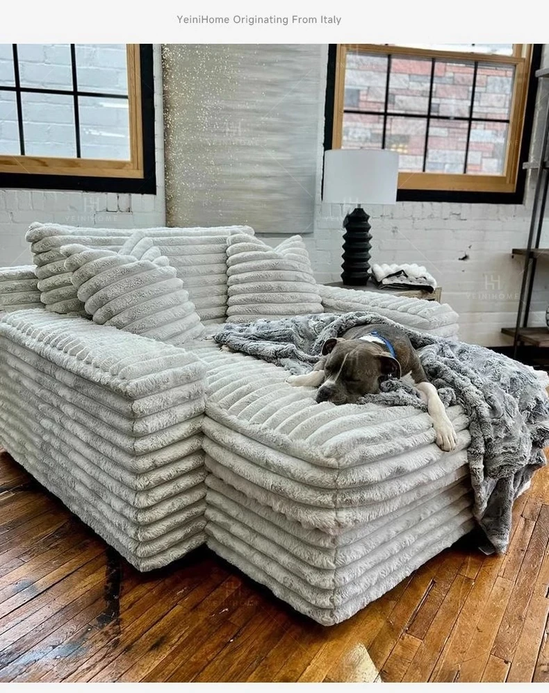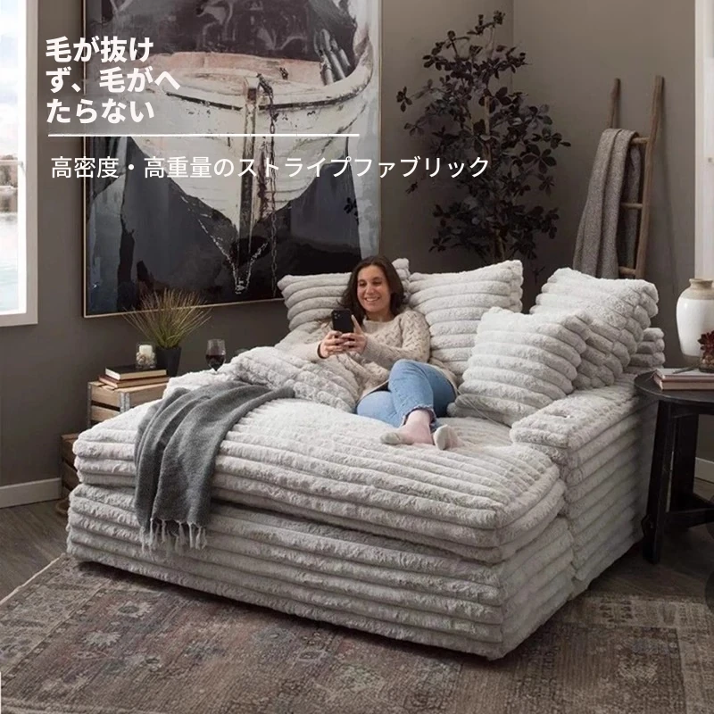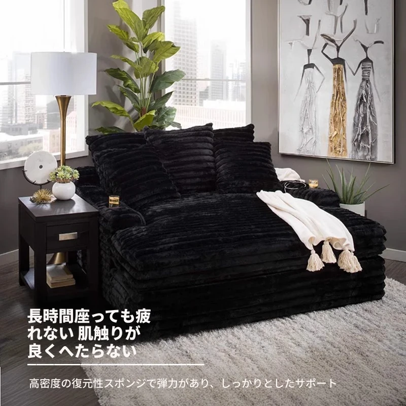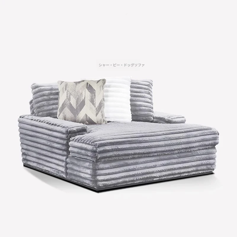 允馨サッパイ犬ソファー - 超広々とした座面と深さ、ラグジュアリーなベルベット素材で、大型住宅や別荘に最適な超大きなファーモダンシアターリラックスソファ!快適な空間で至福のひとときを。
