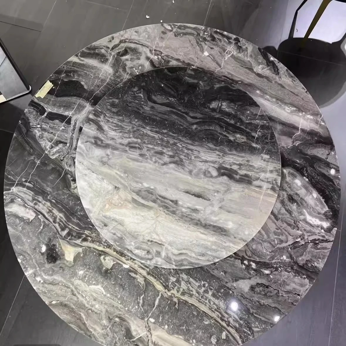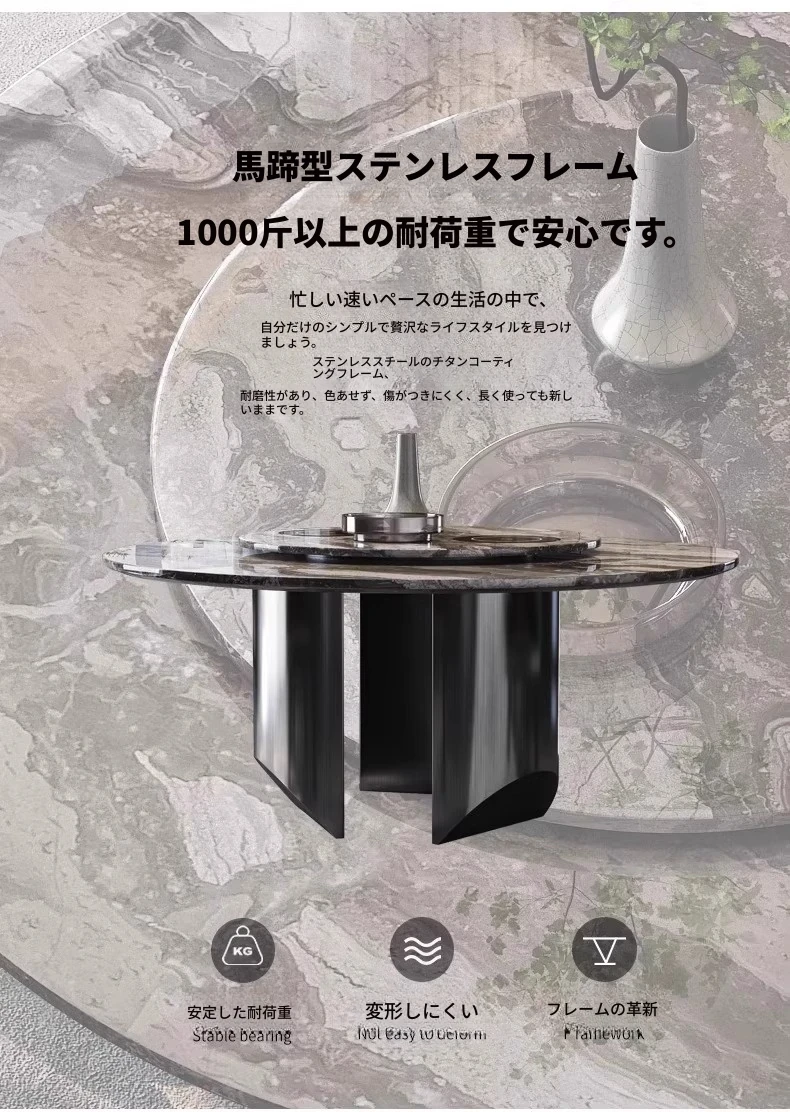 120CM輸入ヴェネツィアブラウン天然ラグジュアリーストーンダイニングテーブル+70CM回転盤