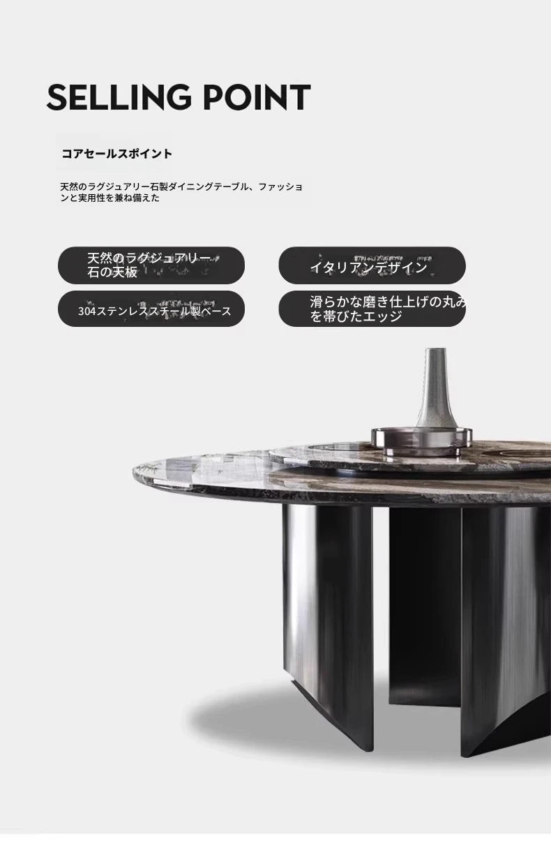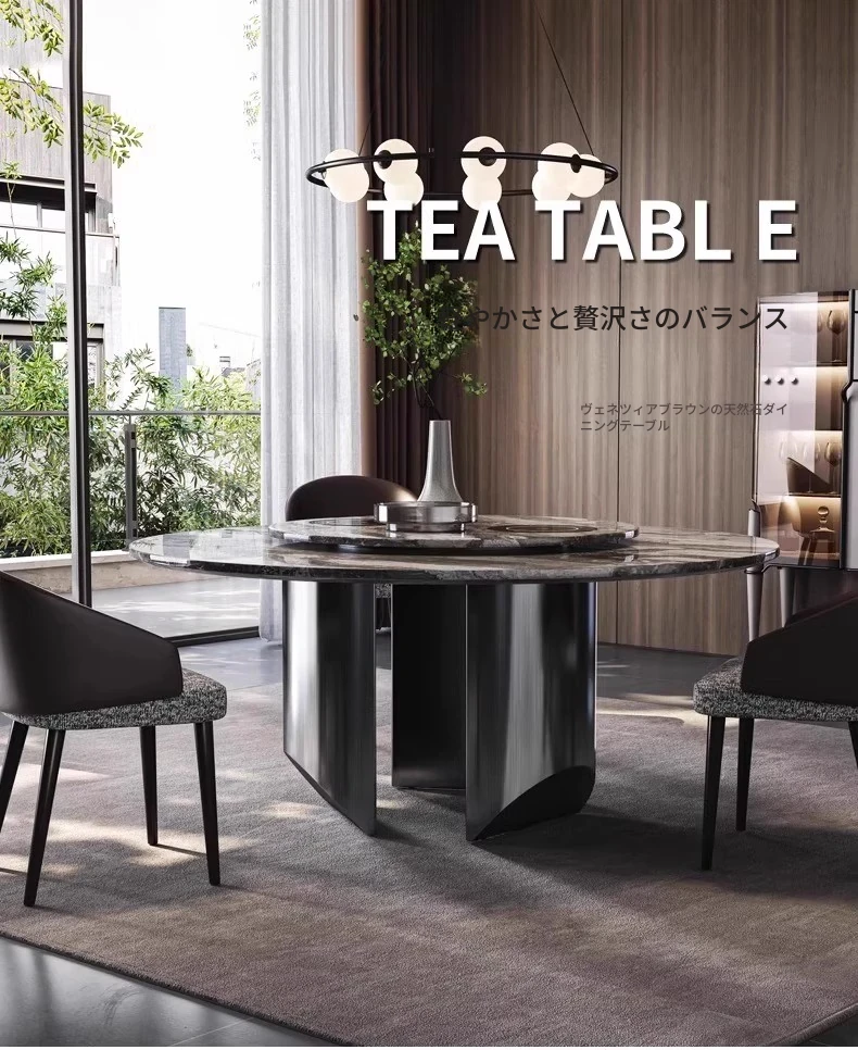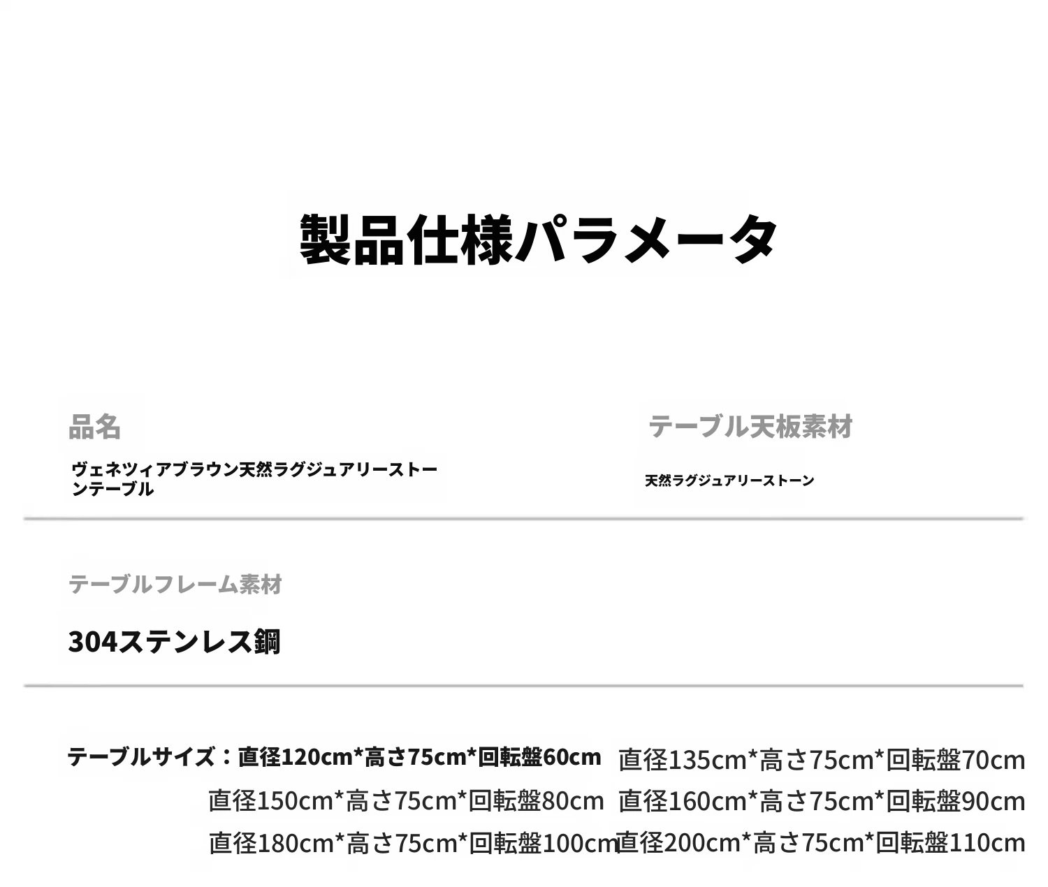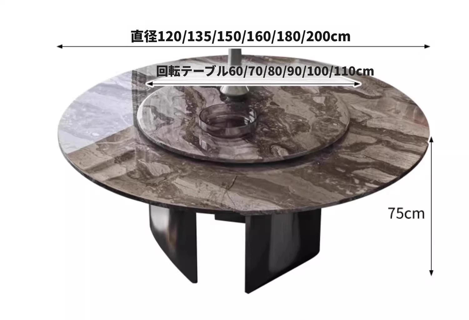 150CM輸入ヴェネツィアブラウン天然ラグジュアリーストーンダイニングテーブル+90CM回転盤