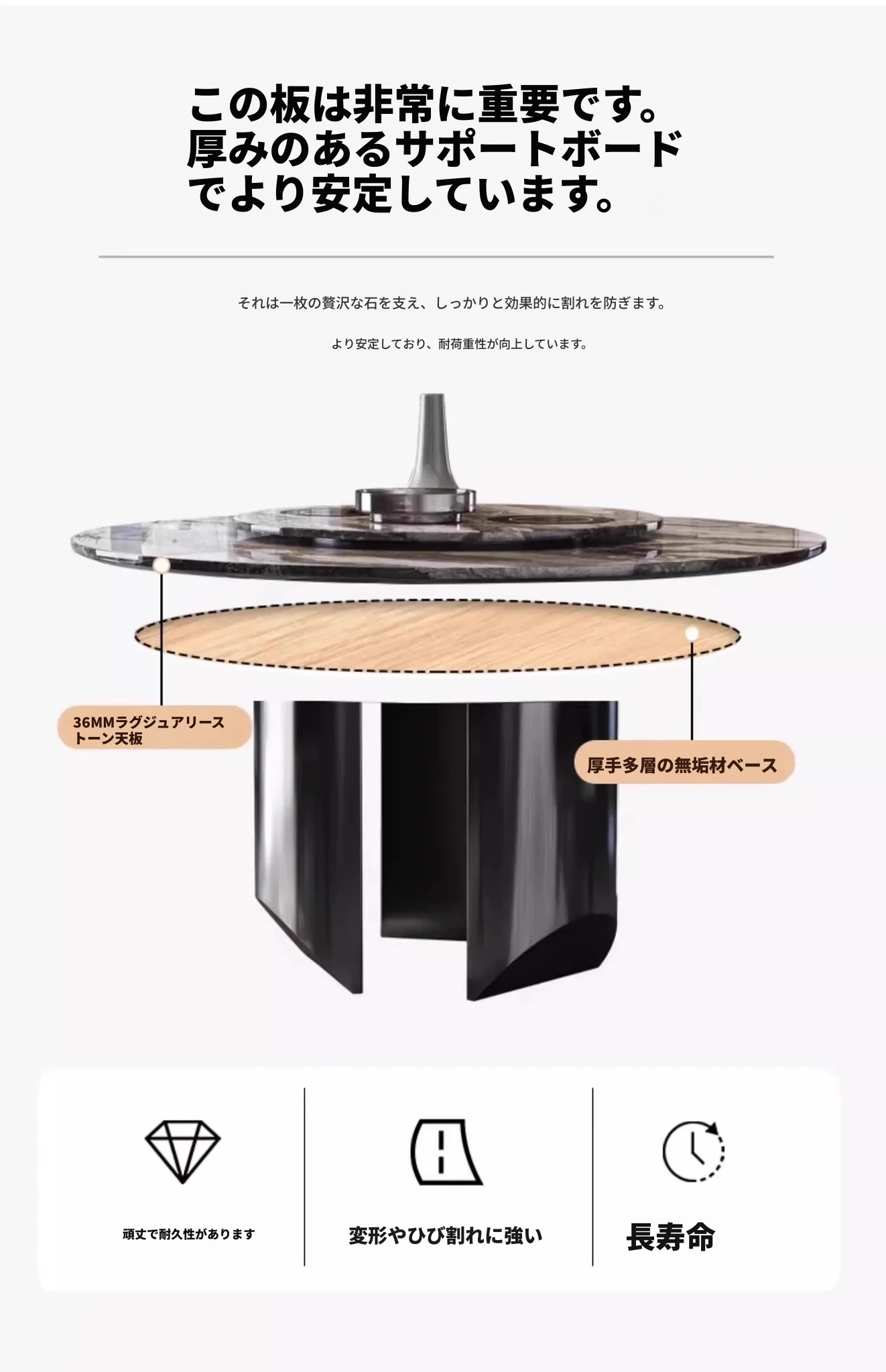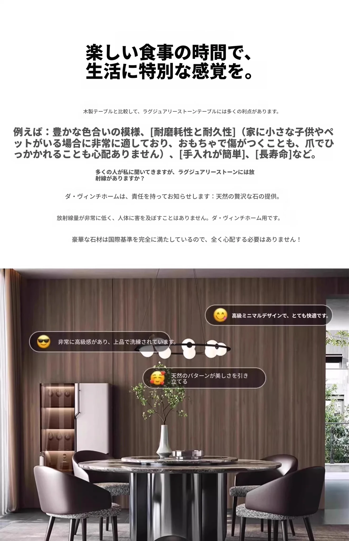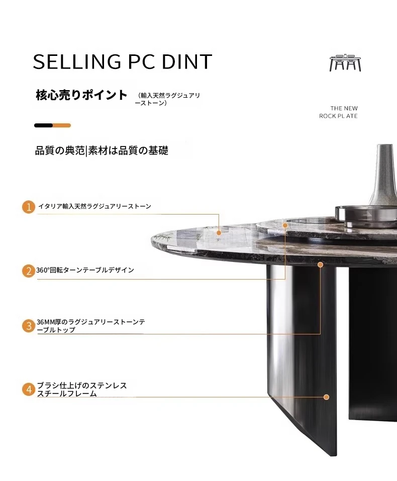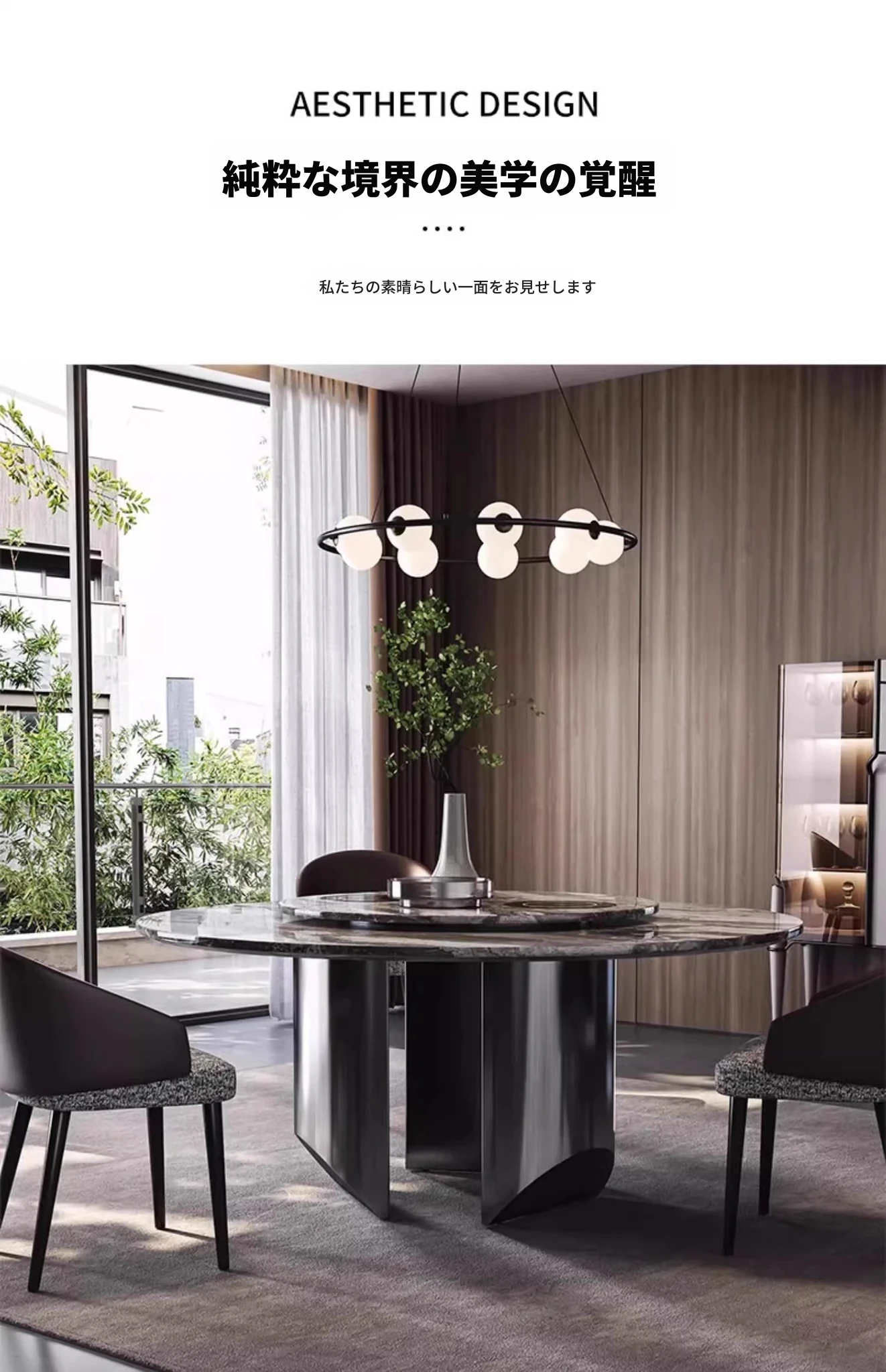 150CM輸入ヴェネツィアブラウン天然ラグジュアリーストーンダイニングテーブル+90CM回転盤