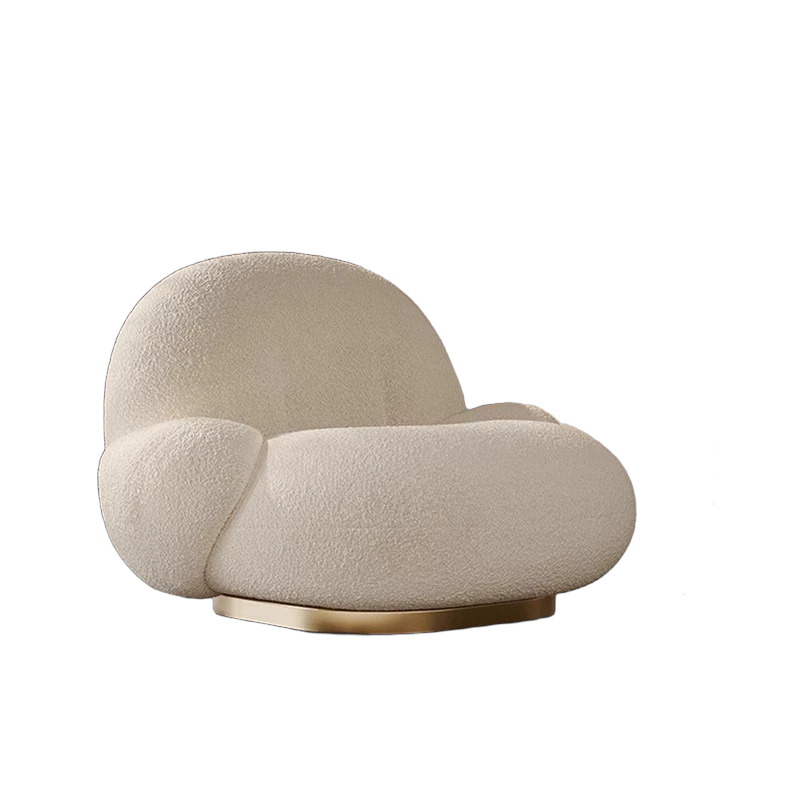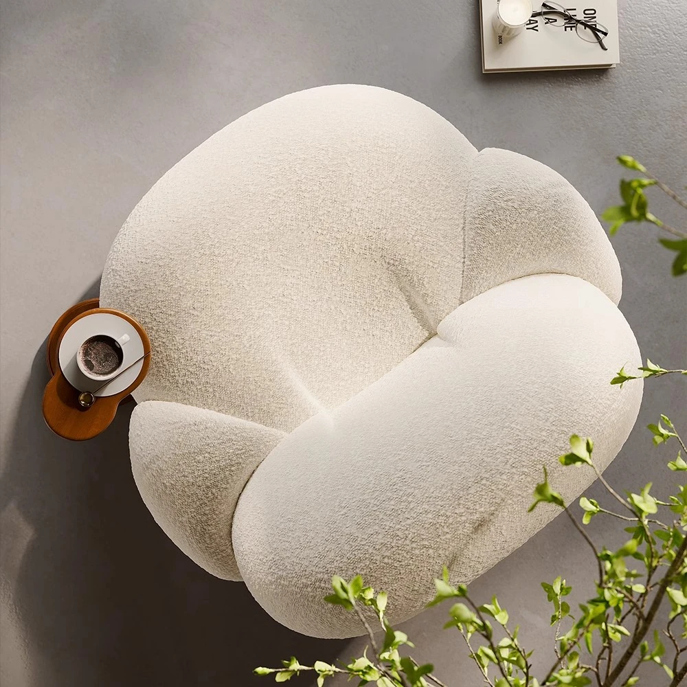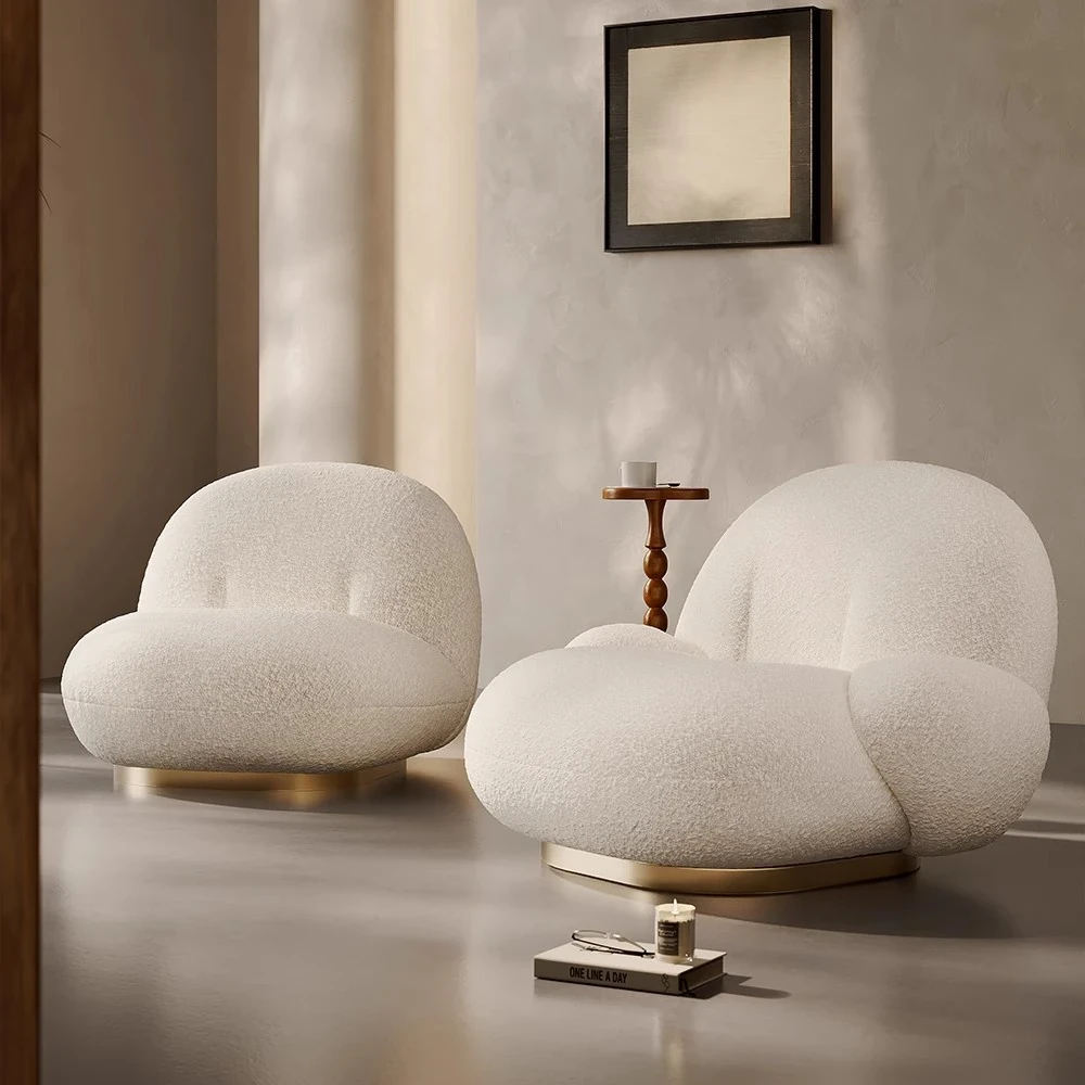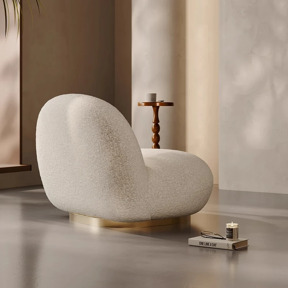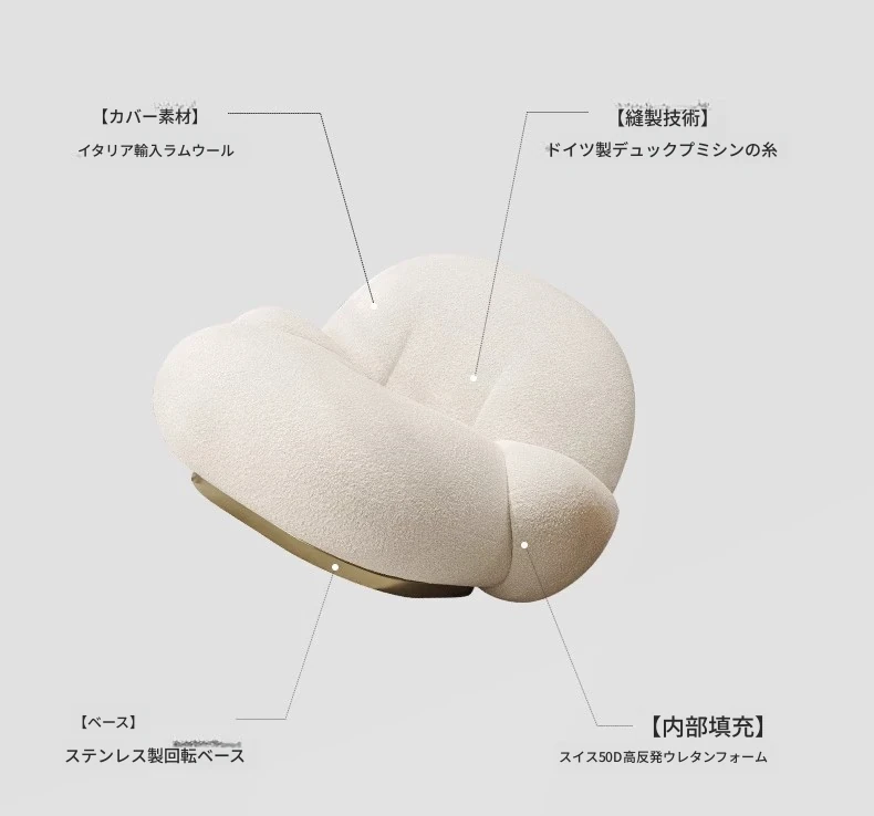 允馨北欧スタイル 雪梨チェア 人気のラウンジソファ クリーミー風 軽やかなラグジュアリー デザイナーのリビング用 シープスキン シングルソファ