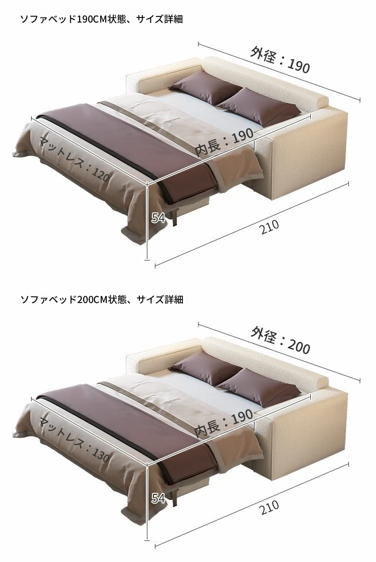 含肘掛け1.90メートルマットレスソファベッド【ラテスタイプ】