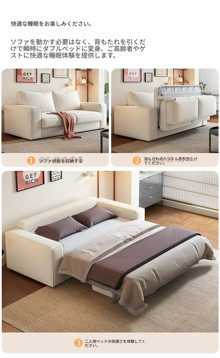 含肘掛け2メートルマットレスソファベッド【ラテスタイプ】