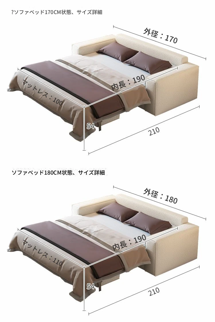 含肘掛け1.70メートルマットレスソファベッド【スポンジタイプ】