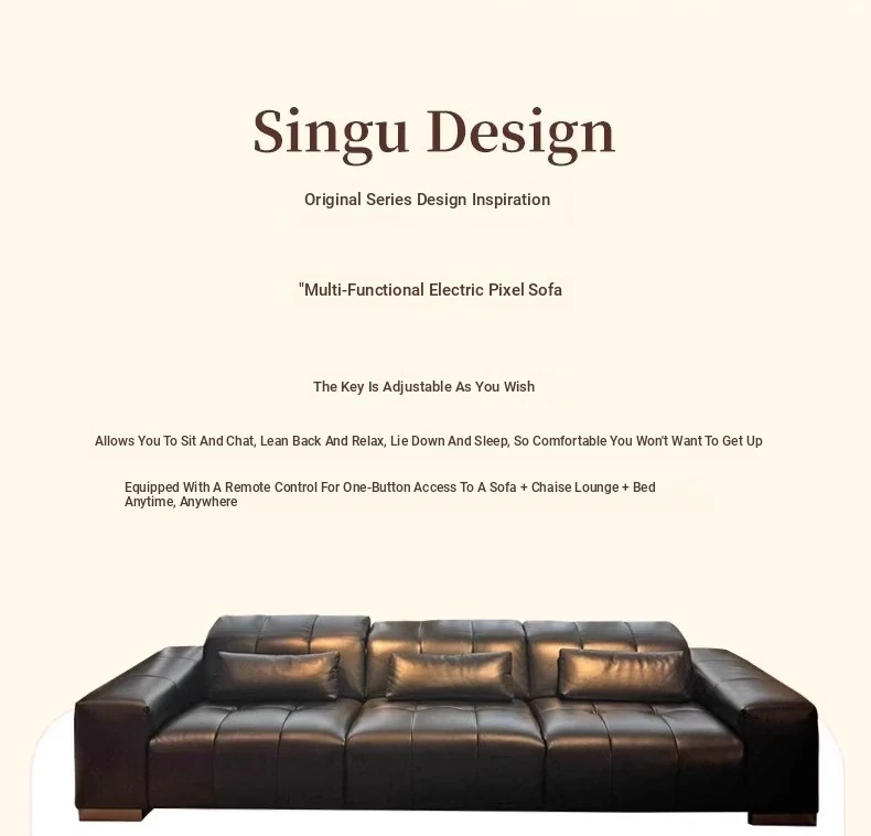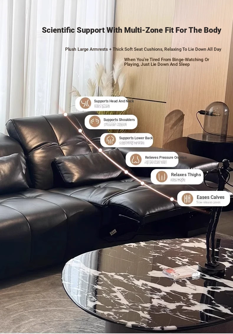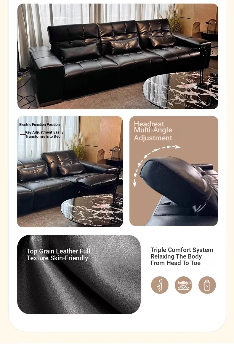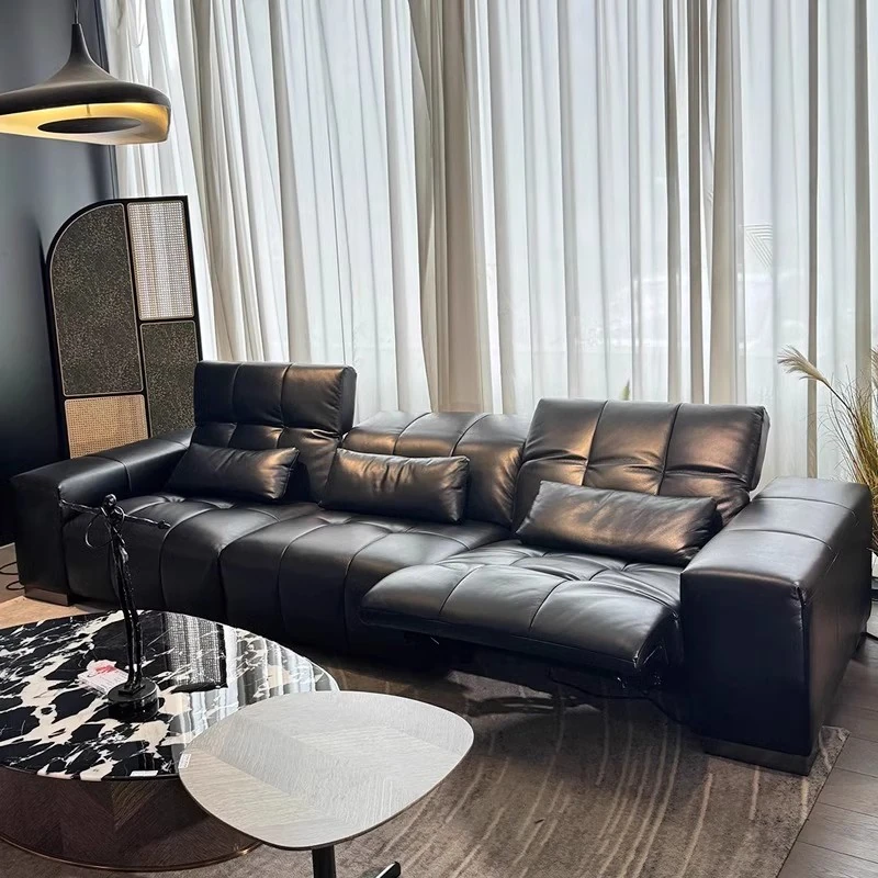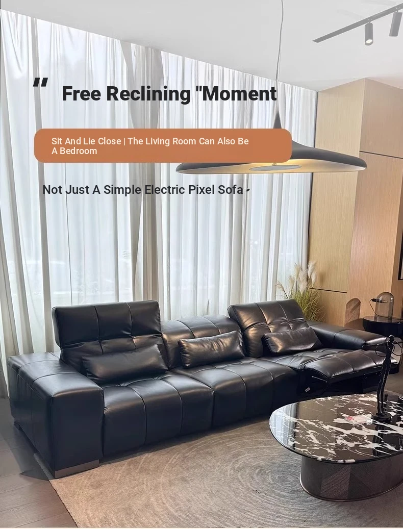 Yunxin Pixel Electric Sofa - Black Vintage Style, Genuine Top-Grain Leather, High Back, Adjustable Design, Zero Wall Clearance for Ultimate Comfort and Style.