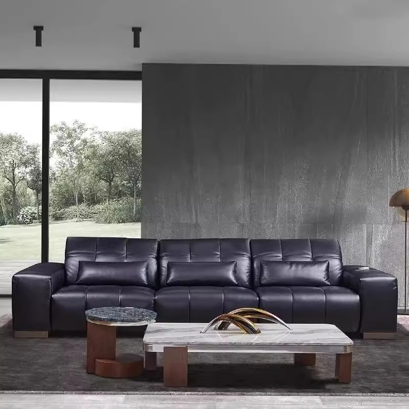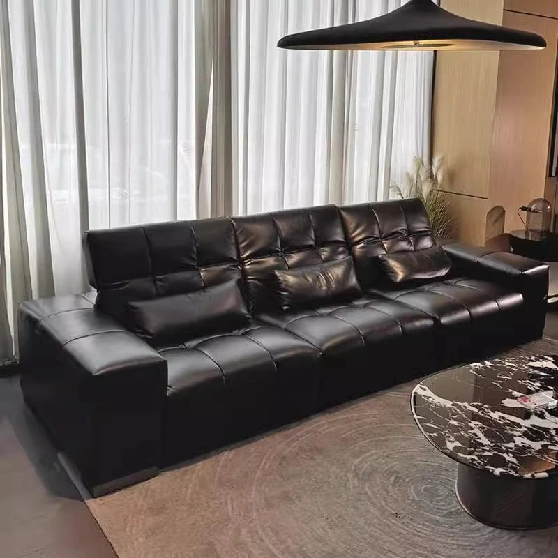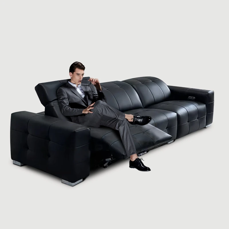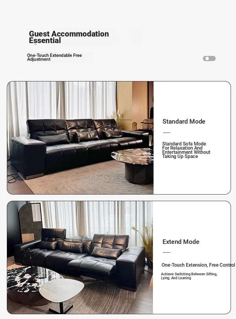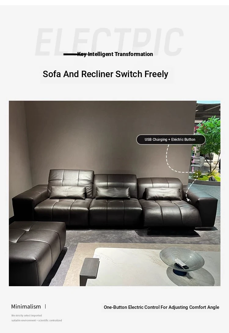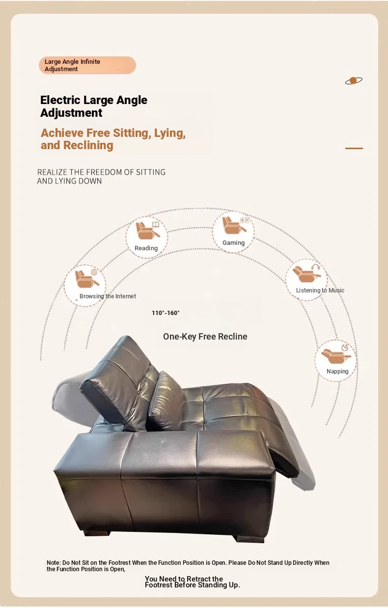 Yunxin Pixel Electric Sofa - Black Vintage Style, Genuine Top-Grain Leather, High Back, Adjustable Design, Zero Wall Clearance for Ultimate Comfort and Style.
