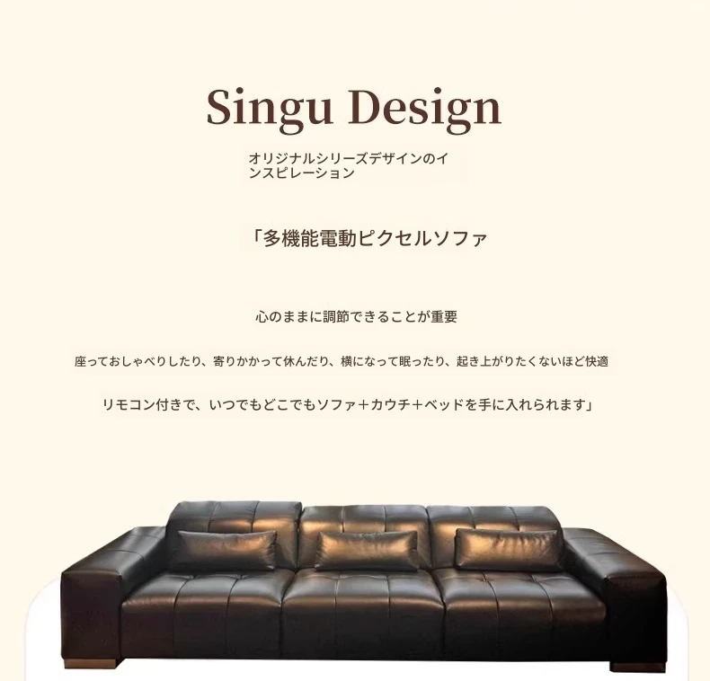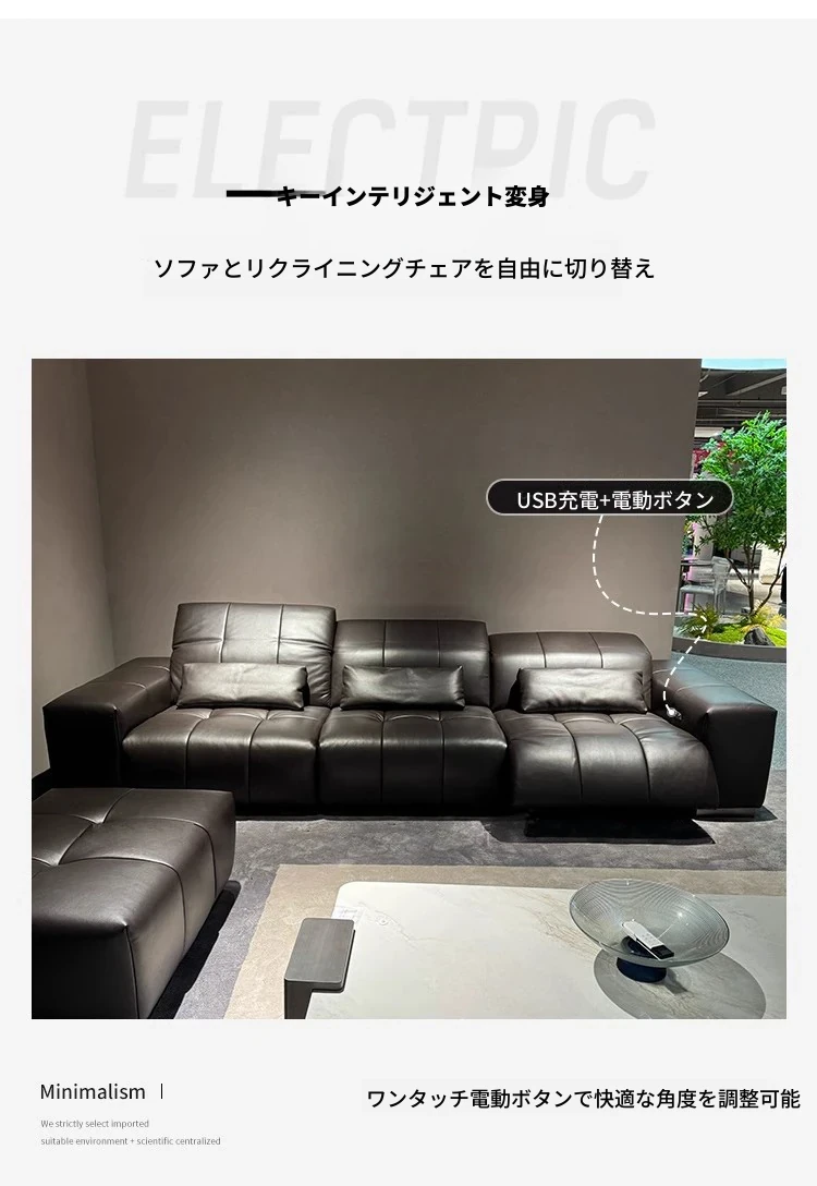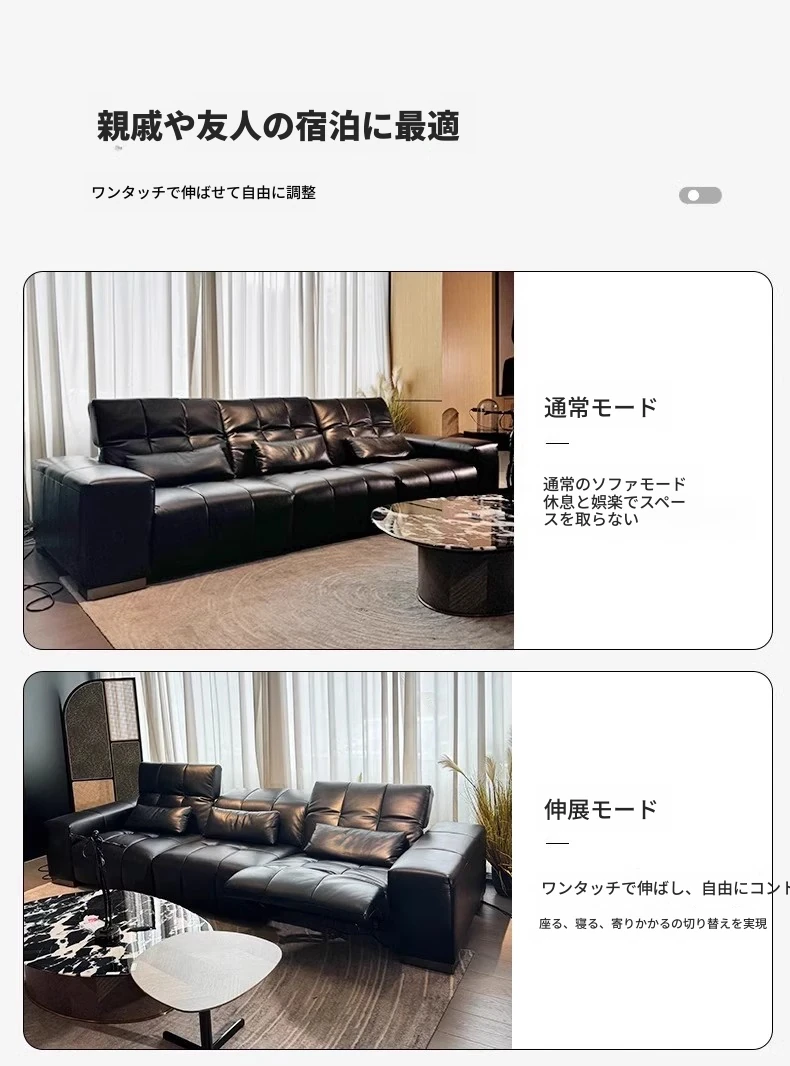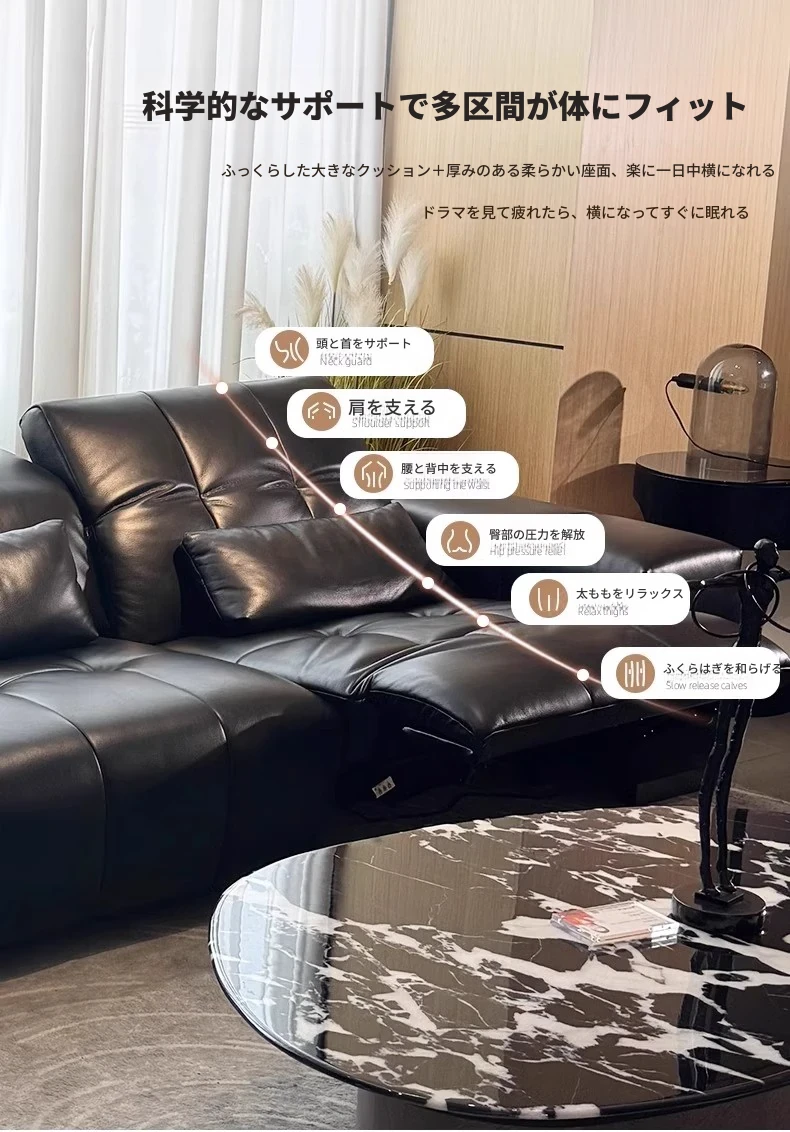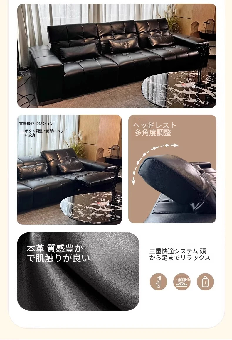 ユンシン ピクセル電動ソファ ブラック ヴィンテージスタイル 本革 高級牛革 ハイバック 調整可能なソファ 壁に寄せられるデザインで省スペース!快適な座り心地で、あなたのリビングをスタイリッシュに演出します。