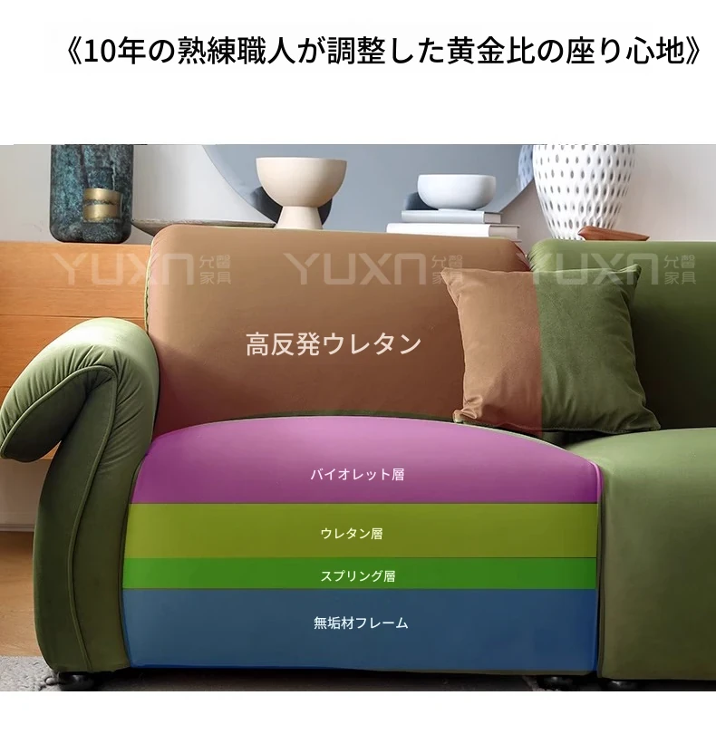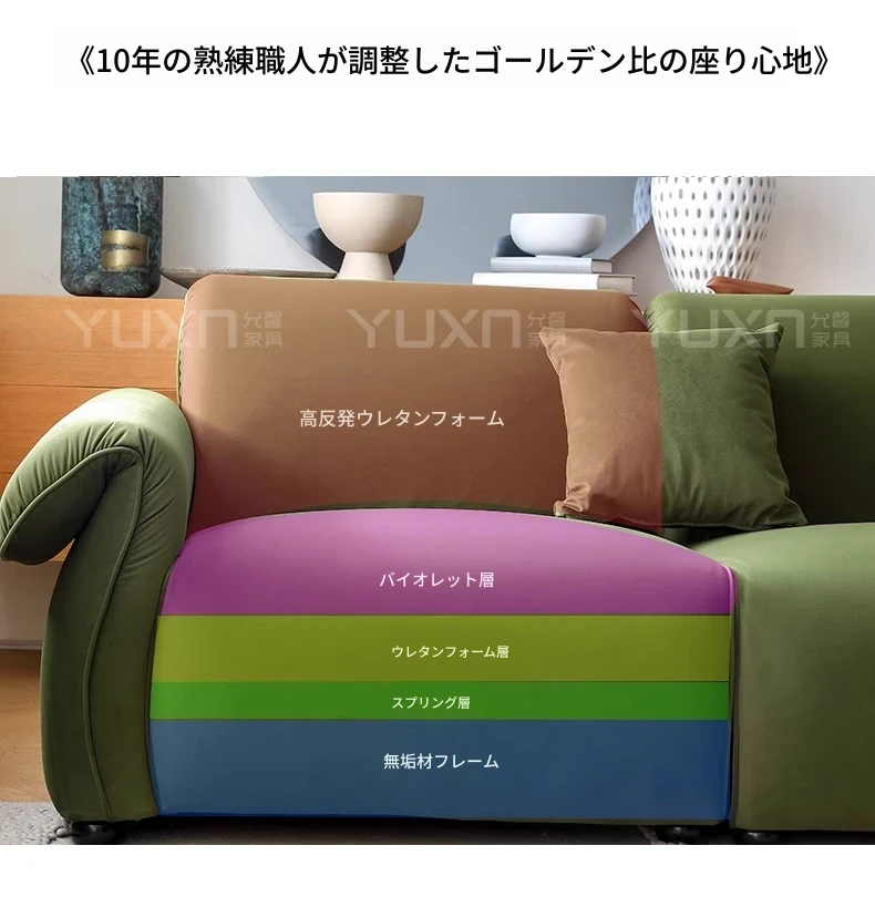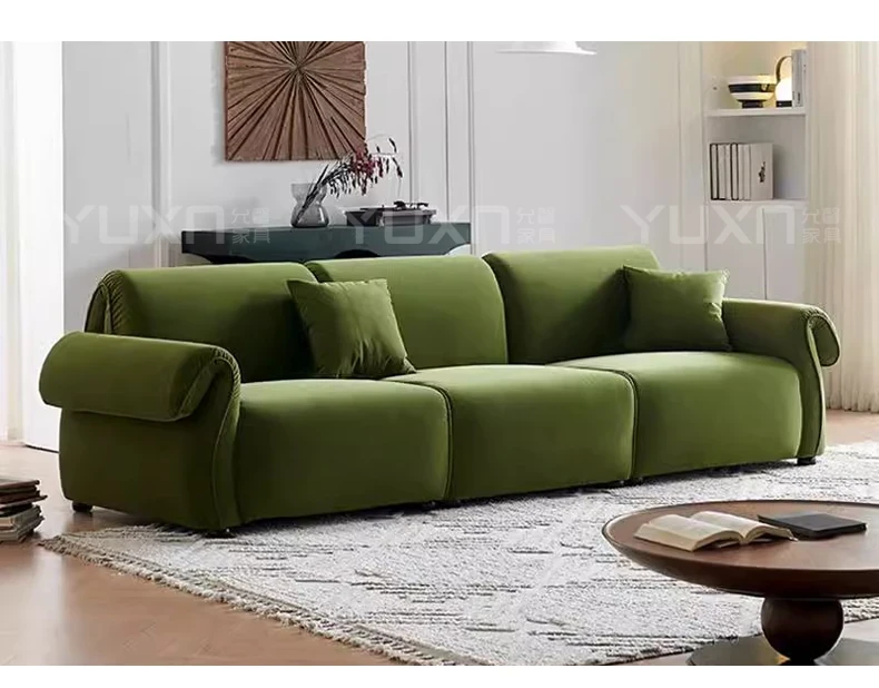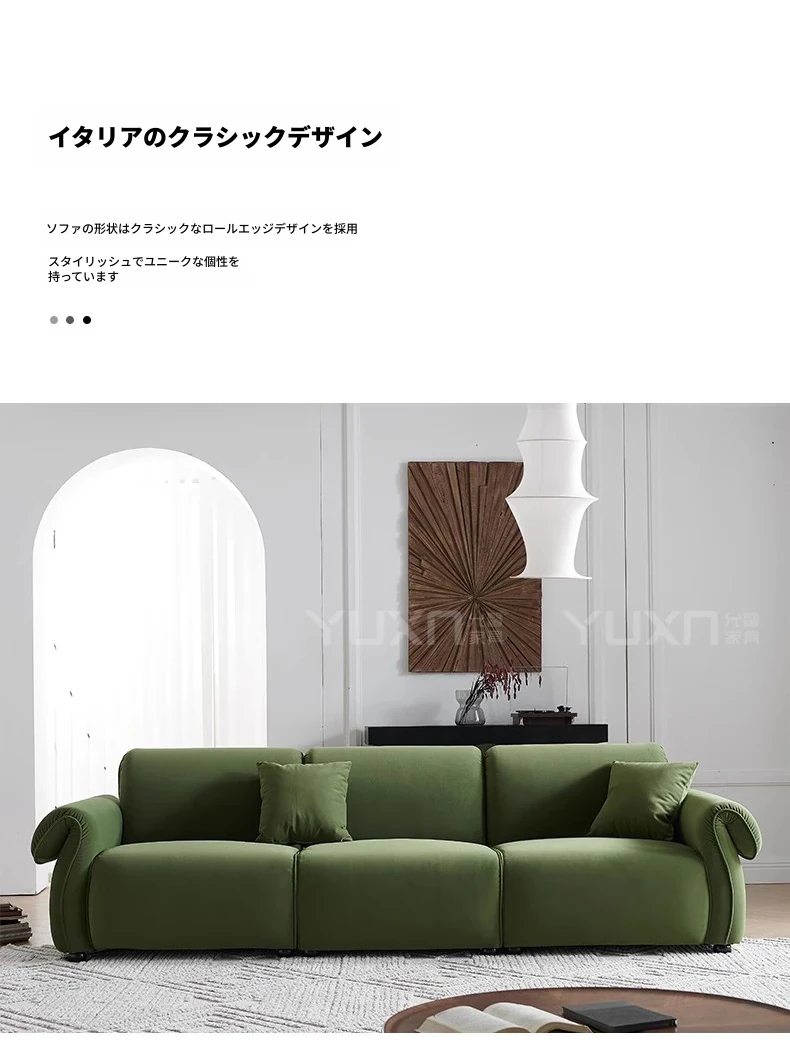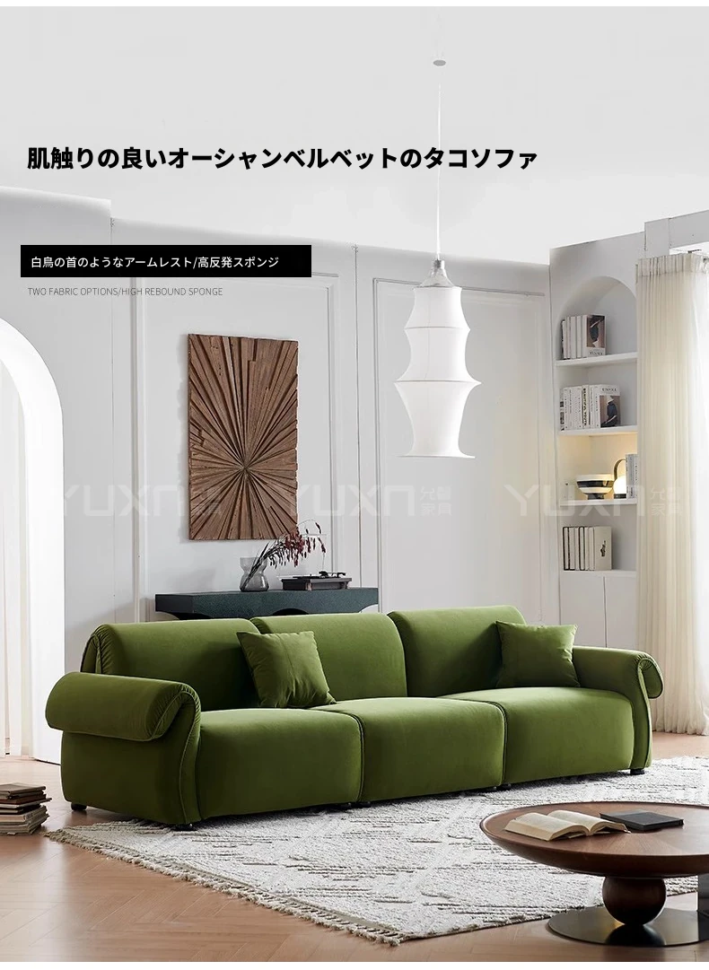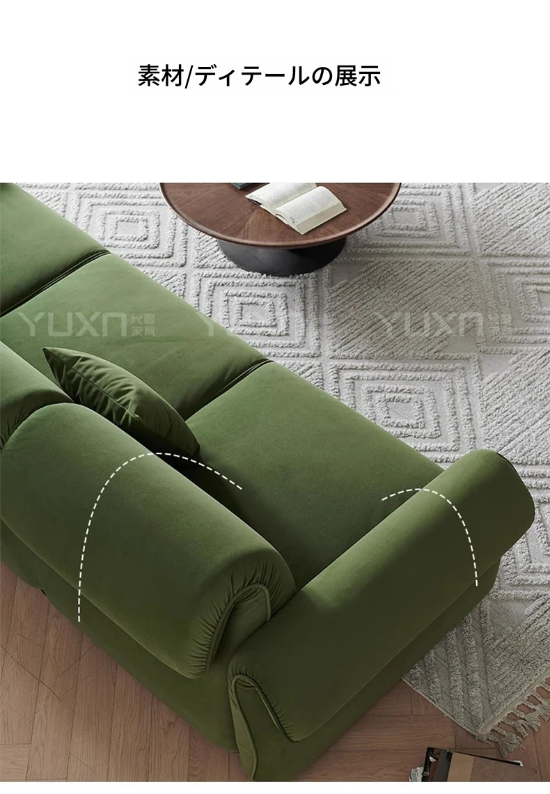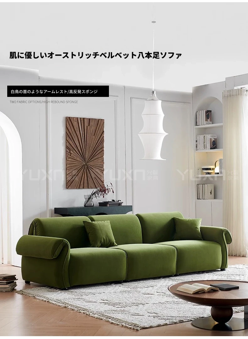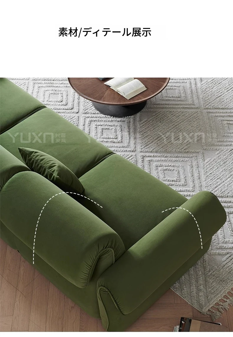 「允馨八爪魚ソファー フランス風レトロデザイン グリーン3人掛け ストレートシルエット デザイナーシルクベルベット おしゃれで優雅なクリーム風インテリア」