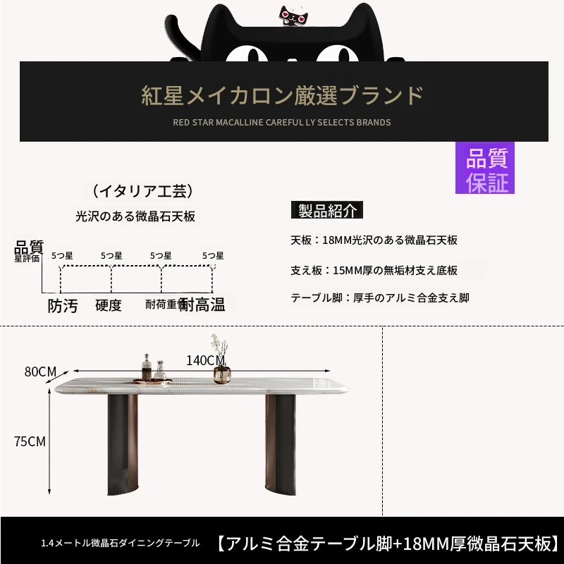 1.4メートル微晶石ダイニングテーブル【アルミ合金テーブル脚+18MM厚微晶石天板】 1.4メートル微晶石ダイニングテーブル【アルミ合金テーブル脚+18MM厚微晶石天板】