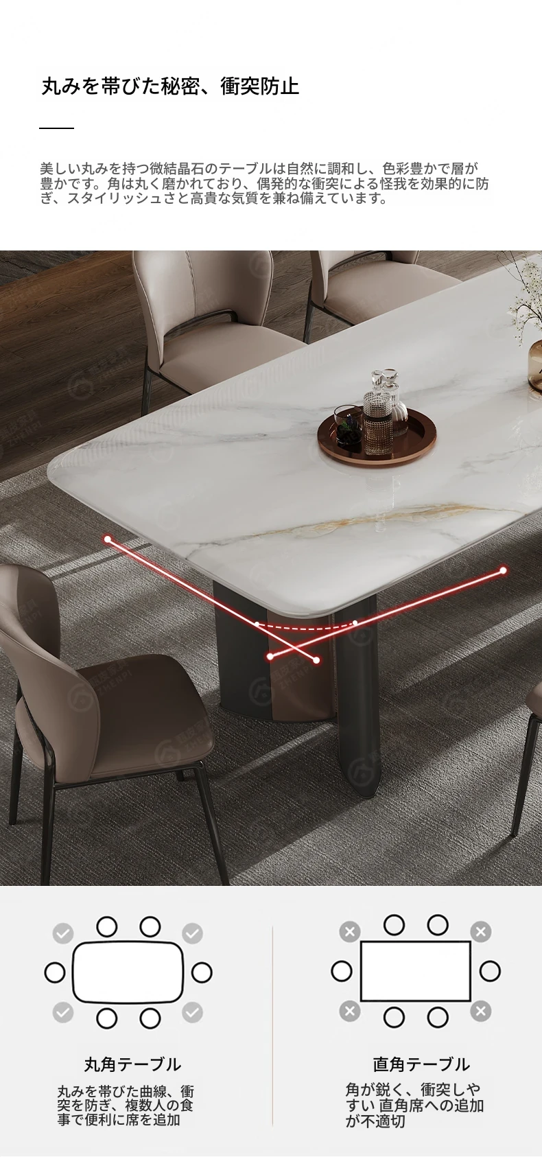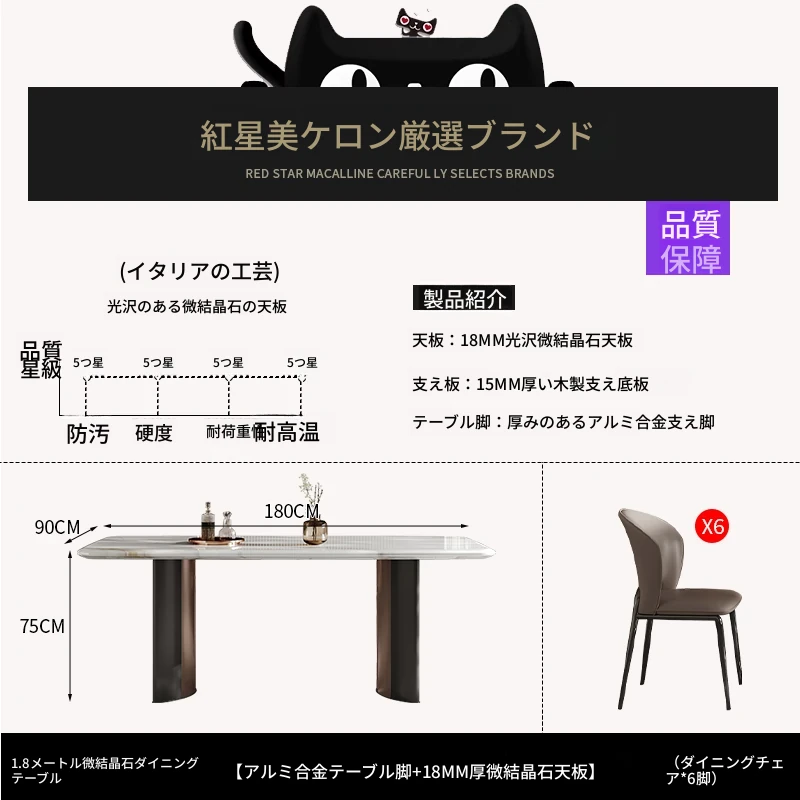 1.8メートル微晶石ダイニングテーブル【アルミ合金テーブル脚+18MM厚微晶石天板】(ダイニングチェア*6脚) 1.8メートル微晶石ダイニングテーブル【アルミ合金テーブル脚+18MM厚微晶石天板】(ダイニングチェア*6脚)