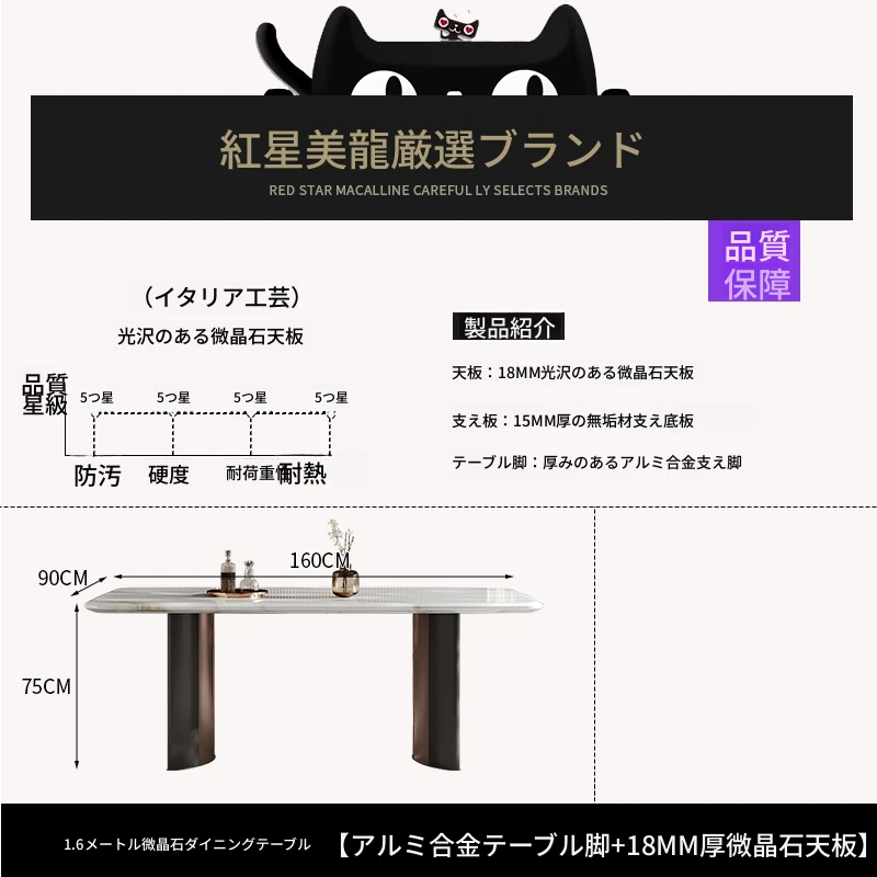 1.6メートル微晶石ダイニングテーブル【アルミ合金テーブル脚+18MM厚微晶石天板】 1.6メートル微晶石ダイニングテーブル【アルミ合金テーブル脚+18MM厚微晶石天板】