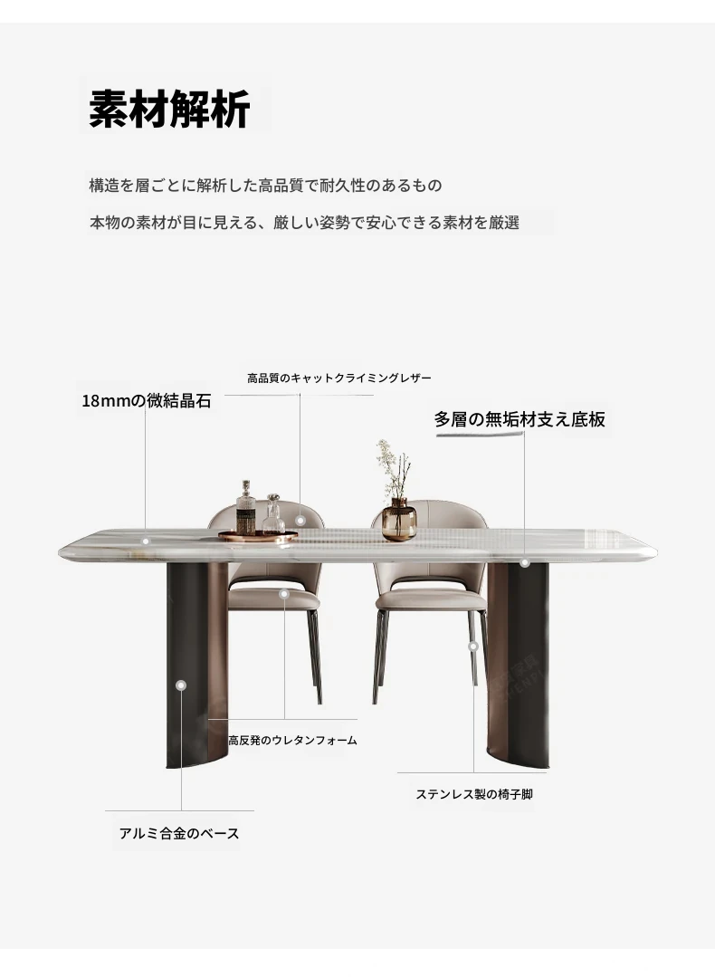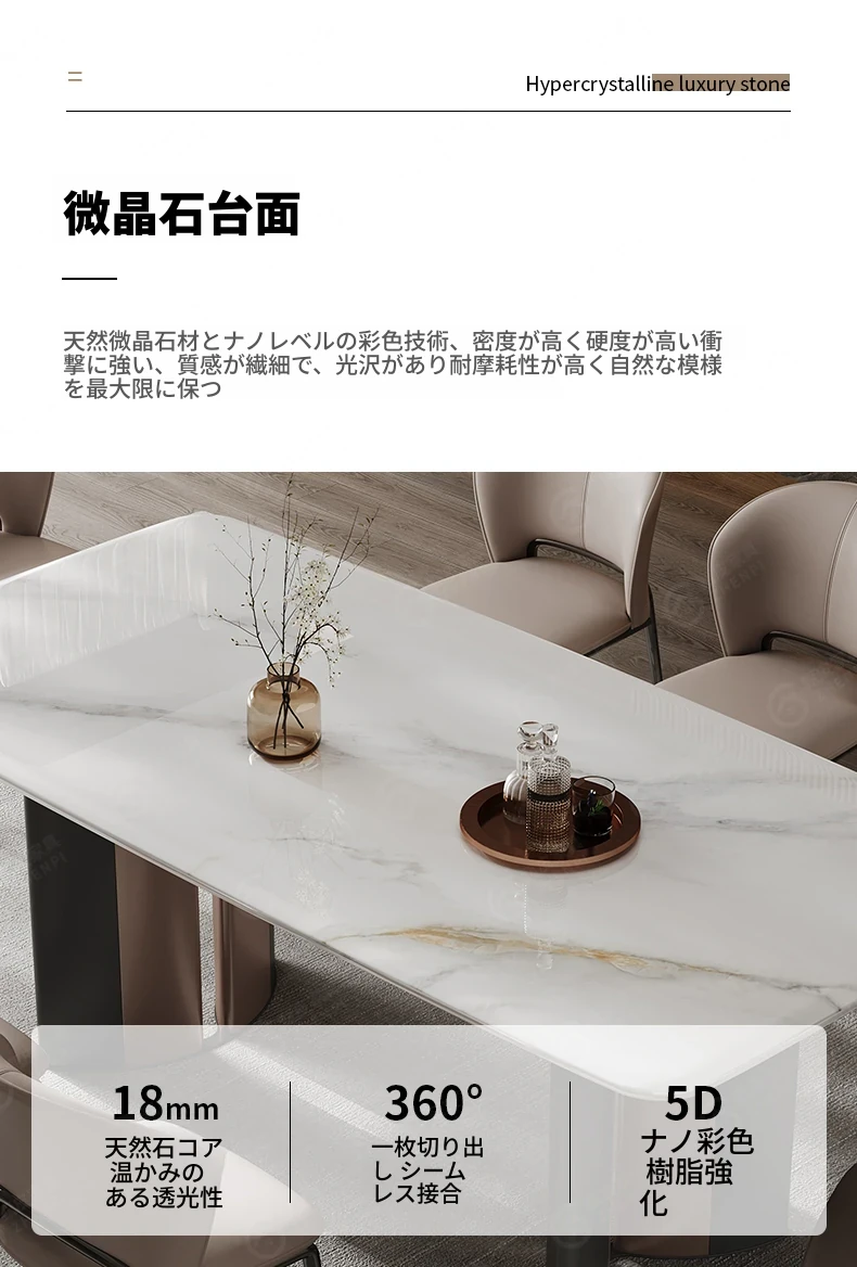 1.8メートル微晶石ダイニングテーブル【アルミ合金テーブル脚+18MM厚微晶石天板】(ダイニングチェア*4脚) 1.8メートル微晶石ダイニングテーブル【アルミ合金テーブル脚+18MM厚微晶石天板】(ダイニングチェア*4脚)