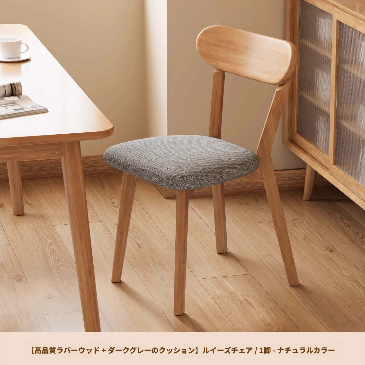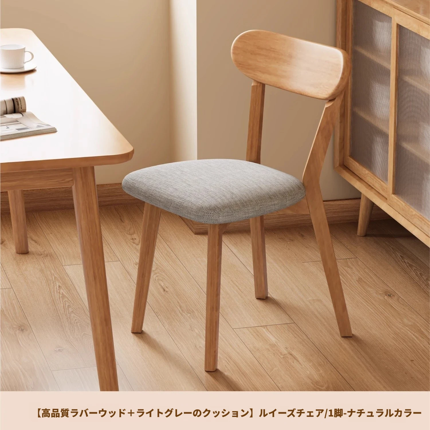 ナチュラルカラー【ライトグレー背もたれ+ライトグレー座面】優選ラバーウッド-単品