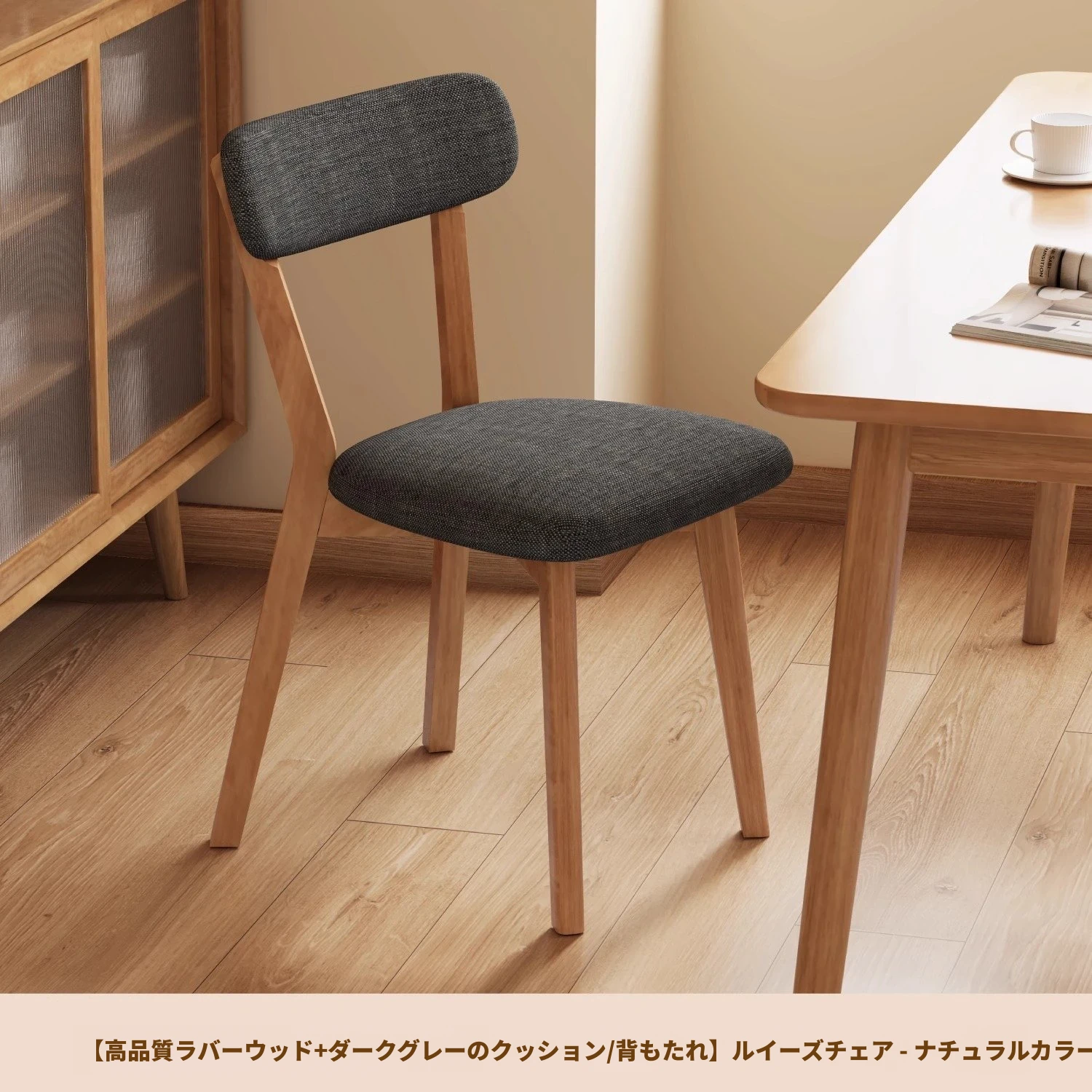 ナチュラルカラー【ダークグレー背もたれ+ダークグレー座面】優選ラバーウッド-単品