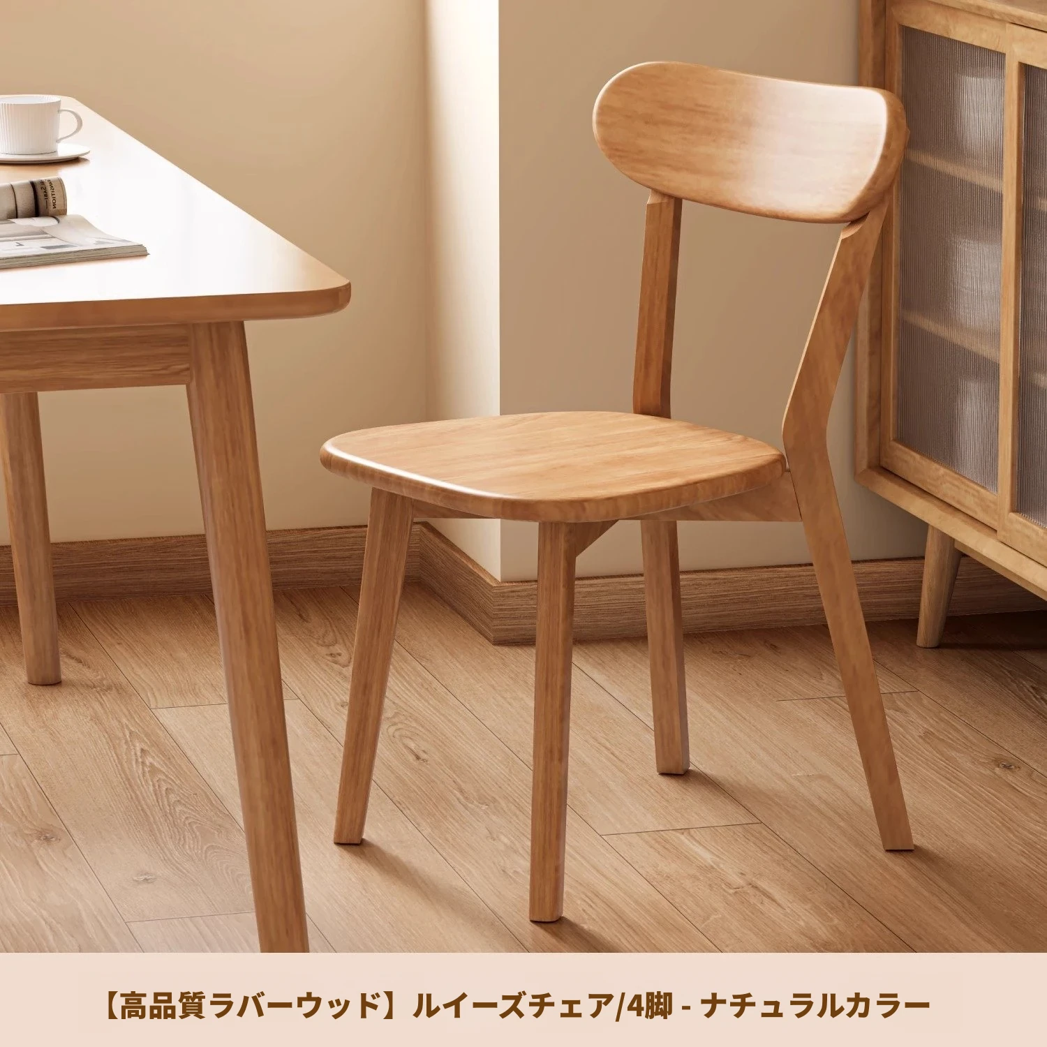 ナチュラルカラー【安定重視】優選ラバーウッド-4脚セット