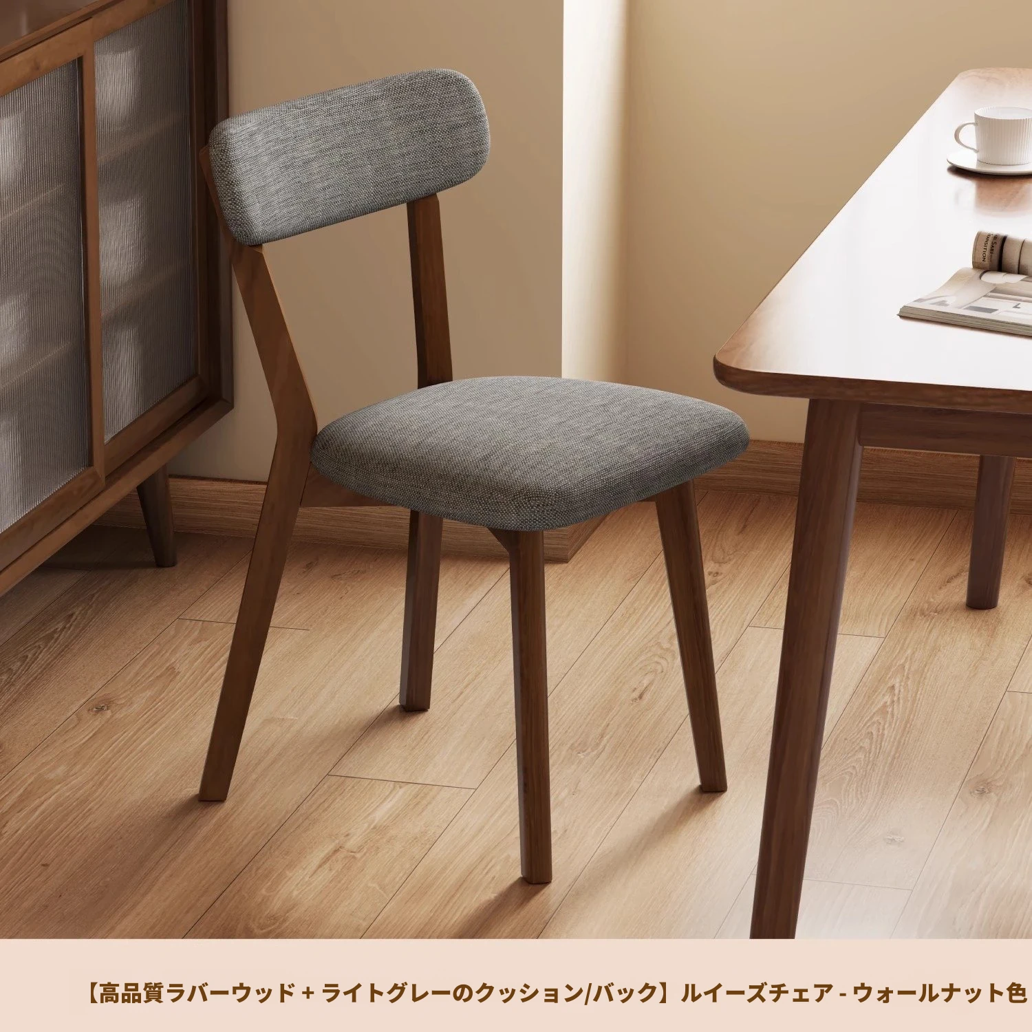ウォールナット色【ライトグレー背もたれ+ライトグレー座面】優選ラバーウッド-単品
