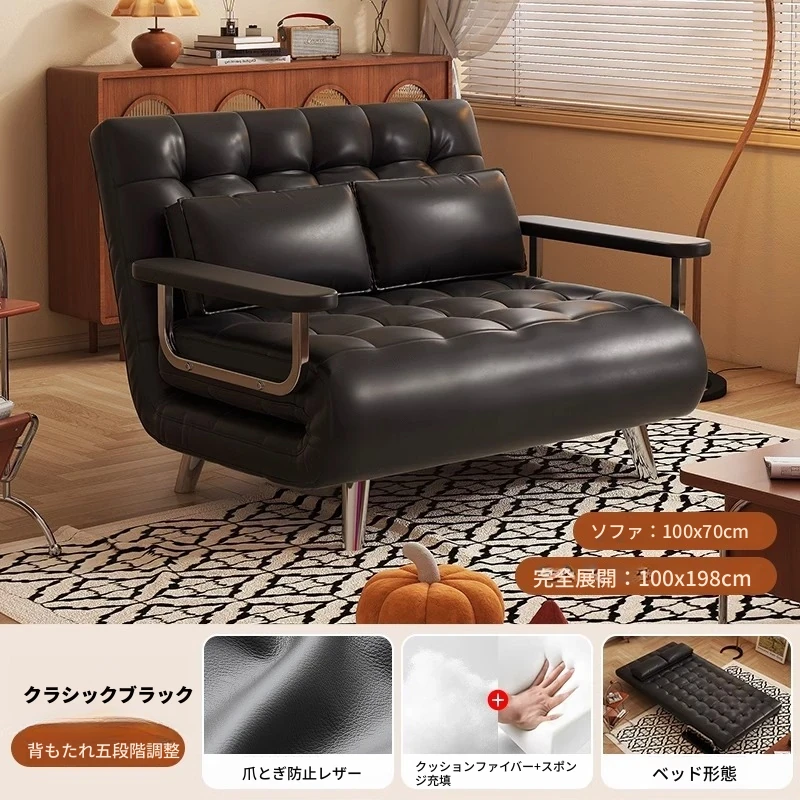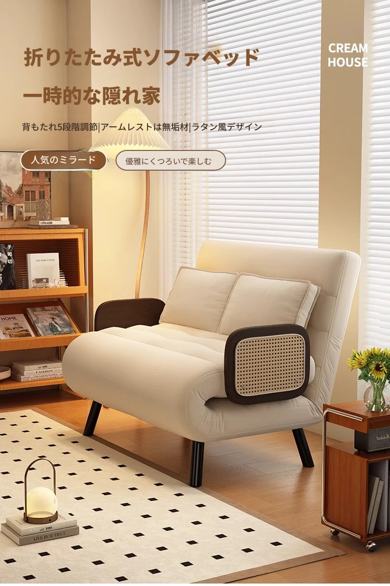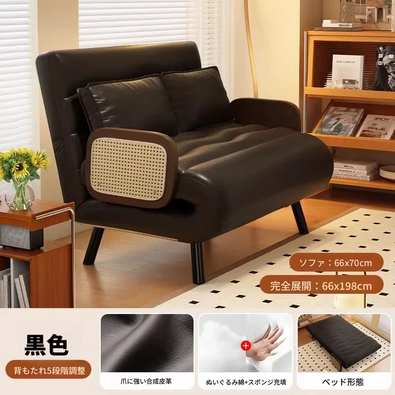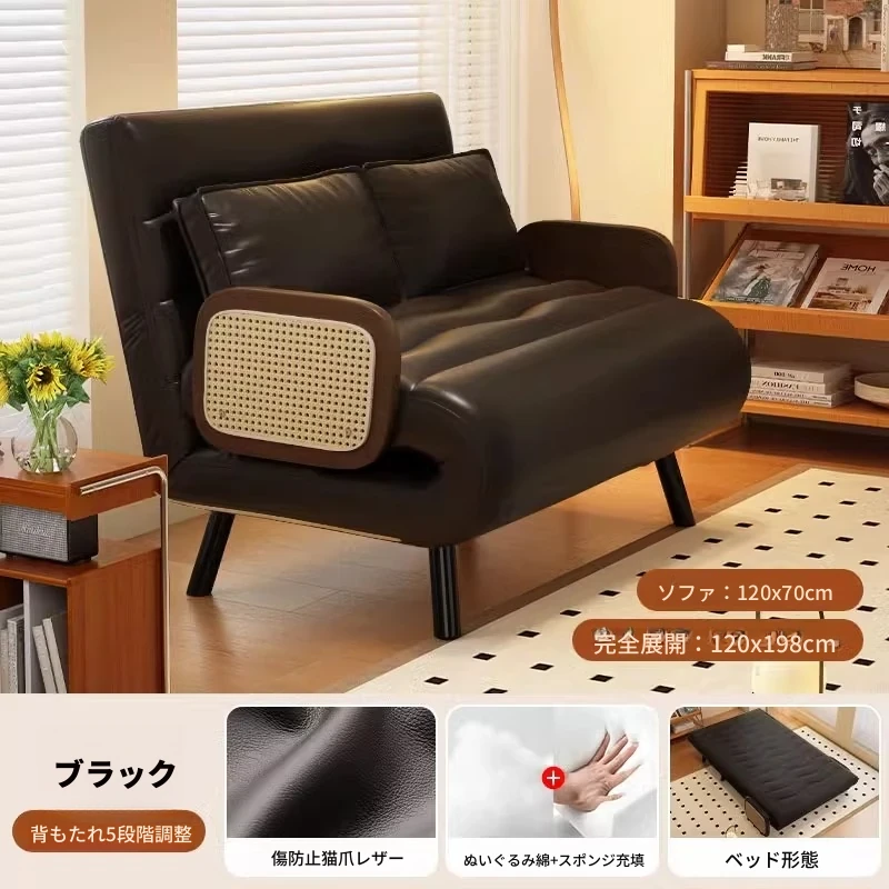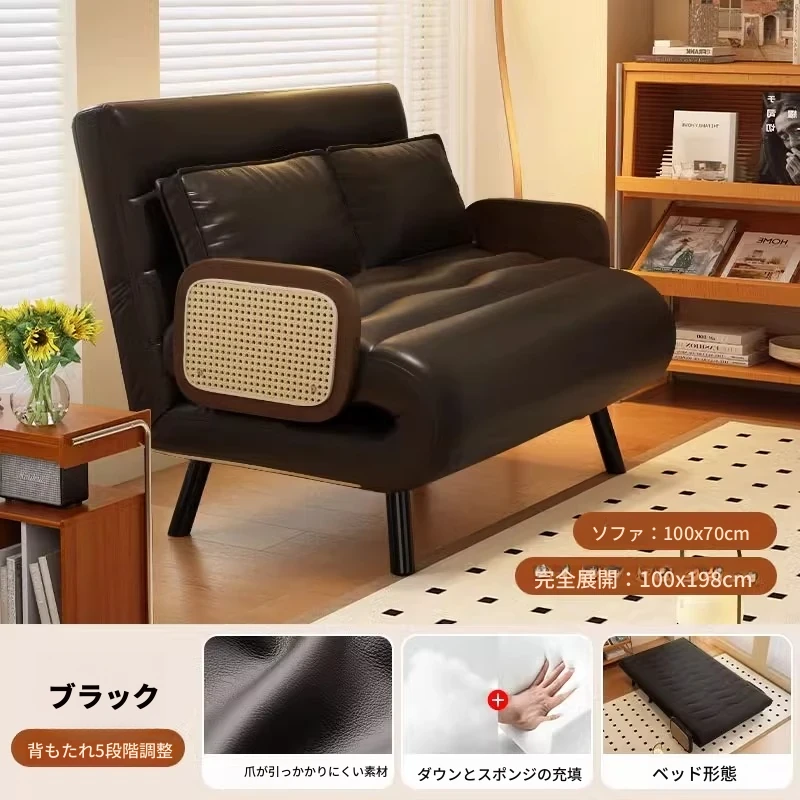 佐識のフレンチスタイル折りたたみ式ウッドソファベッド - リビングやバルコニーに最適なコンパクトデザイン!二人用にも一人用にも変身可能!スタイリッシュな書斎にもぴったりです。